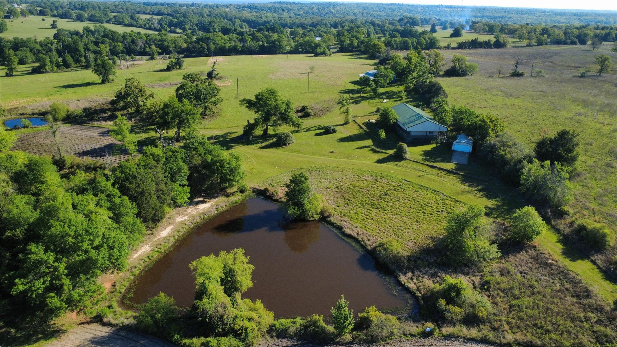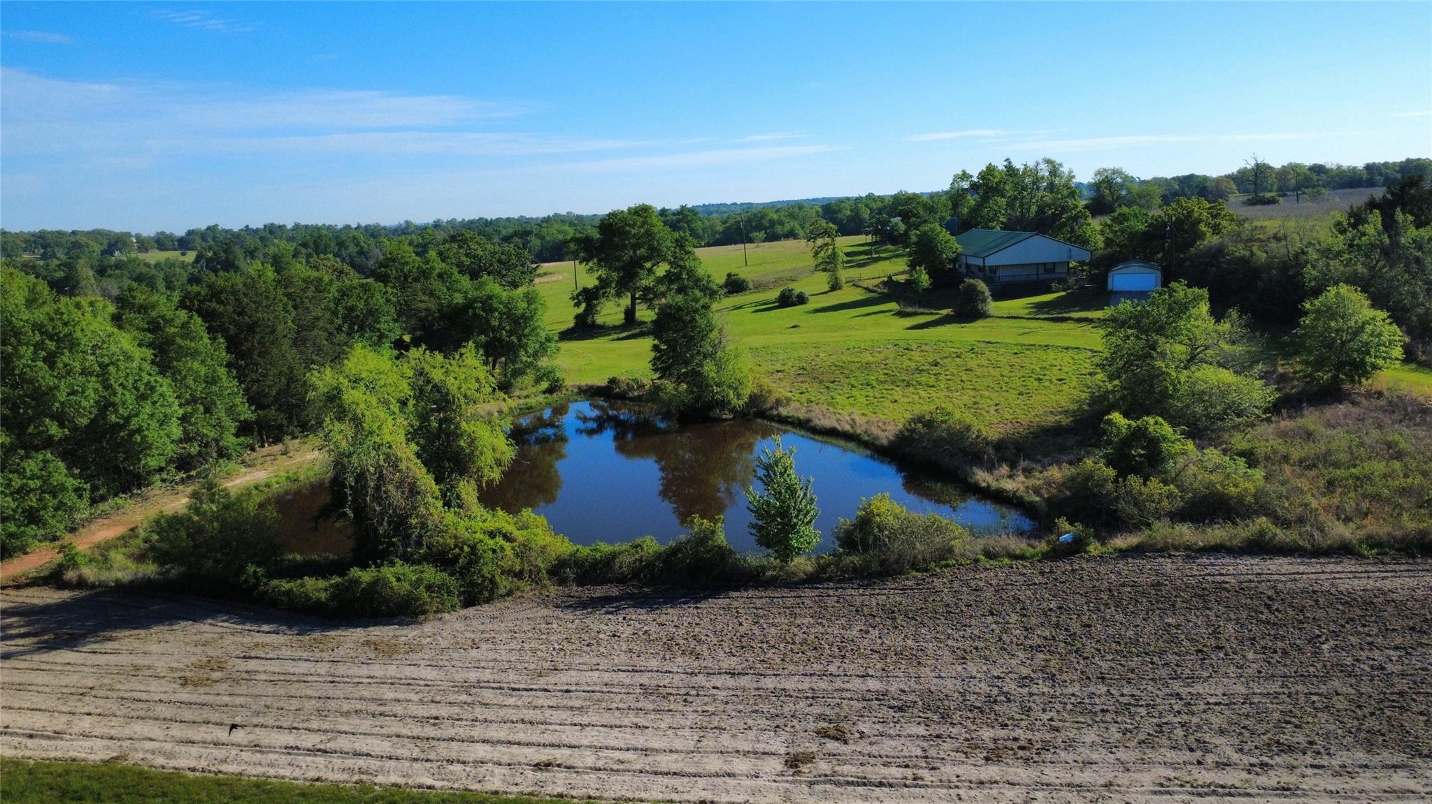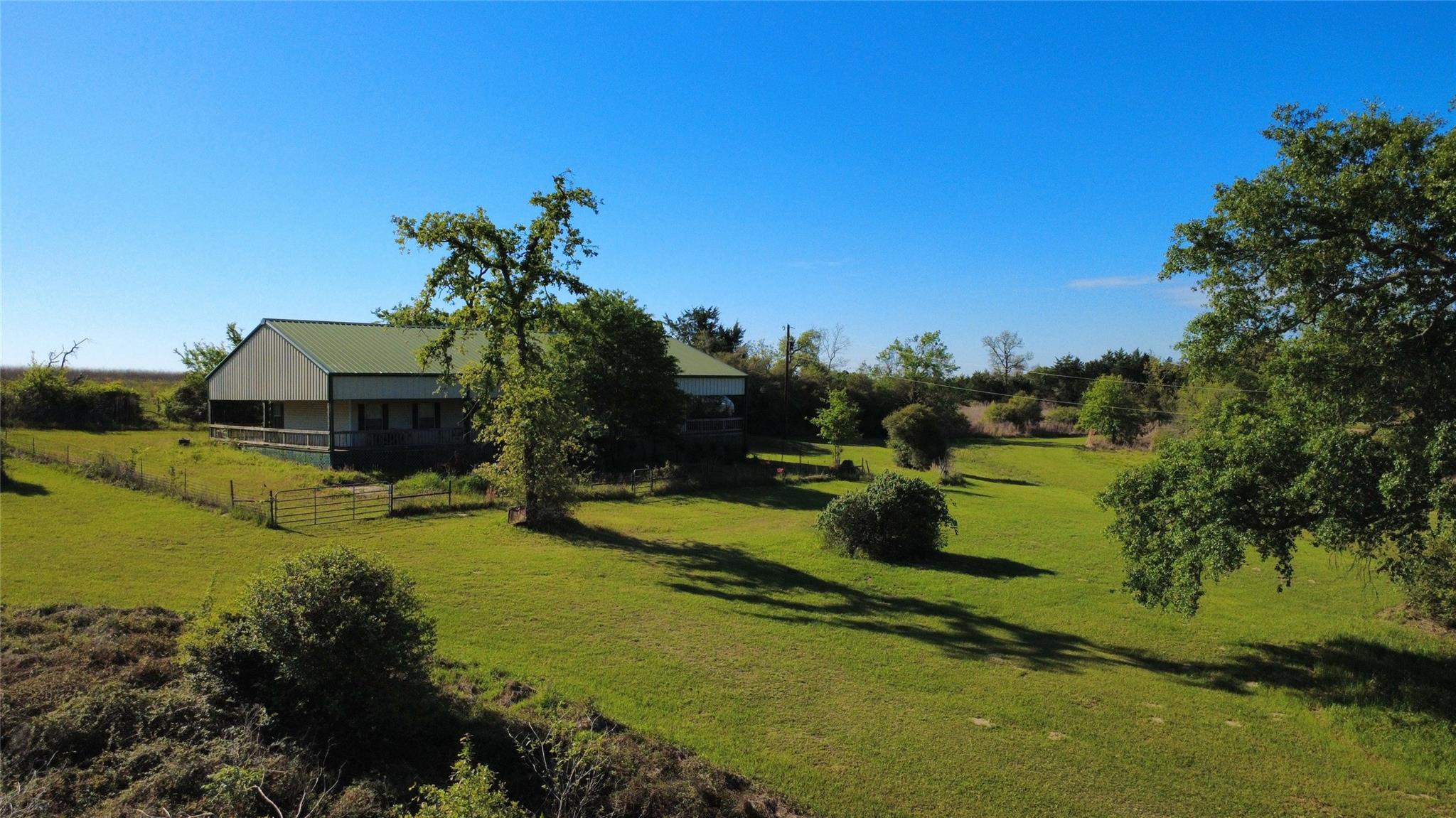 Rare 200.34-acre ranch with state highway frontage just 7 miles west of Centerville and I-45. Fully fenced and cross-fenced, the property supports active hay production and benefits from an ag exemption through wildlife management. Rolling terrain with mature hardwoods—including oak, hickory, and dogwood—creates excellent habitat for abundant wildlife, with six established hunting stand locations. Multiple ponds, along with springs and creeks, enhance both usability and year-round appeal. Improvements include a well-maintained 2,100 SF home featuring 4 bedrooms, 2 bathrooms, and a wraparound porch, plus a 30’ x 50’ barn with additional covered storage. Serviced by city water and offering dual road frontage, this ranch provides excellent access, functionality, and long-term investment potential.
