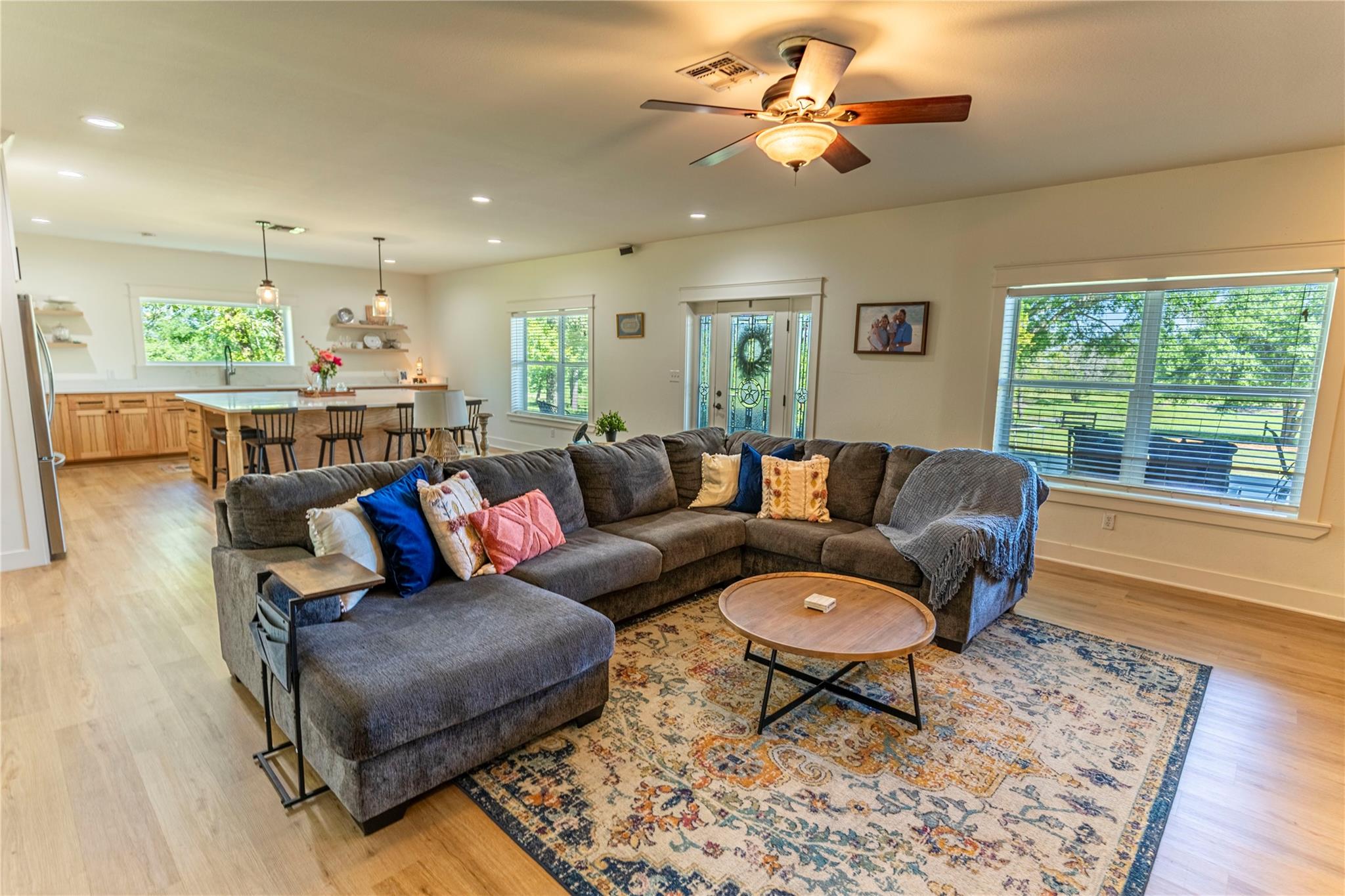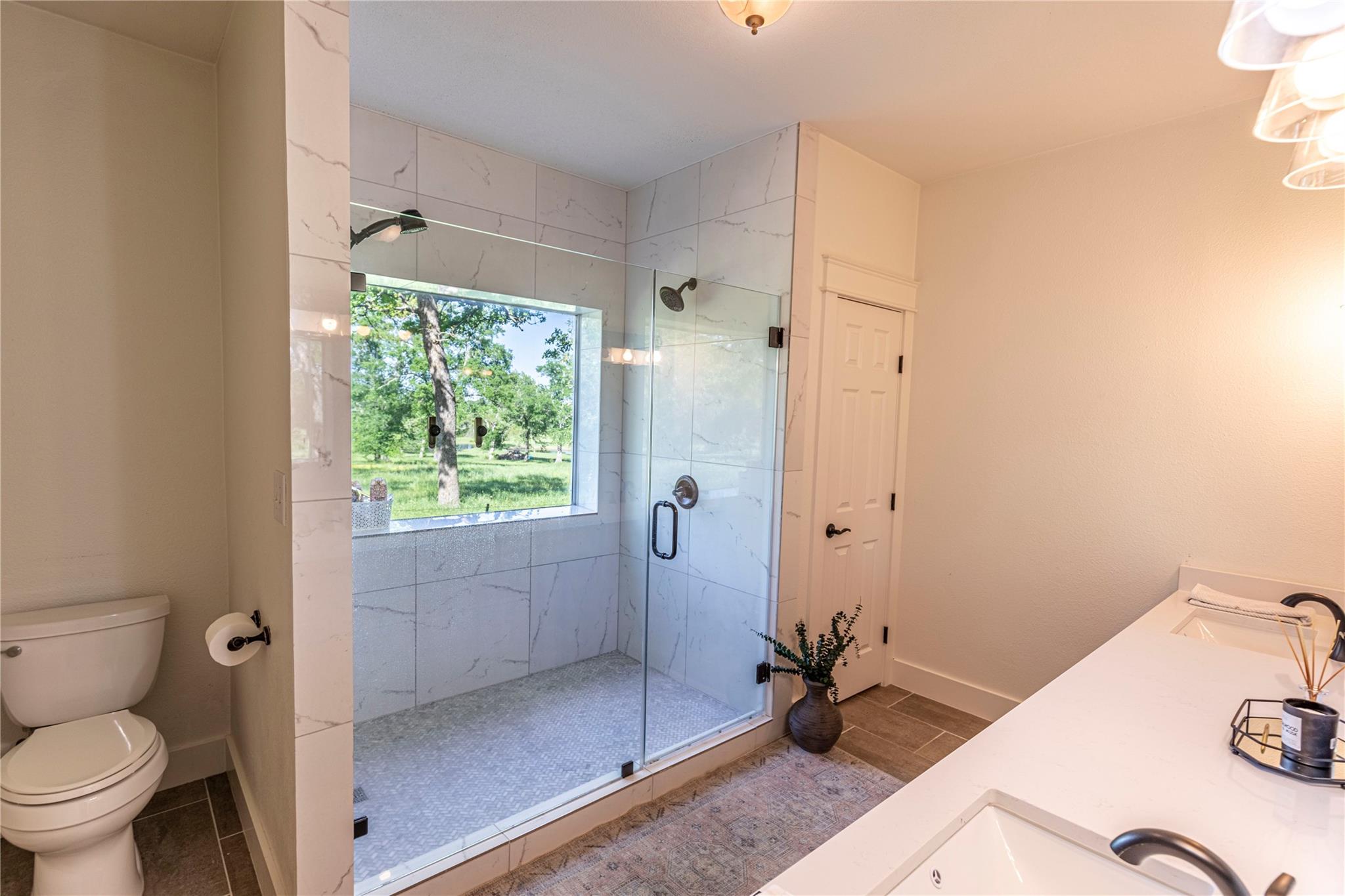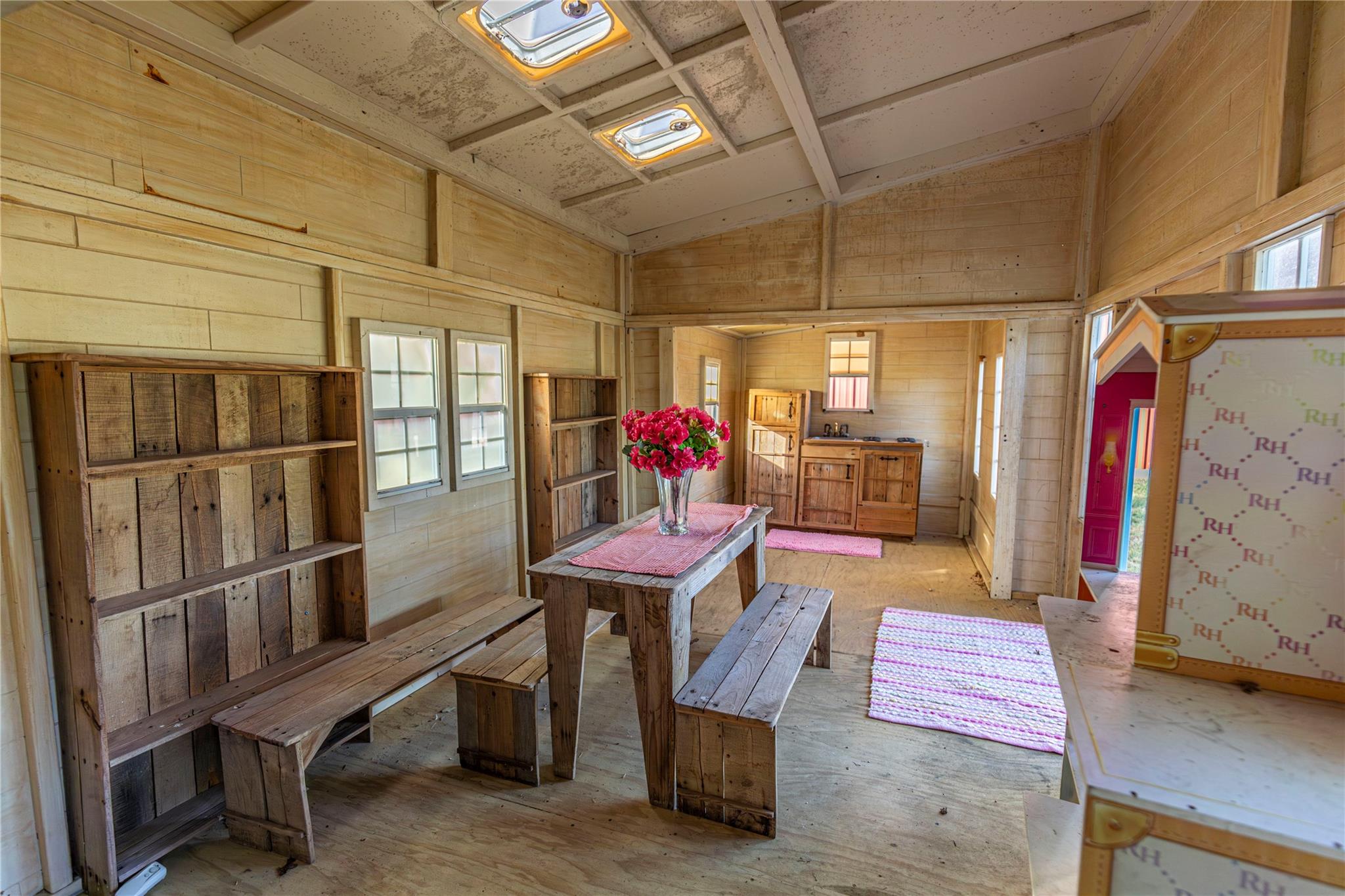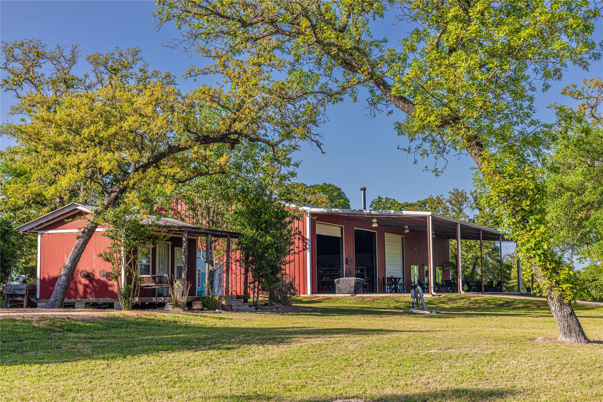 Welcome to your dream barndominium nestled on +/-18 acres of gently rolling pastureland. Thoughtfully updated, the kitchen showcases custom white oak cabinetry, quartz countertops, open shelving, and abundant storage. A massive island anchors the space and overlooks the inviting living area, complete with built-ins and a cozy wood-burning fireplace. The spacious primary suite is a private retreat, featuring serene views of the pasture and pond, a spa-inspired bathroom, and an expansive walk-in closet. Step outside to the oversized porch and take in the countryside setting. Attached to the home is an impressive 49' x 57' three-car shop, outfitted with a bar and outdoor kitchen—perfect for entertaining. Guests will enjoy the charming cottage, while kids will fall in love with the adorable playhouse. With three RV hookups and a dedicated pad site equipped with electrical and a septic pumping station, this property offers the perfect blend of beauty, comfort, and functionality.