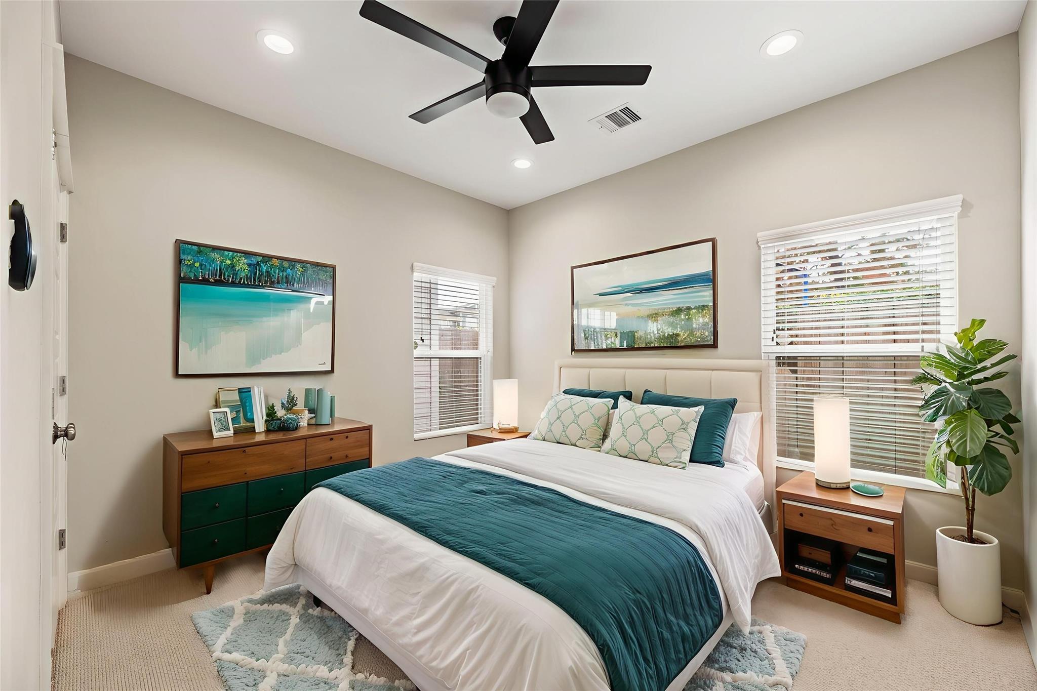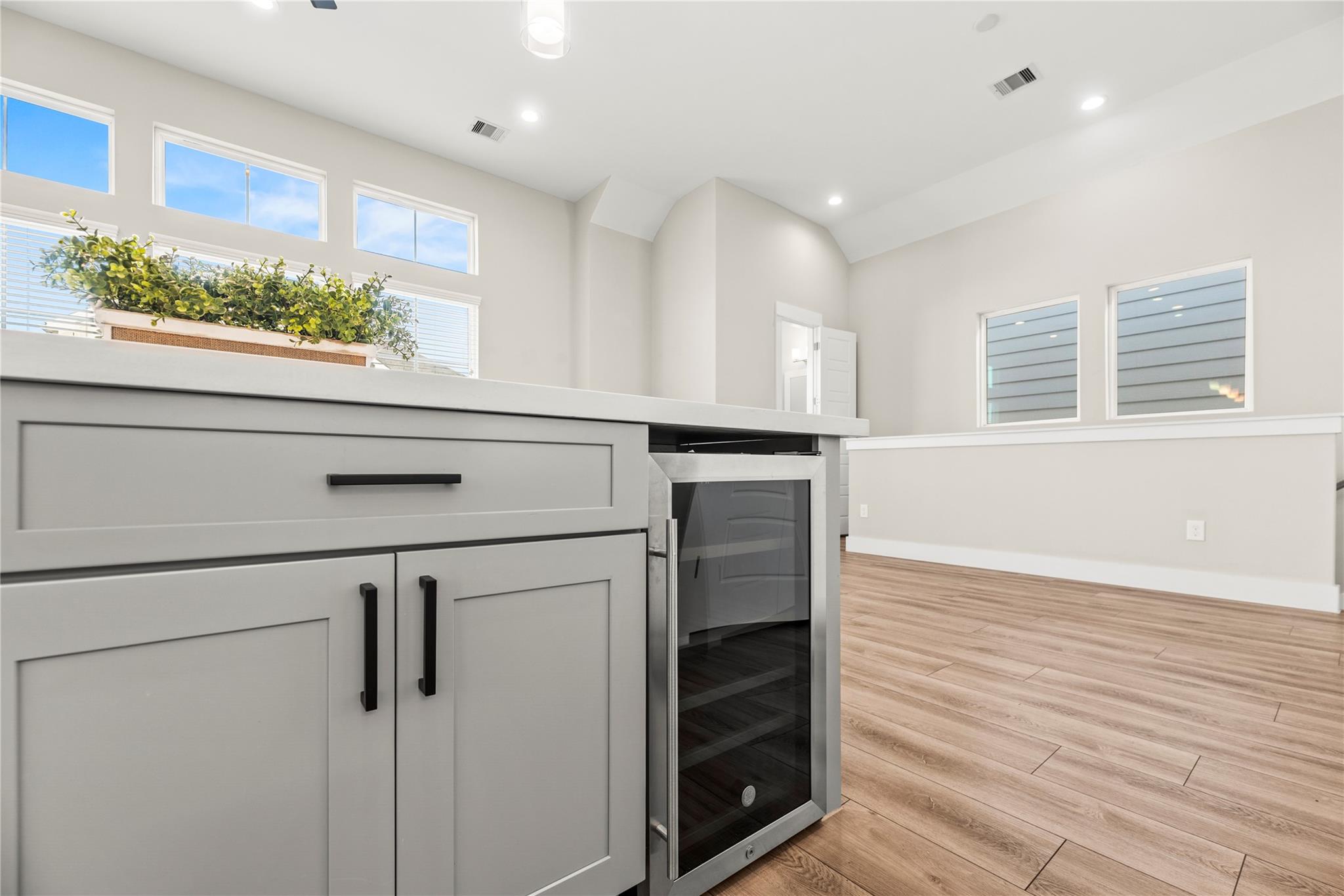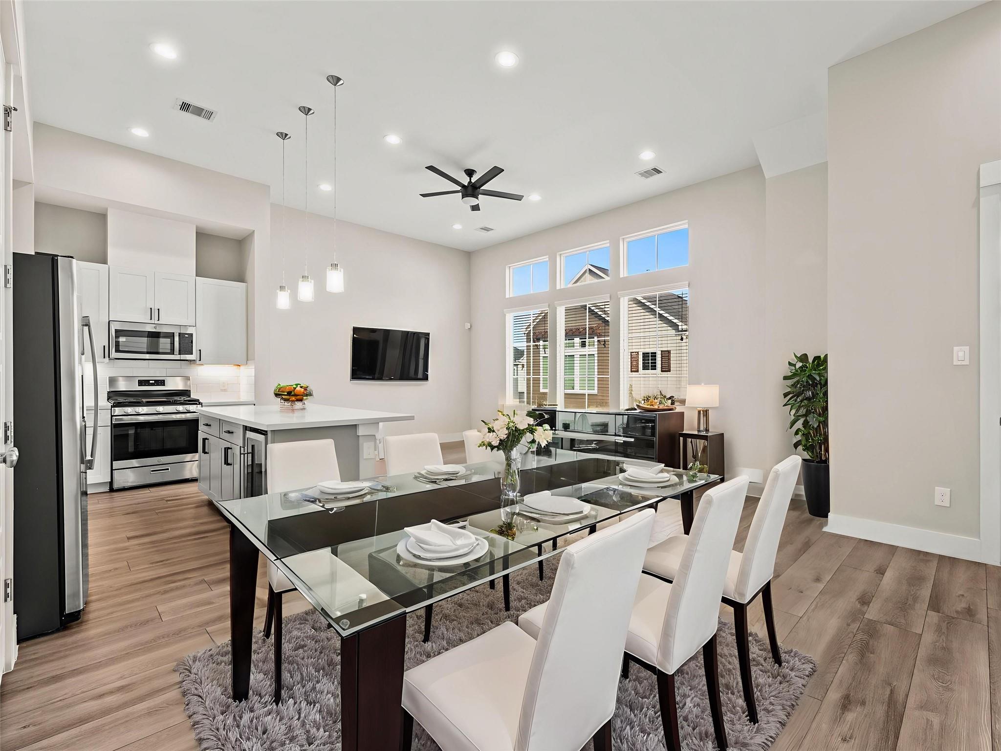 This stylish two-story home offers a modern design and is located in the gated and desirable community of Jacquelyn Vista. Welcome to 7709 Kivu Lane, featuring 3 bedrooms, 2.5 baths, and an open, contemporary layout. Two bedrooms are conveniently located on the first floor, while the private primary suite occupies the second level and includes a spa-inspired bath with double sinks, soaking tub, separate shower, and a walk-in closet. The kitchen is designed for both function and style, showcasing quartz countertops, soft-close cabinets and drawers, under-cabinet lighting, a large island, pantry, and gas range, along with a built-in beverage fridge. Additional highlights include high ceilings, luxury vinyl flooring, alarm system, programable digital thermostat and a two-car garage with automatic opener. The HOA covers the water bill and lawn care making for effortless living in a prime Houston location near shopping, dining, and major freeways. Call us today for your private showing.