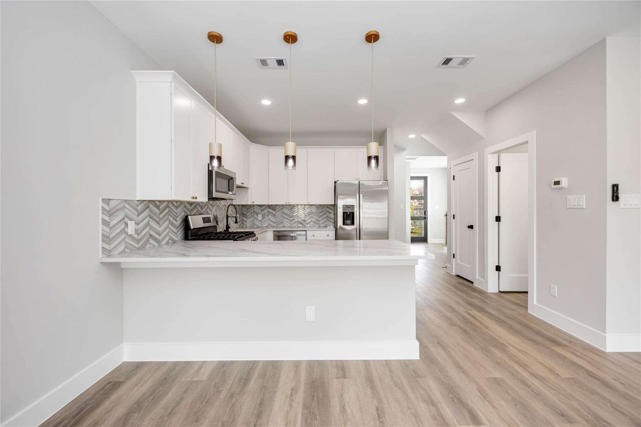 The Sandra at Fair St. is a striking new-construction residence offering 3 bedrooms, 2.5 bathrooms, thoughtfully designed with a grand foyer featuring soaring ceilings that flood the home with natural light and create an impressive first impression.The open-concept layout flows into a spacious living area anchored by a modern fireplace, providing both warmth and a sophisticated focal point for entertaining and everyday living. The living, dining, and kitchen areas connect effortlessly, delivering comfort with contemporary appeal. The primary suite on the main level offers a private retreat with a walk-in closet and a well-appointed ensuite bath.This is also a fully gated property for privacy and security.. Located in a growing area with convenient access to major roadways and local amenities.