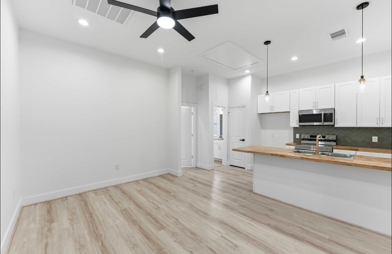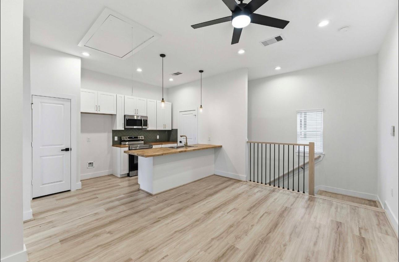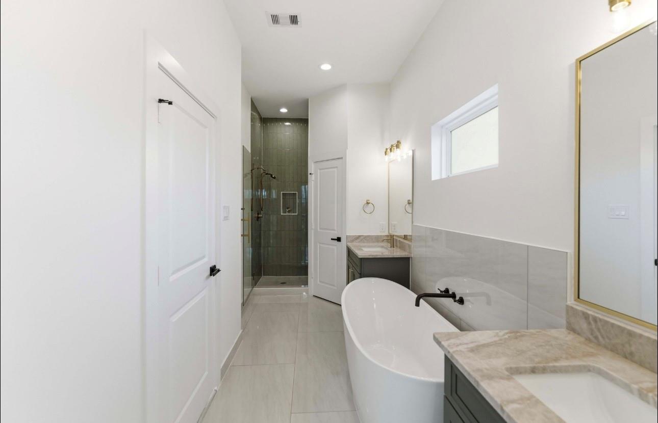 Welcome to this stunning multi-family property designed for both luxury living and smart investing. Featuring a beautifully designed main residence and a private ADU, this home offers the perfect blend of style, functionality, and income potential—all on one lot with separate entrances for added privacy. The main home showcases a warm, modern aesthetic with natural tones, elegant gold accents, and sleek glass stair railings. Spacious living areas and a 2-car garage provide both comfort and convenience. Tucked behind, the ADU offers its own private entrance, 1-car garage, and a thoughtfully designed layout with a full kitchen featuring butcher block countertops—ideal for guests or rental income. Perfect for house hacking, multi-generational living, or investing, this property offers versatility and modern living in one exceptional opportunity.