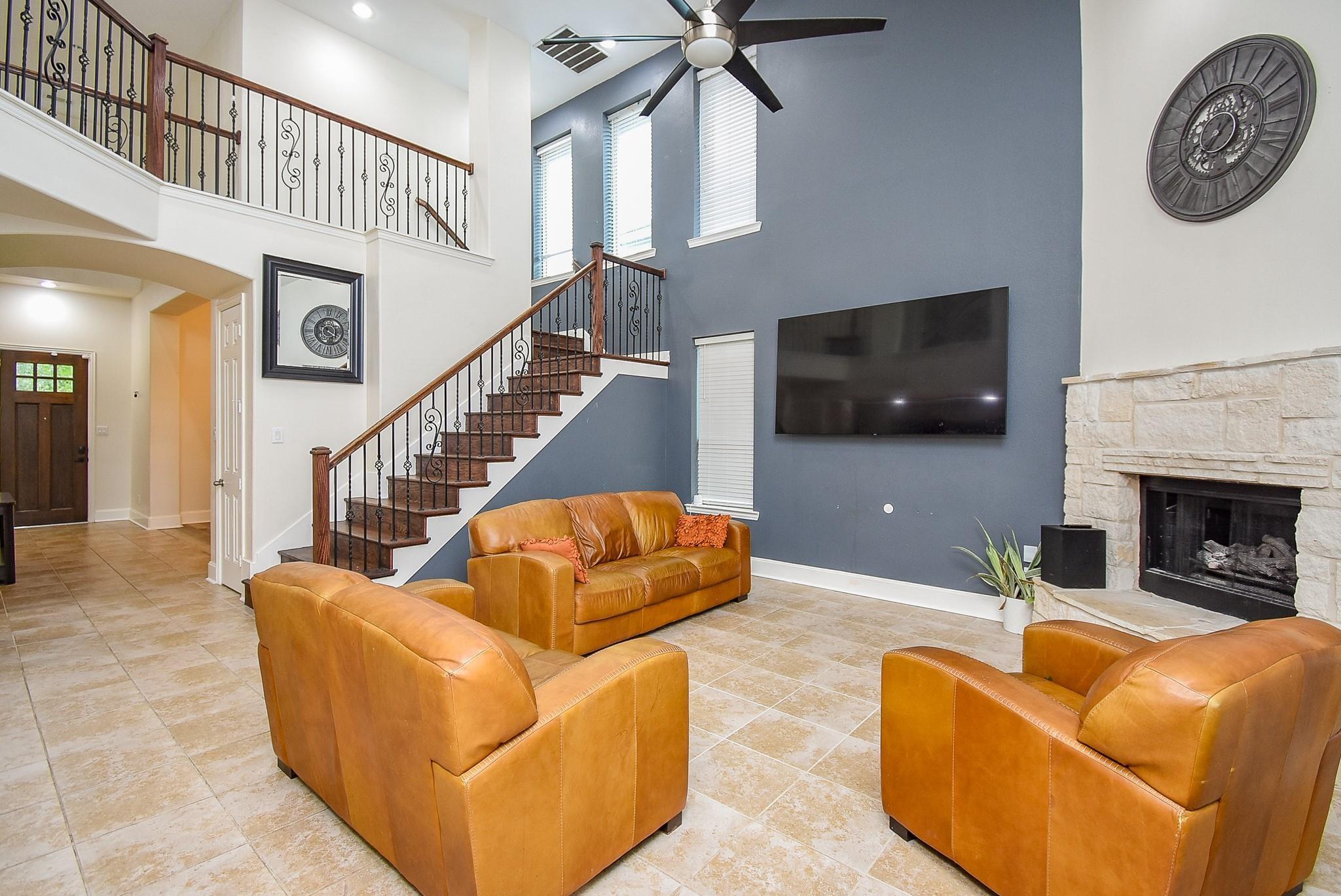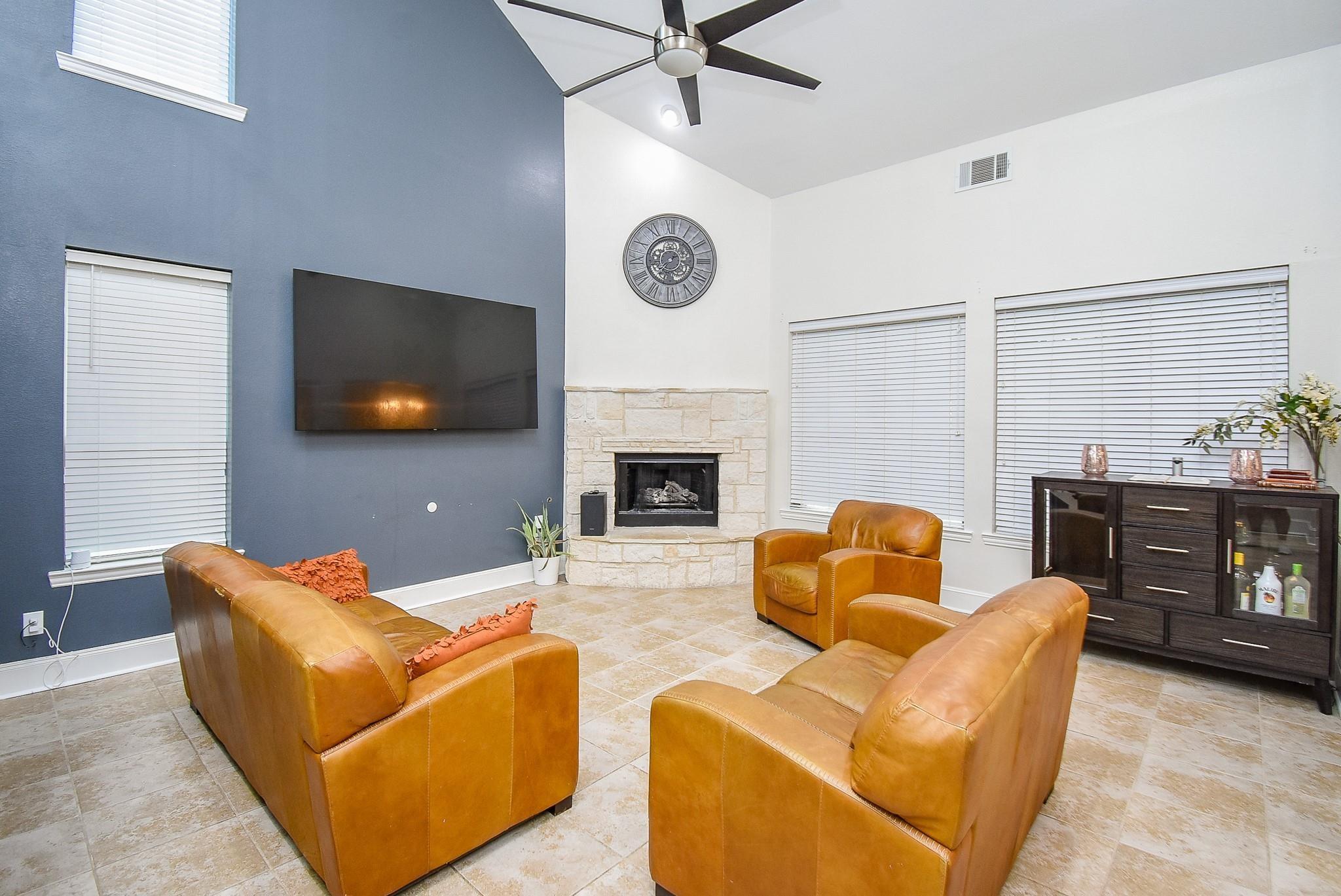 This Highland Home is a treat and a must-see, PRICED WELL BELOW what similar homes are going for! NEW ROOF in 2023!!! With TWO bedrooms downstairs, this is a flexible floor plan for families. In addition to the two bedrooms and full bathrooms down, the living room/kitchen/breakfast area is an open concept perfect for entertaining. The study boasts custom cabinetry and bookshelves to the ceiling. There's no carpet downstairs except in one bedroom. The Formal Dining Room has a custom shiplap accent wall with high ceilings. There are two fireplaces, one in the living room and another in the primary bedroom. The backyard is perfect for cool nights with a fire pit built into the covered patio and deck. Upstairs there are 3 bedrooms and two full bathrooms, a game room & a media room. Zoned to great schools and offers easy access to nearby dining, shopping centers, and everyday conveniences.