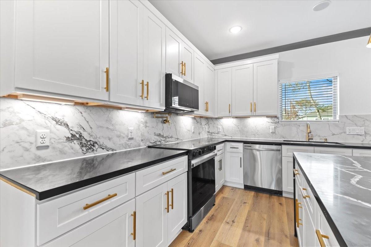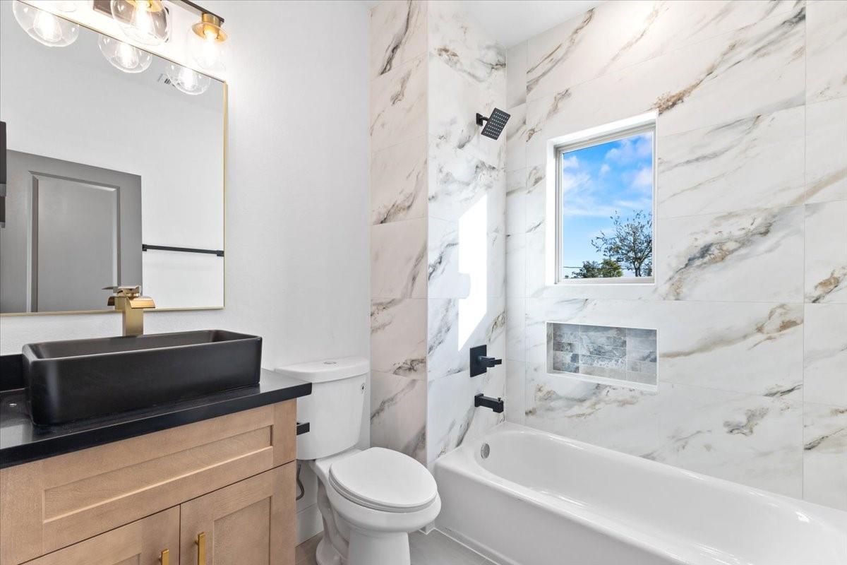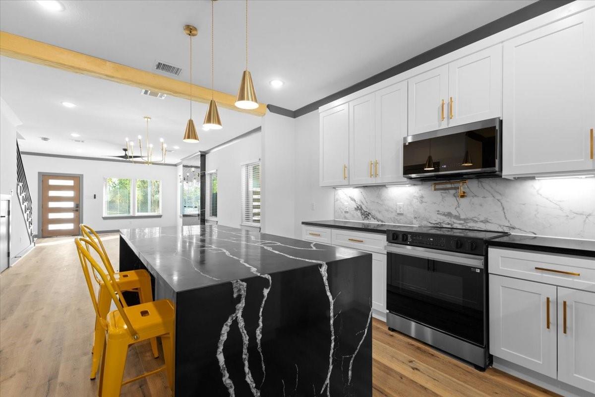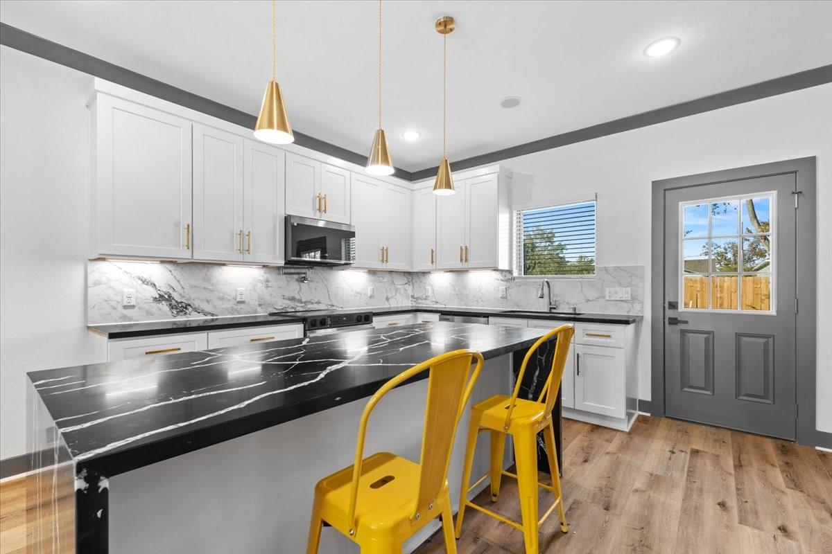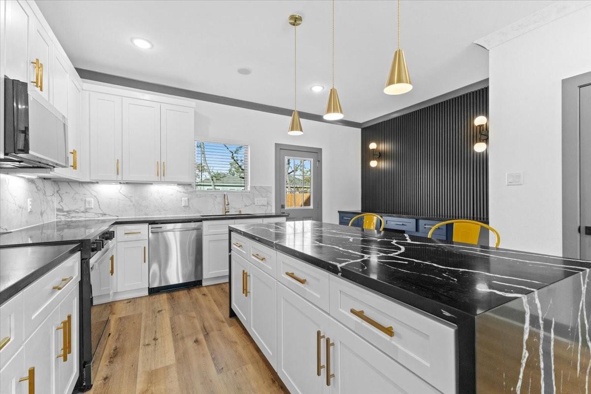 This newly crafted duplex invites you into a space designed with intention, luxury, and a touch of grown-and-sexy sophistication. Step inside to discover a kitchen that steals the moment with a stunning waterfall island, a sleek pot filler, a bold contrasting backsplash, and smart appliances that respond to your rhythm. Gold accents add an upscale edge, while the custom wood acoustic wall brings warmth to the kitchen. An electric fireplace with remote control creates the perfect vibe at the touch of a button. The motion-censored stair lighting draws you upstairs with subtle drama, guiding you to carefully curated spaces. Your comfort is protected with an HVAC security enhancement, bringing peace of mind along with modern convenience. Each unit carries its own identity yet shares the same commitment to style, quality, and intentional design—ideal for the buyer ready for elevated living or the investor seeking a high-end rental opportunity. Welcome to 7949 Attwater!
