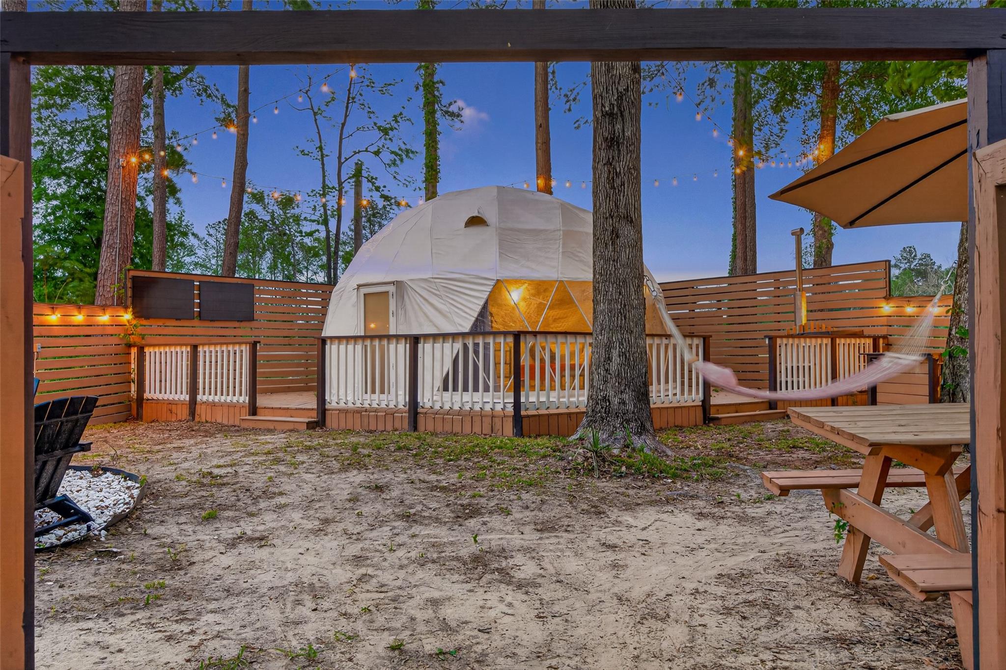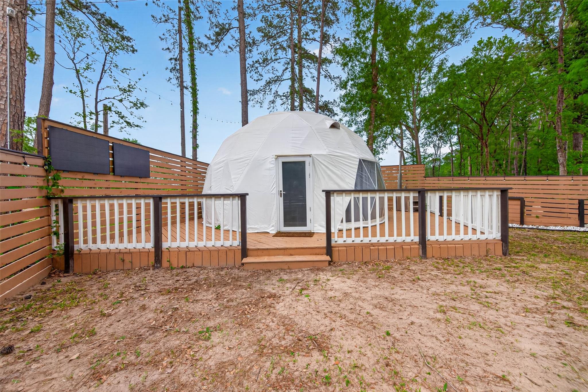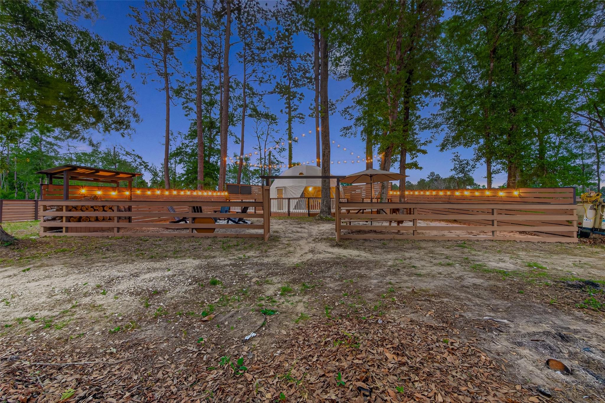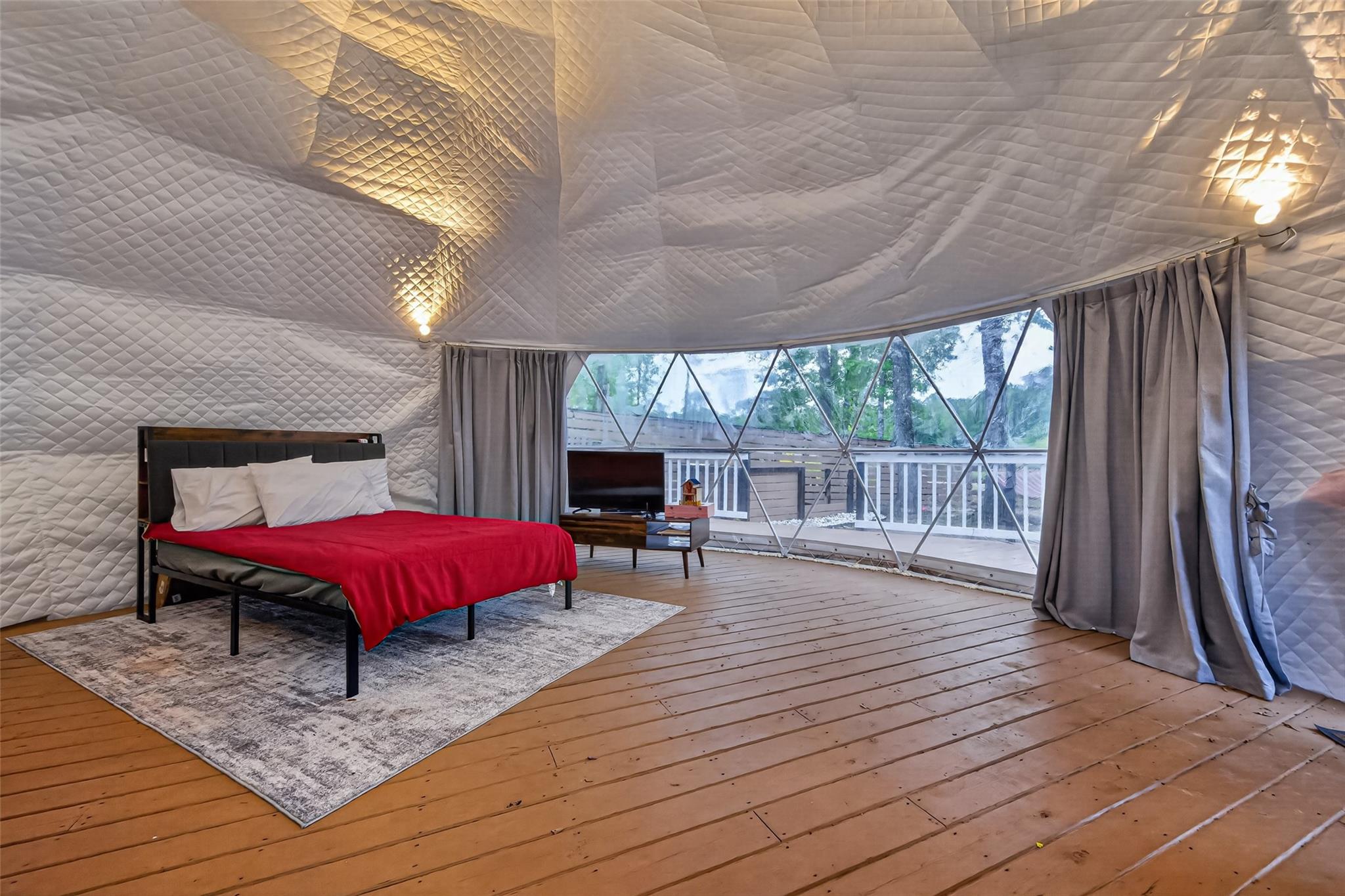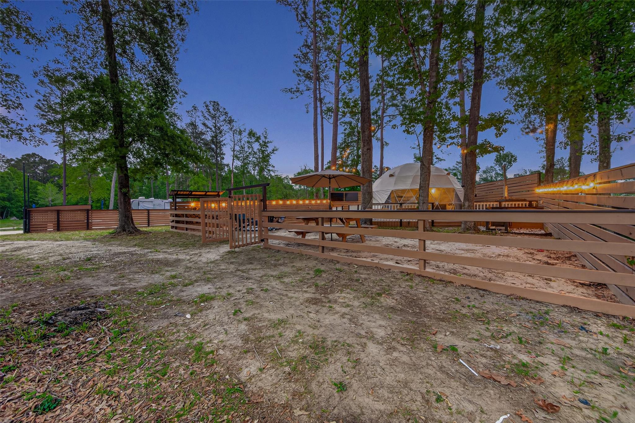 Rare 5.16 acres with direct road access off CR 332/Gladsdell Rd and full frontage positioning, offering both accessibility and privacy. Located just 6 minutes from Hwy 59 and approx. 20 minutes from downtown Cleveland, this property provides a rare city-country balance. This is not raw land as major groundwork is complete. Features a fully operational off-grid geodesic dome, outdoor kitchen, fire pit area, fully furnished and privately fenced, designed for a true glamping experience. Includes an off-grid RV-style restroom with running water and flush system, plus public water on-site with lines preset for 3 additional future sites and one extra pad already prepared. Over 200 loads of dirt have been added to elevate the front portion of the property. Impressive 60’x25’ horseshoe drive-in entrance allows ample parking and is complemented by custom welded metal gates and private front fencing. Ideal as a retreat, weekend escape, investment, or turnkey rental.
