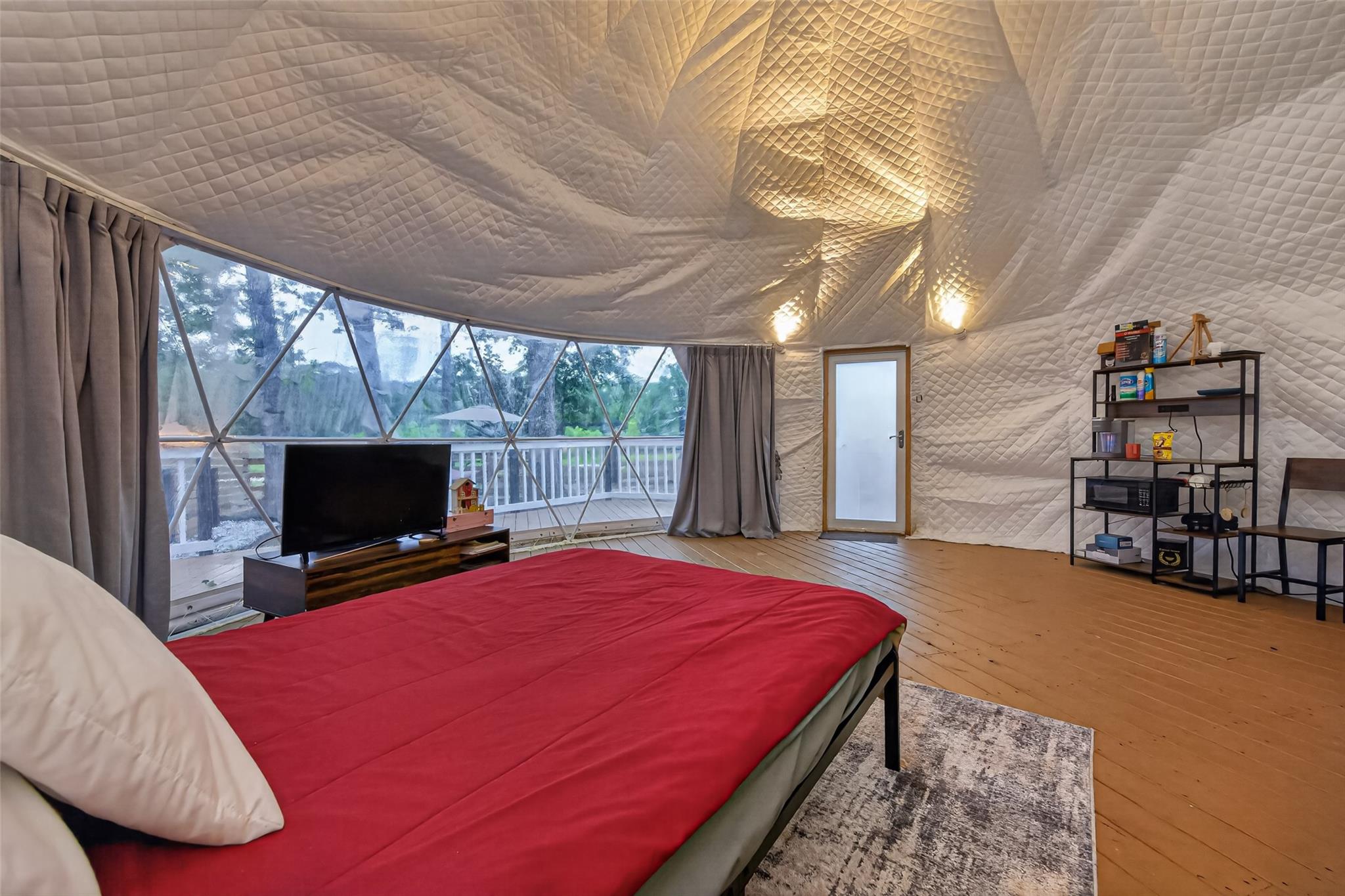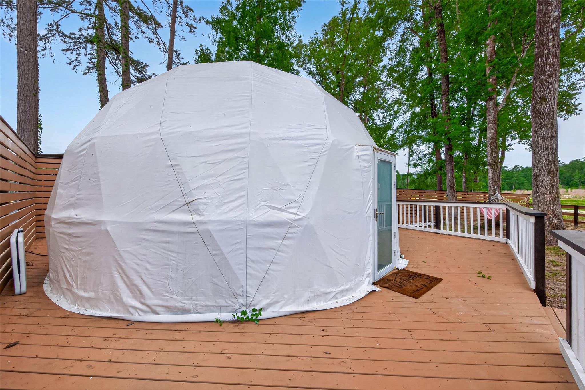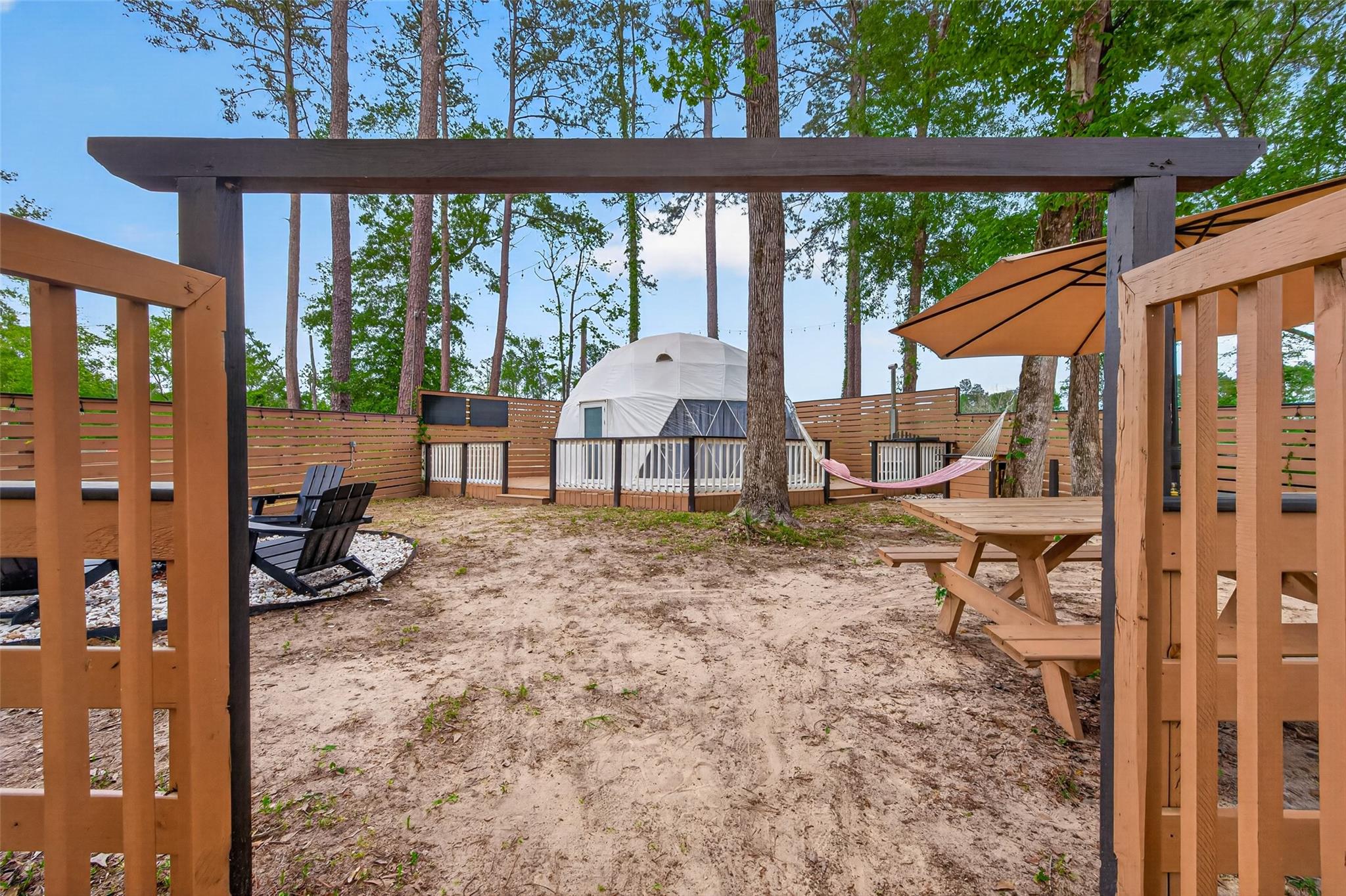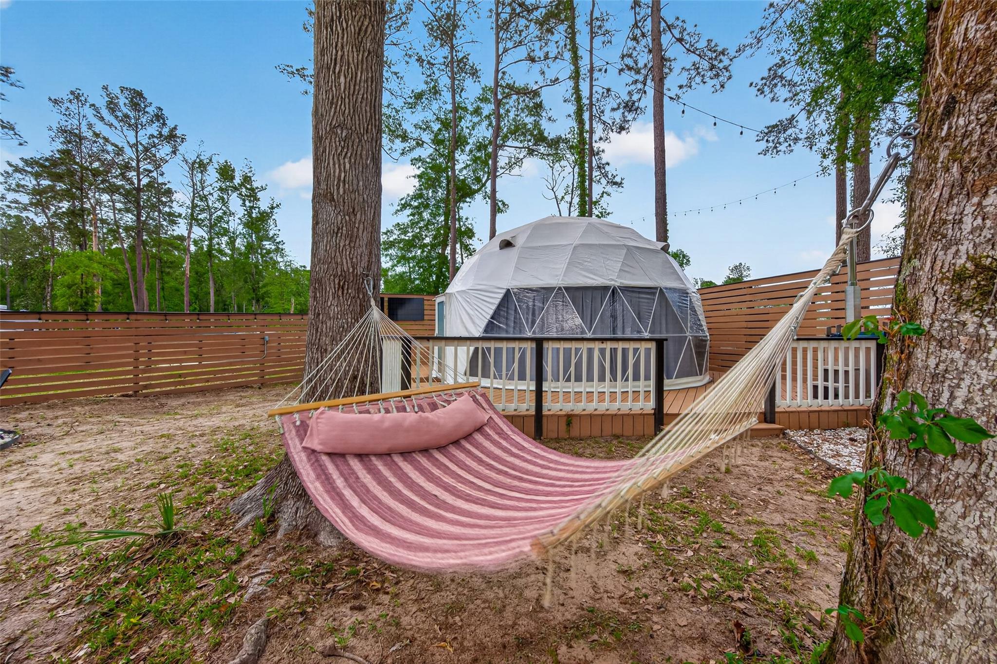 Rare 5.16 acres with direct road access off CR 332/Gladsdell Rd and full frontage positioning, offering both accessibility and privacy. Located just 6 minutes from Hwy 59 and approx. 20 minutes from downtown Cleveland, this property provides a rare city-country balance. This is not raw land as major groundwork is complete. Features a fully operational off-grid geodesic dome, outdoor kitchen, fire pit area, fully furnished and privately fenced, designed for a true glamping experience. Includes an off-grid RV-style restroom with running water and flush system, plus public water on-site with lines preset for 3 additional future sites and one extra pad already prepared. Over 200 loads of dirt have been added to elevate the front portion of the property. Impressive 60’x25’ horseshoe drive-in entrance allows ample parking and is complemented by custom welded metal gates and private front fencing. Ideal as a retreat, weekend escape, investment, or turnkey rental.