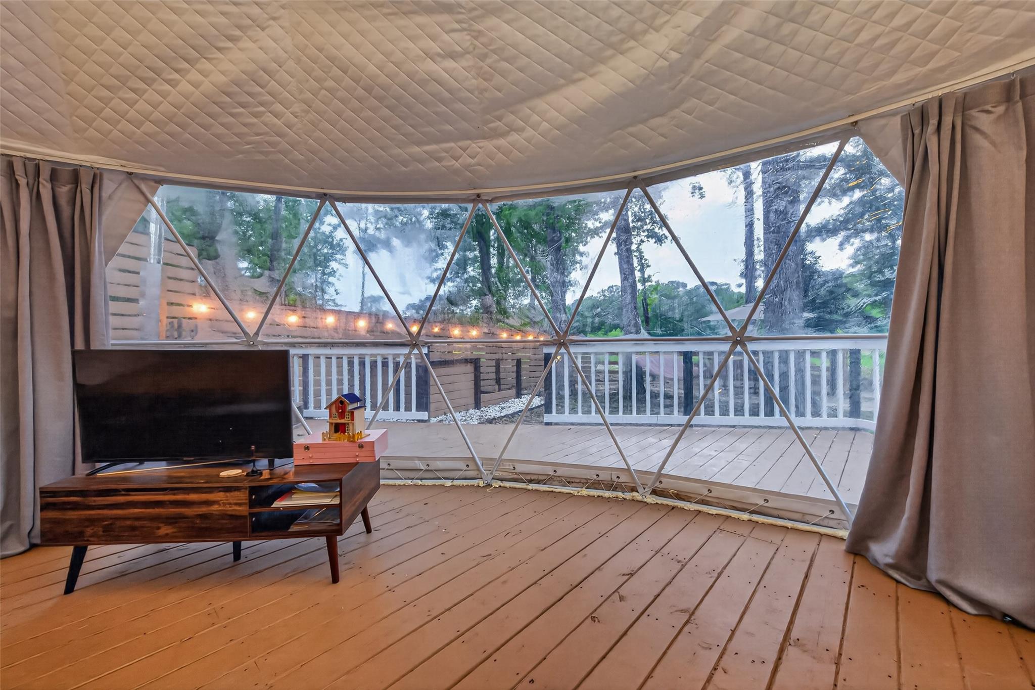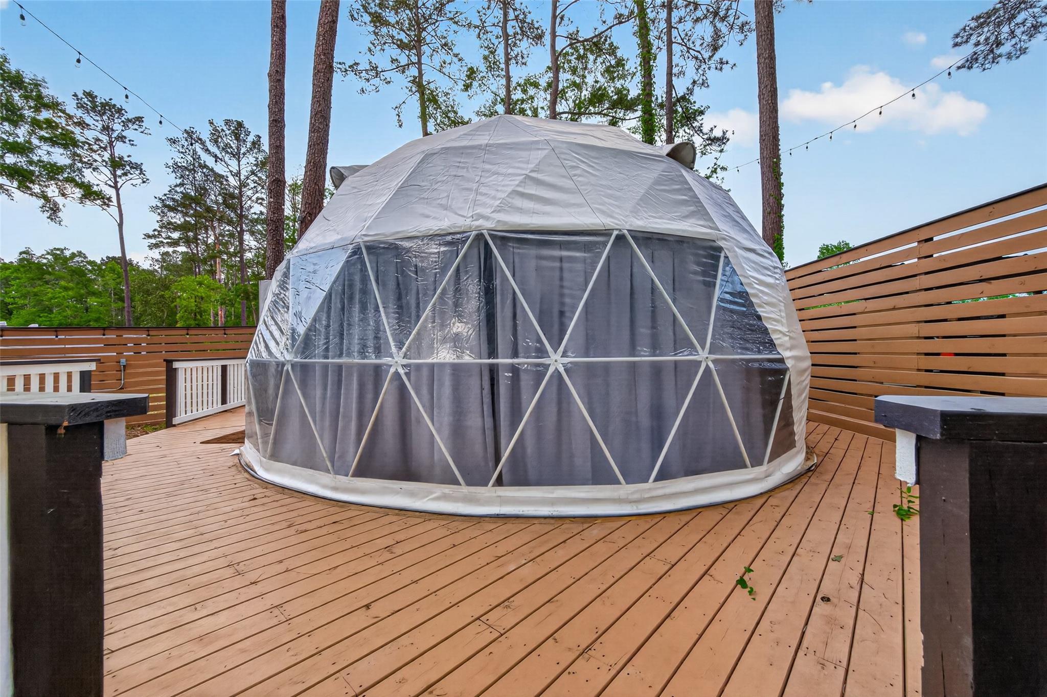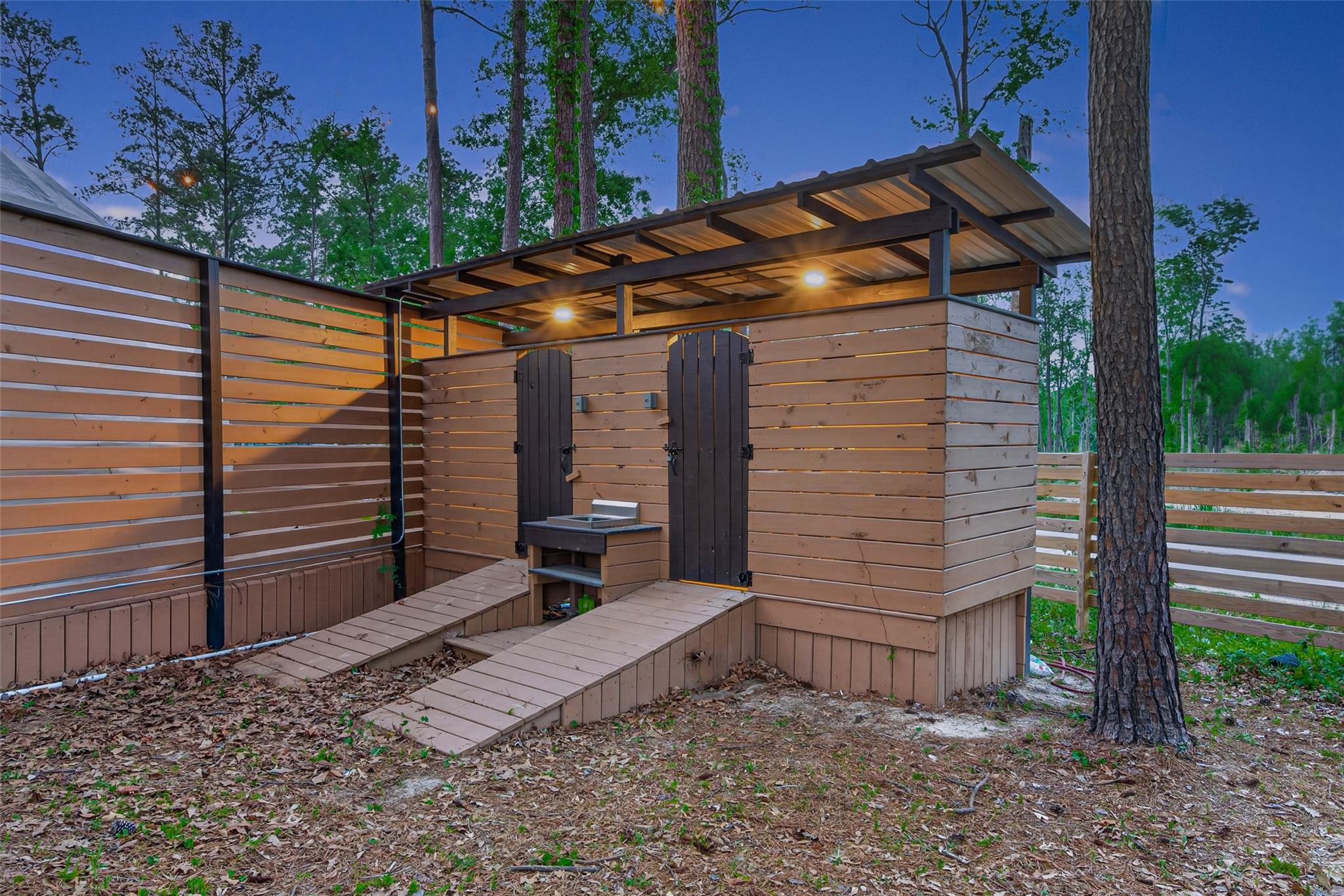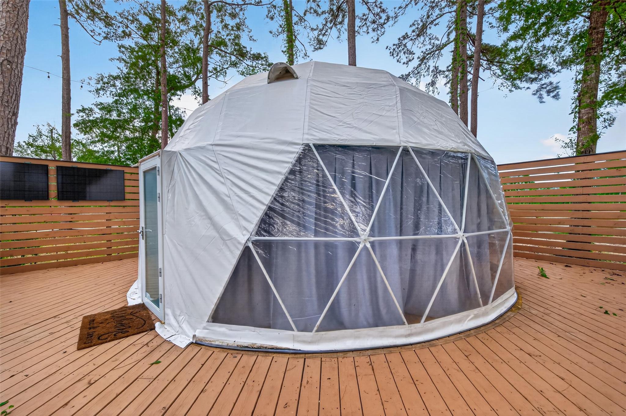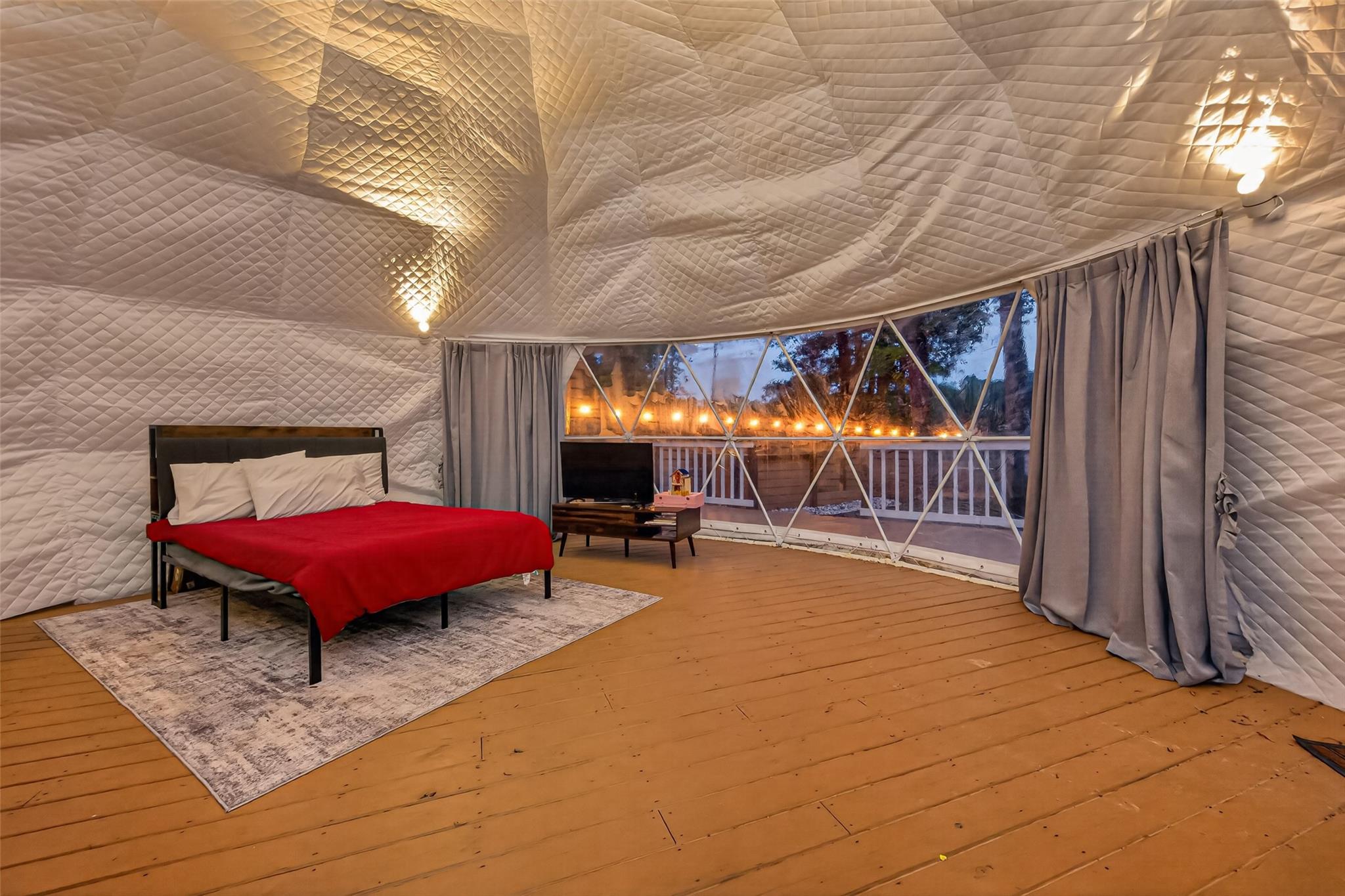 Rare 5.16 acres with direct road access off CR 332/Gladsdell Rd and full frontage positioning, offering both accessibility and privacy. Located just 6 minutes from Hwy 59 and approx. 20 minutes from downtown Cleveland, this property provides a rare city-country balance. This is not raw land as major groundwork is complete. Features a fully operational off-grid geodesic dome, outdoor kitchen, fire pit area, fully furnished and privately fenced, designed for a true glamping experience. Includes an off-grid RV-style restroom with running water and flush system, plus public water on-site with lines preset for 3 additional future sites and one extra pad already prepared. Over 200 loads of dirt have been added to elevate the front portion of the property. Impressive 60’x25’ horseshoe drive-in entrance allows ample parking and is complemented by custom welded metal gates and private front fencing. Ideal as a retreat, weekend escape, investment, or turnkey rental.