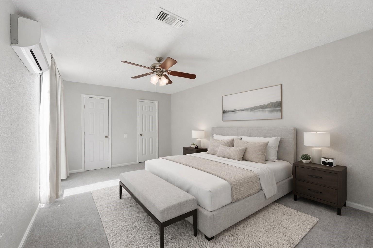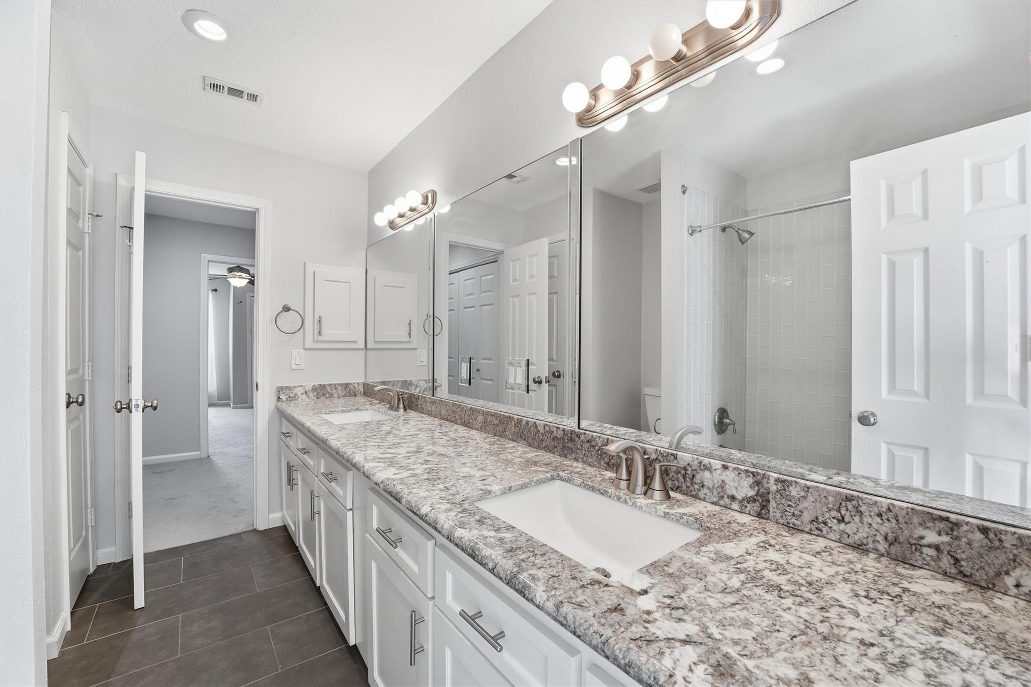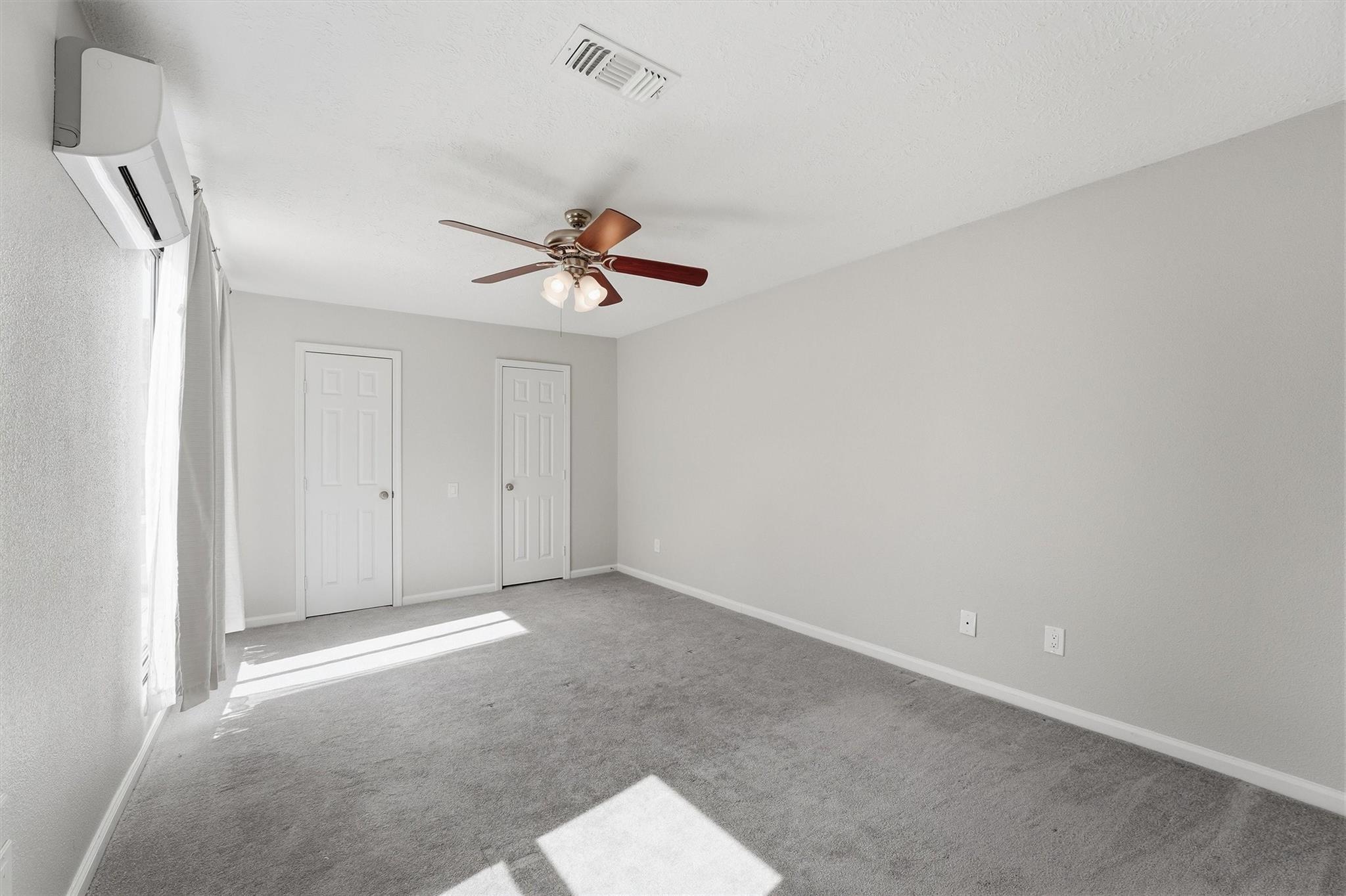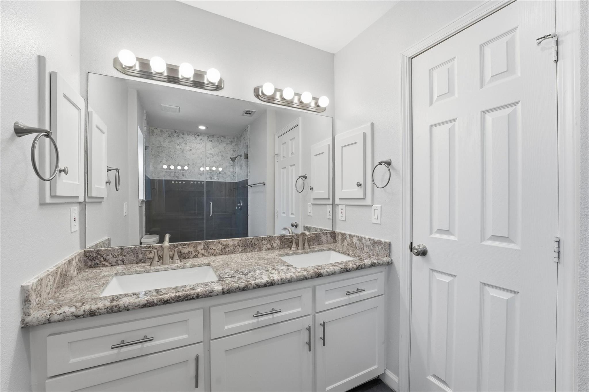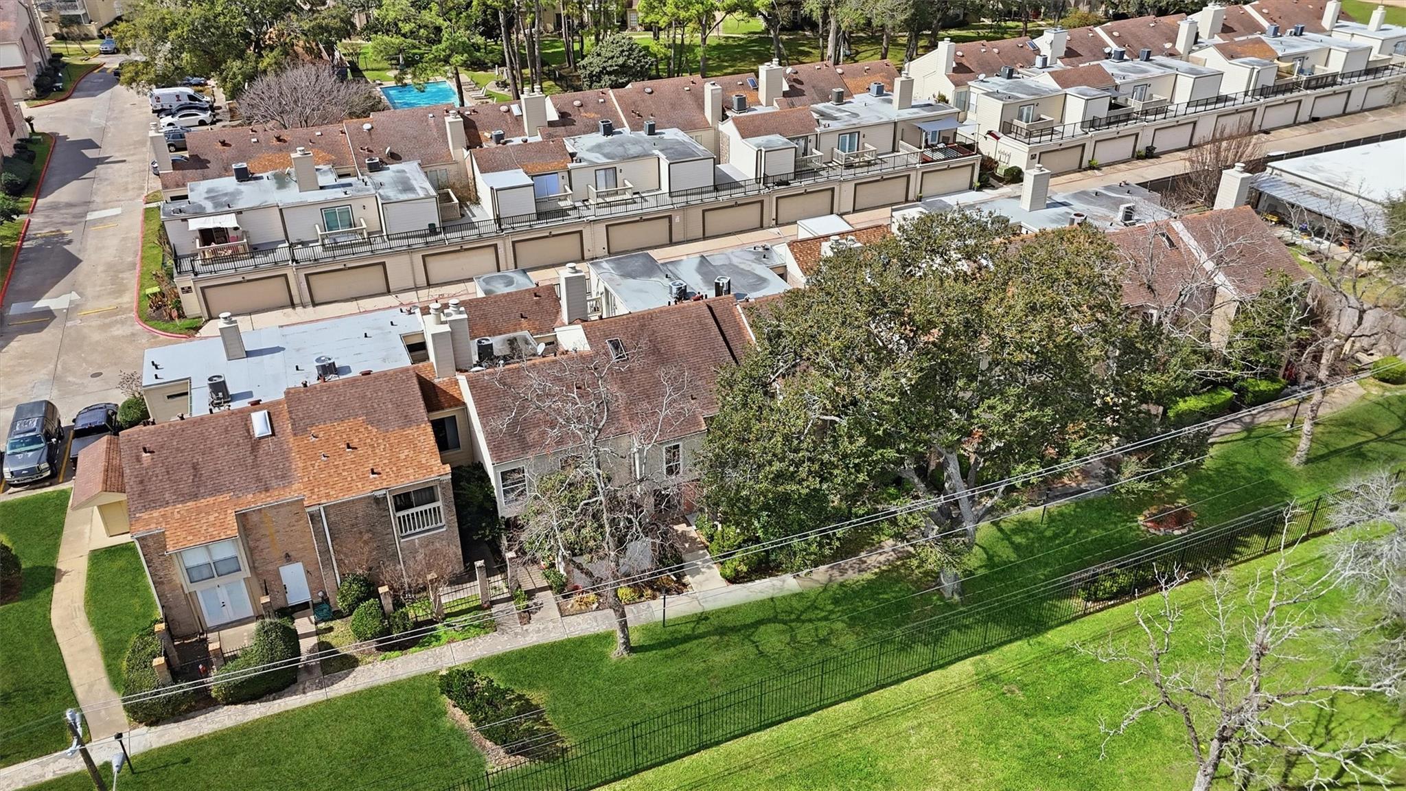 Updated, move-in-ready townhome in a gated Energy Corridor community. Featuring one of the largest floor plans, this versatile home offers two primary suites and a third bedroom. A wrought-iron fenced patio overlooking green space welcomes you. Inside, the first floor includes a central light-filled atrium, a bedroom with a custom walk-in closet, and a kitchen equipped with granite counters and stainless steel appliances. 2nd floor has 2nd primary suite providing a private balcony and dedicated mini-split AC/heat, a flex space perfect for office, gym, or gameroom and secondary bedroom. Never flooded. Lower HOA dues. Recent updates include fresh paint (2026), PVC plumbing (2019), HVAC (2020), and a Wi-Fi garage door opener (2023). Enjoy an oversized garage, ample guest parking, and an excellent location walking distance to Spring Branch ISD schools, with quick access to highways, shopping, dining, and Nottingham Park.