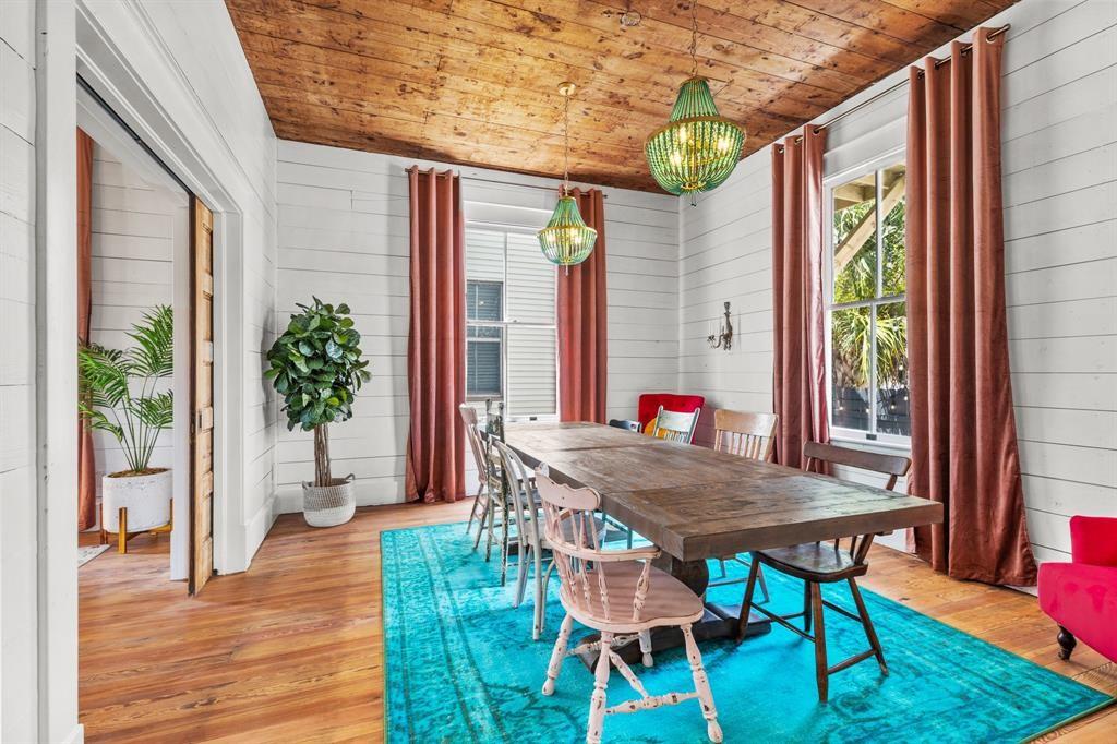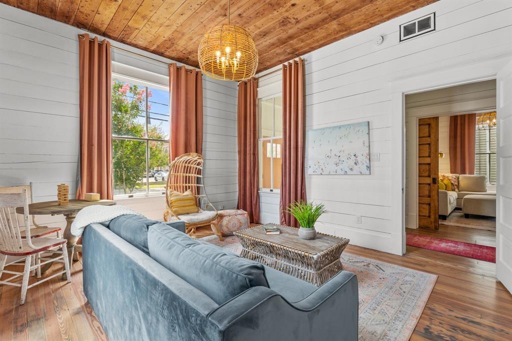 Charming Coastal Retreat within walking distance to the The Strand! This beautifully restored & thoughtfully redesigned home offers the perfect blend of historic charm & modern luxury, just minutes from Galveston Beach. Whether you’re looking for a serene family home or a fully furnished turnkey Airbnb, this one is ready to impress. Meticulously renovated, the home showcases restored original hardwood floors, shiplap walls & ceilings, vintage doors & hardware, & a classic clawfoot tub. The custom kitchen is a showstopper with new cabinetry, countertops, vent hood, light fixtures & SS appliances, including refrigerator, oven, microwave, dishwasher, washer & dryer. Enjoy peace of mind with a newer HVAC system, updated electrical panel, tamper-resistant outlets & switches, & PEX plumbing throughout. Newly insulated attic & finished w/plywood flooring & attic ladder. And here’s the best part: everything inside the home stays! This home comes completely furnished & ready to enjoy!