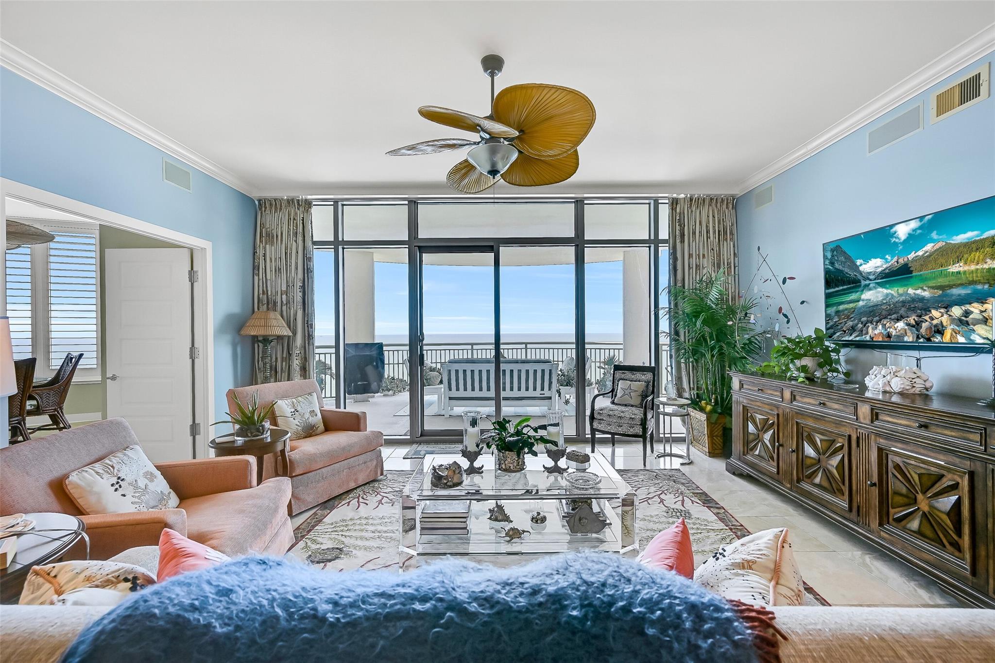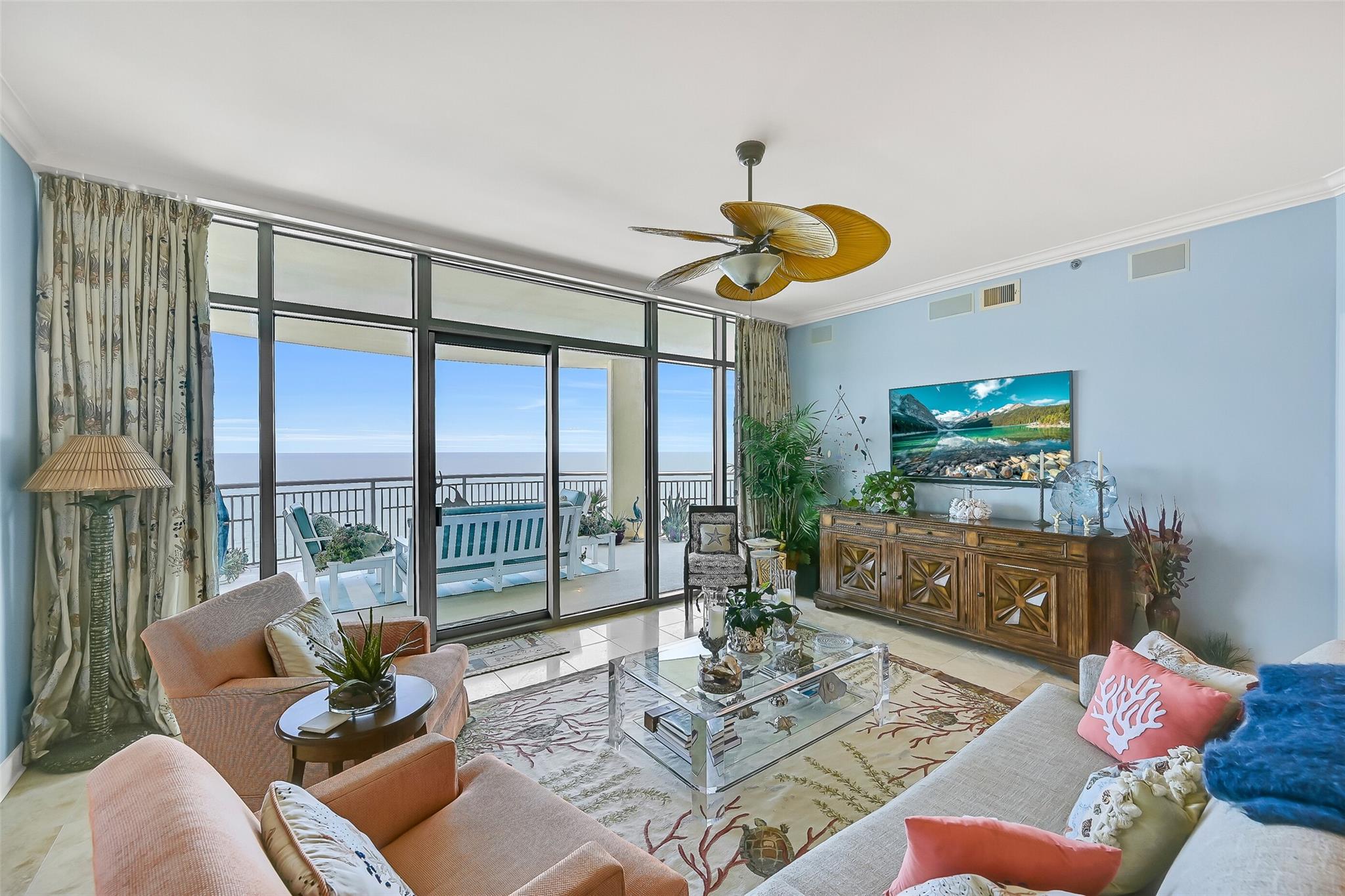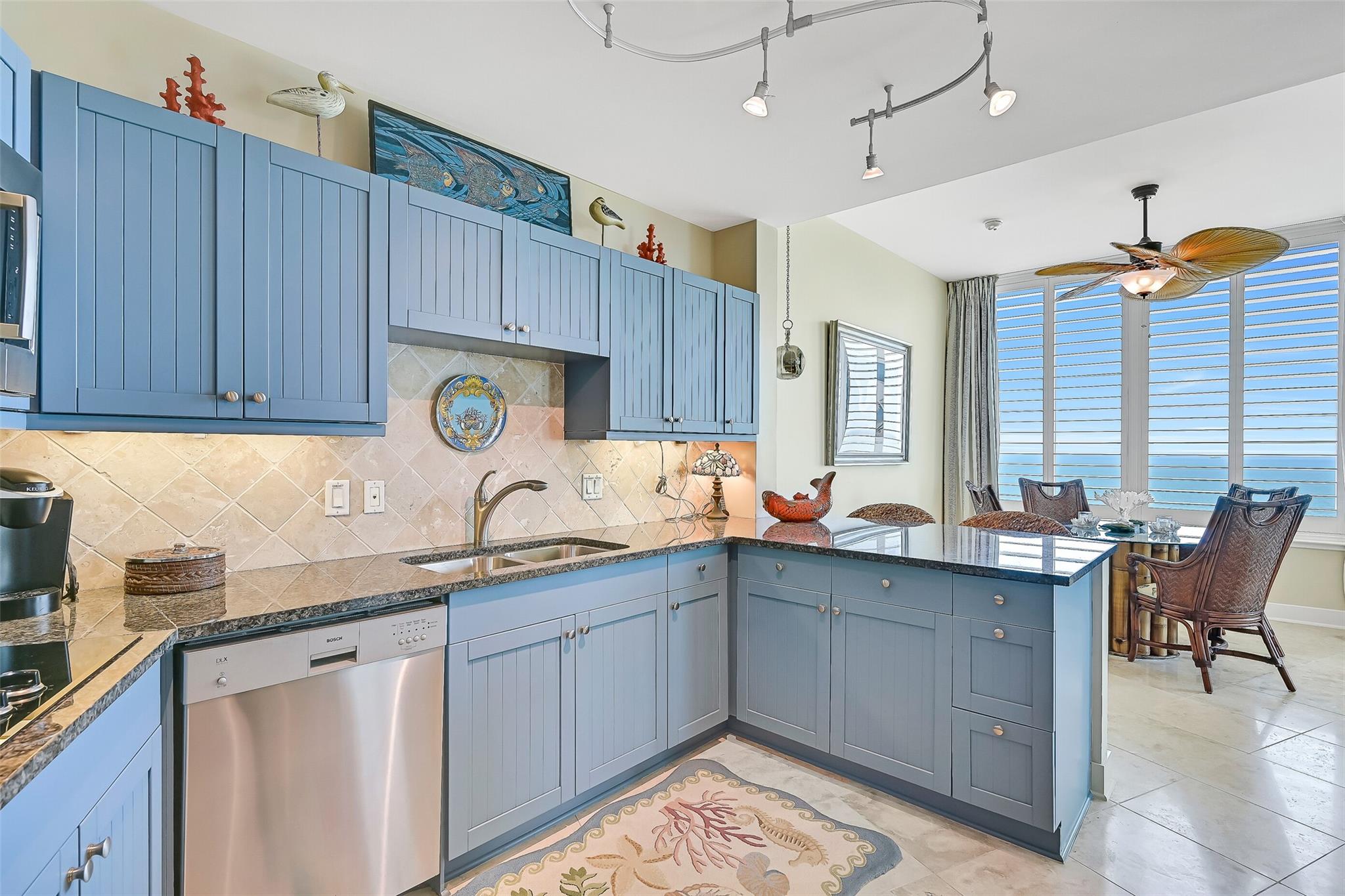 Enjoy upscale coastal living in this beautiful 4-bedroom, 4-bathroom condo on the 23rd floor of the coveted Palisade Palms. The open living, kitchen, and dining area have stunning beach views from the south facing windows and fill the space with natural light. The chef’s kitchen features granite countertops, stainless steel appliances, and ample storage. Step out onto two spacious balconies to take in the panoramic beach scenery. The expansive primary suite offers direct balcony access and a spa-like bathroom with a soaking tub, walk-in shower, and dual vanities. Each additional bedroom includes its own en-suite bath for comfort and privacy. Palisade Palms resort-style amenities include direct beach access, pools, hot tubs, fitness center, tennis, pickleball, basketball, game rooms, lounges, and 24-hour concierge service. Whether a full-time residence, investment property or vacation retreat, this condo delivers luxury, lifestyle, and unbeatable views.