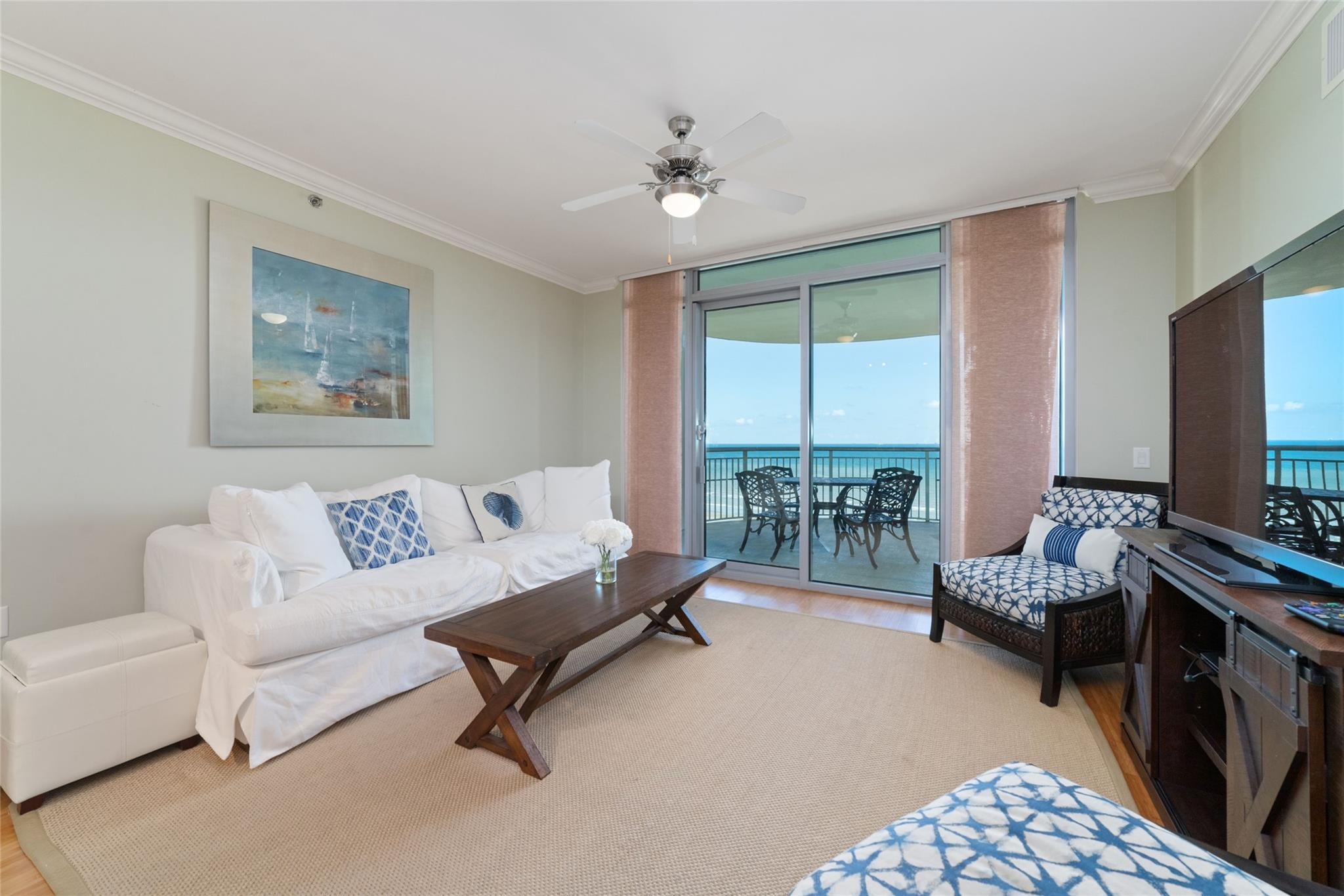 Beautiful 2–bedroom 10th floor condo offering breathtaking view of the Gulf. Featuring floor to ceiling windows in living room overlooking the water view.No carpet, bamboo style flooring in living room & bedrooms, tiles in kitchen & bathrooms.Sit in your private balcony & see the sand, sky and sea.Relax at night & listen to the rhythmic sound of crashing waves in your private balcony. Have a sip of coffee in the morning to witness the sunrise.Primary bed is a serene retreat,great water view,acces to balcony,upgraded walk-in closet shelves, en-suite bath w/ soaking tub &walk-in shower. 2nd bedroom has en-suite full bath, upgraded storage shelves & stunning water view. 3rd room can be a den, office or extra sleeping space. Kitchen stainless steel appliances, beautiful white cabinetry, spacious granite counter w/ bar stools. Lots of amenities to enjoy. This unit perfectly blends luxury & comfort, an idyllic coastal living experience.