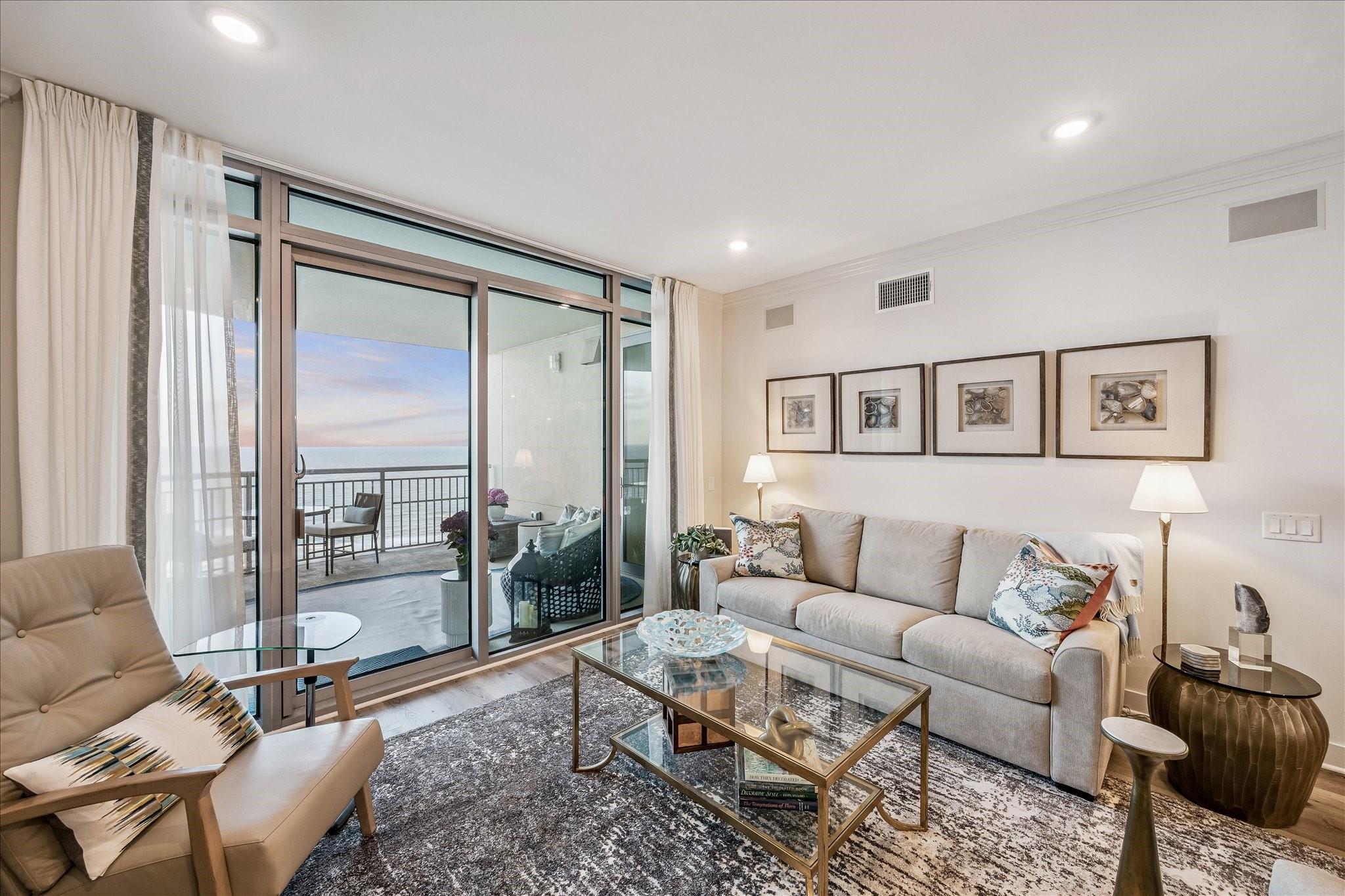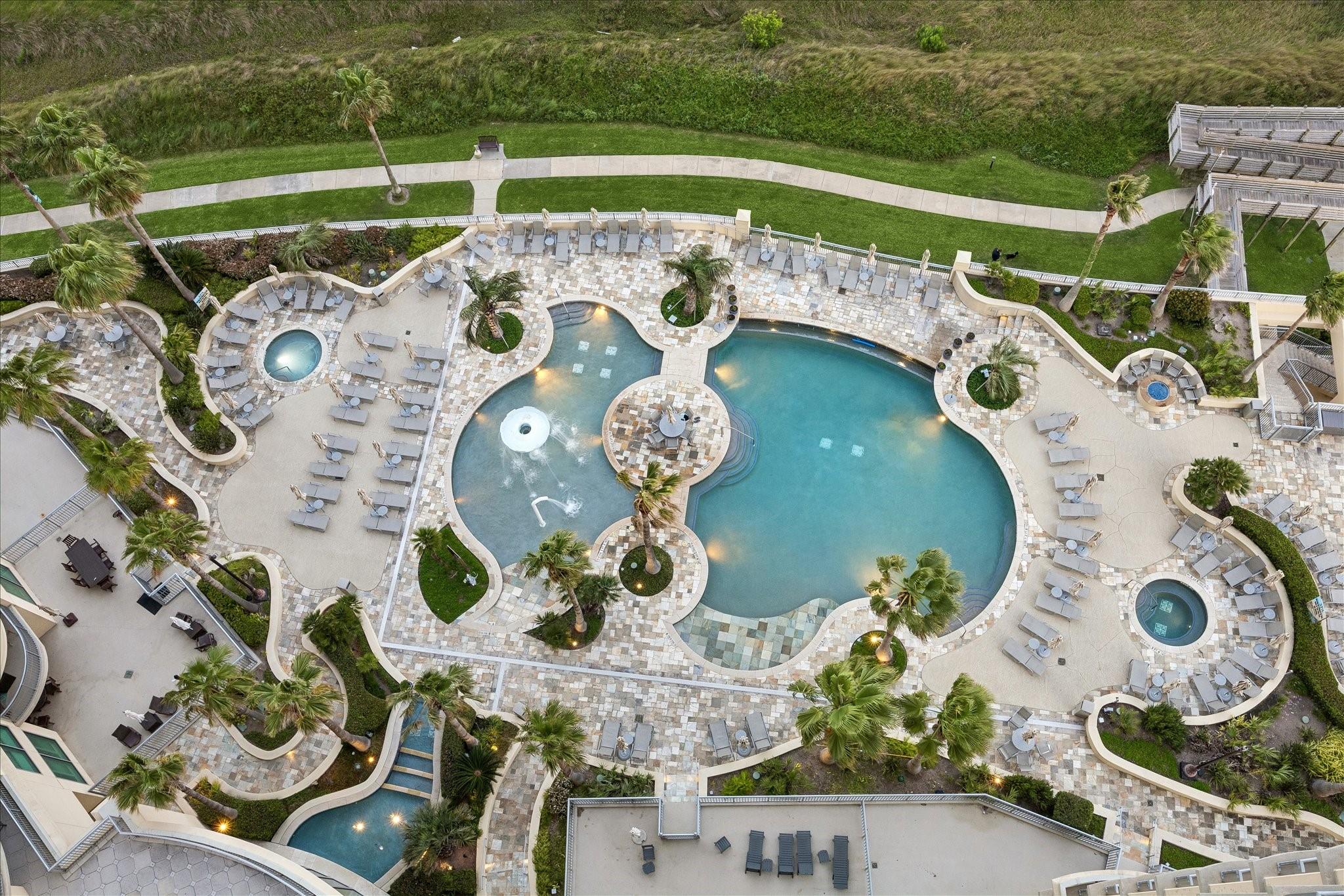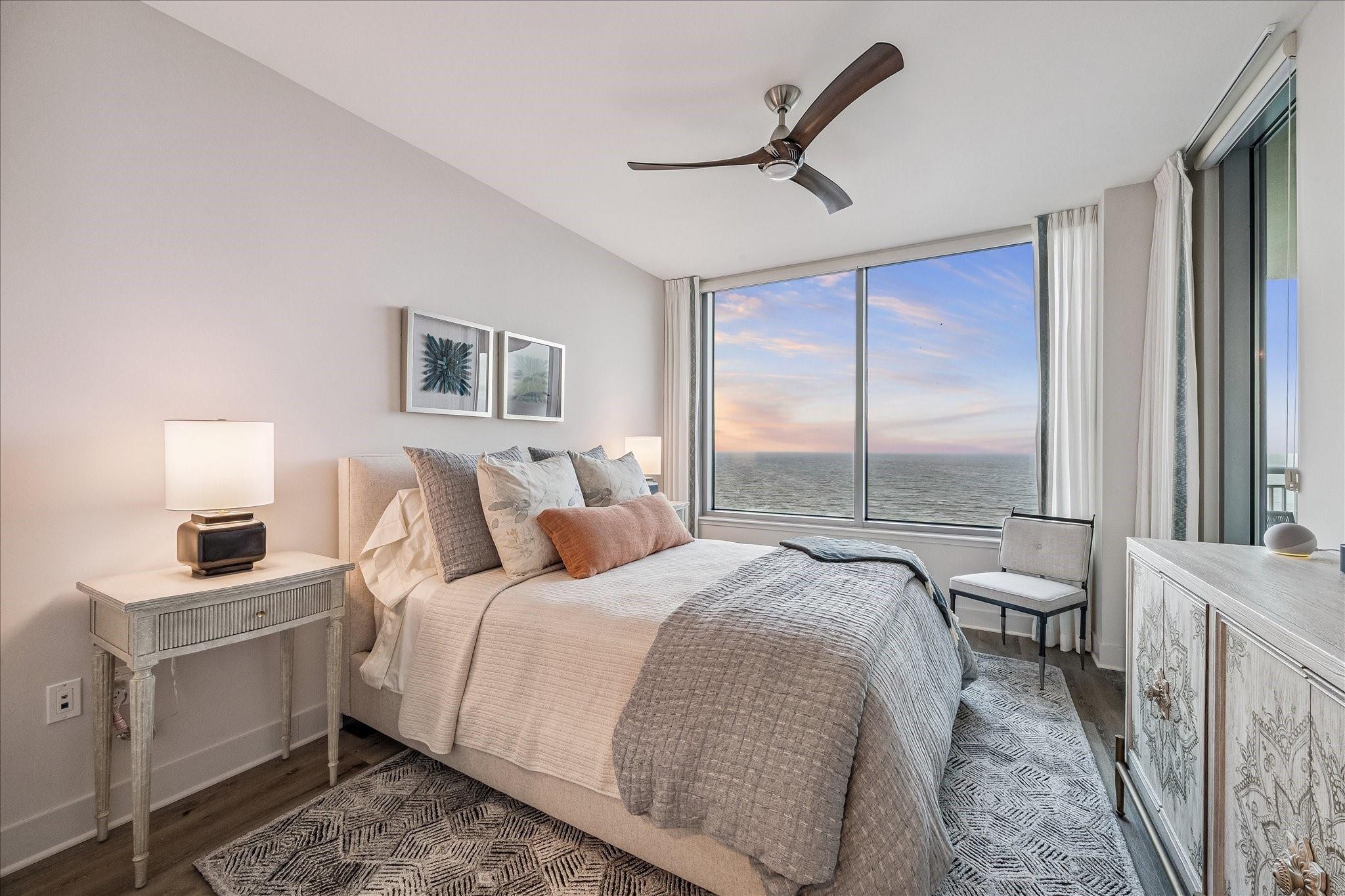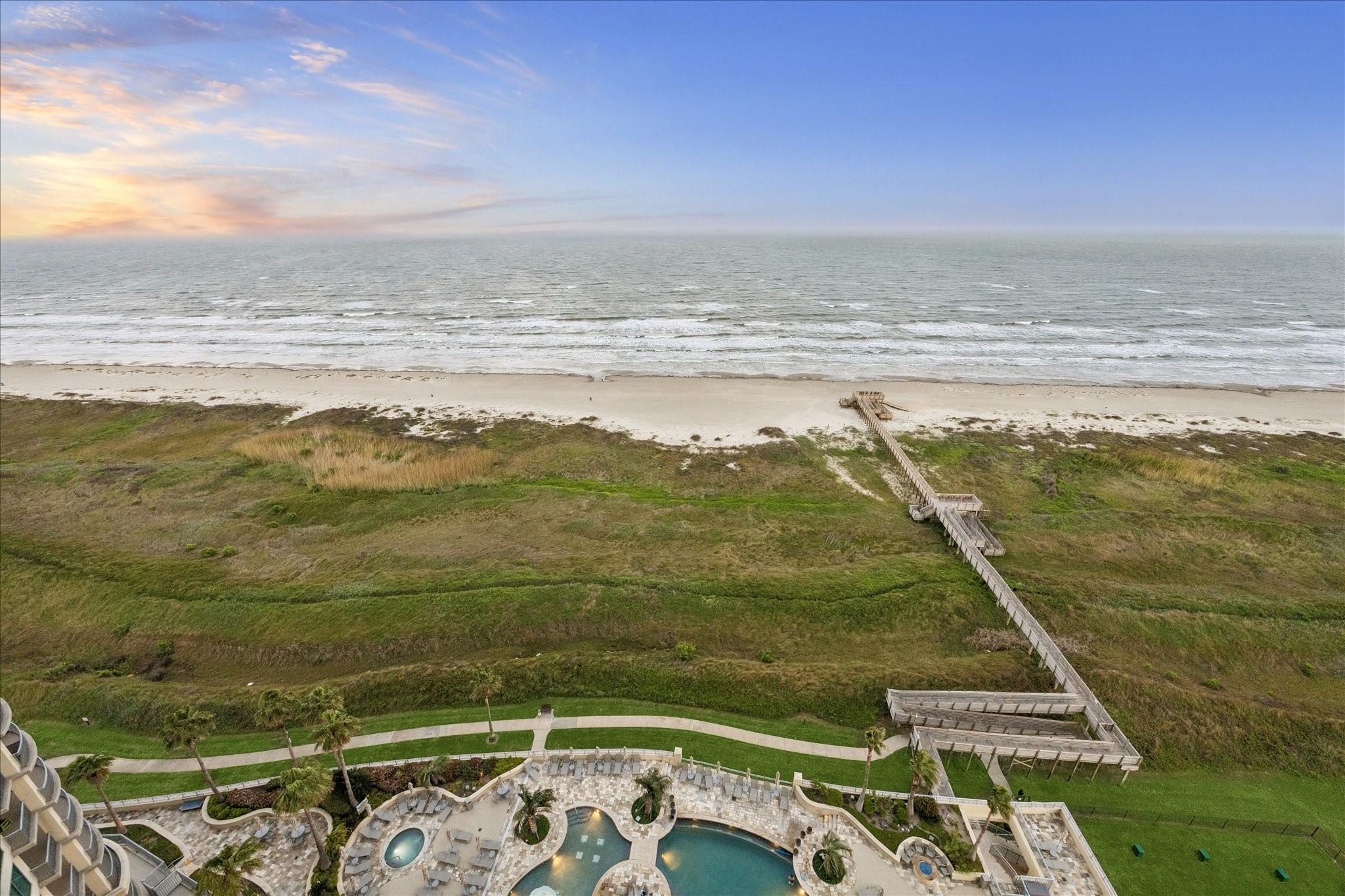 Step into refined coastal elegance with this professionally designed two-bedroom, two-and-a-half-bath residence at Palisade Palms on Galveston’s coveted East End. This exquisitely updated home showcases open-concept living, LED and recessed lighting with dimmers, designer fixtures, integrated audio, and a chef’s kitchen with Quartz countertops, custom backsplash, Bosch appliances, and Kohler sinks—all complemented by breathtaking ocean views. A Palacek chandelier highlights the dining area, while custom drapery, panels, and Hunter Douglas shades add a polished, designer finish. Located in one of Galveston’s most prestigious beachfront communities, residents enjoy world-class amenities including a resort-style pool, spa, fitness center, and 24-hour concierge-level services—all just moments from the beach, Seawall, The Strand, and fine dining, and shopping. This one is a show-stopper!