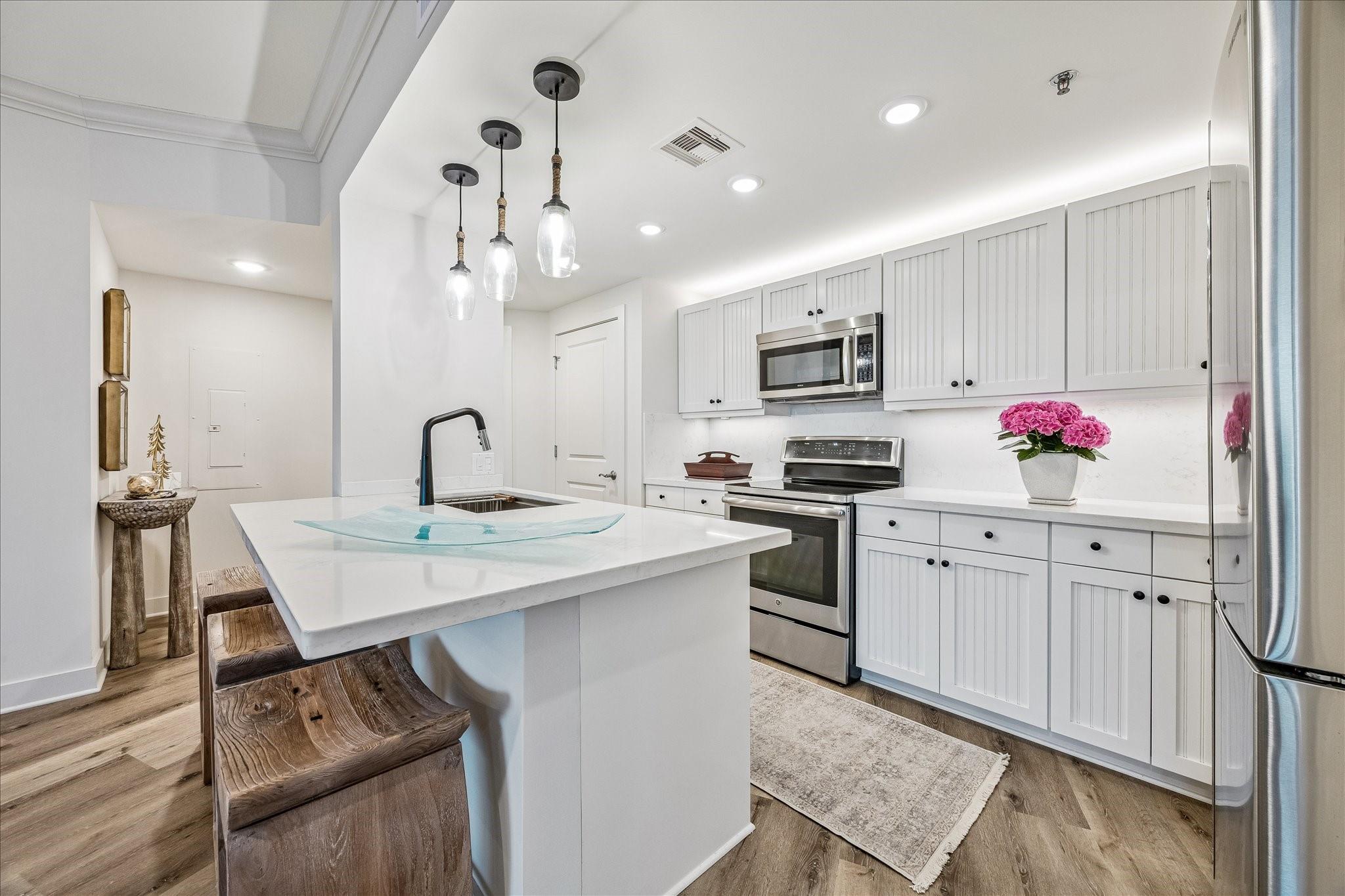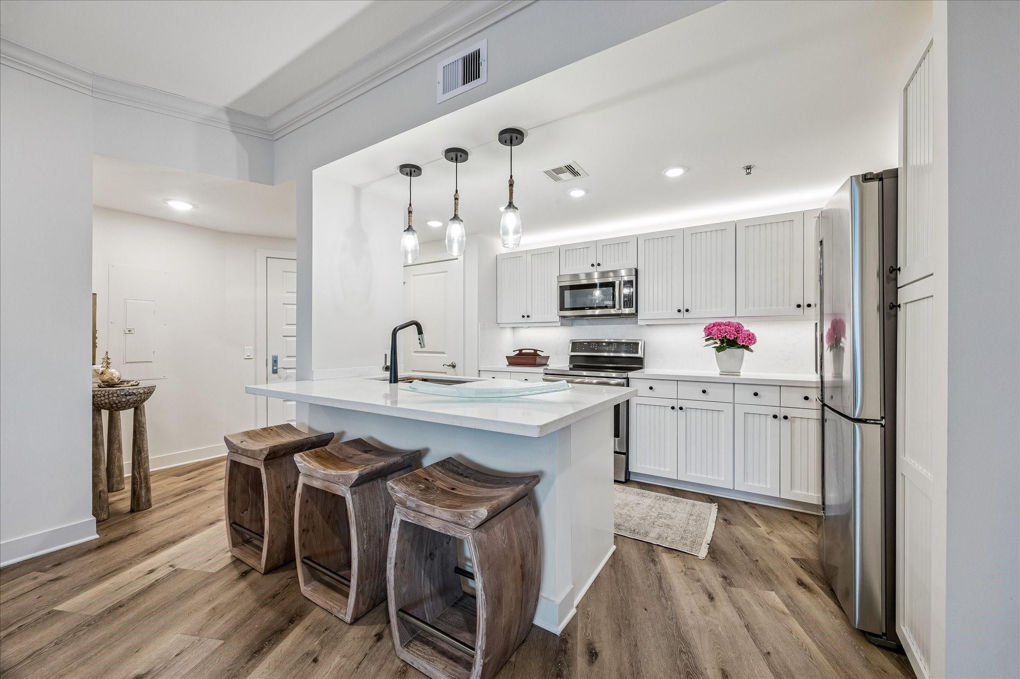 InteriorFloors:Engineered Wood,Laminate,Tile,Vinyl PlankCountertop:GraniteBathroom Description:Half Bath,Primary Bath: Double Sinks,Primary Bath: Separate ShowerBedroom Desc:All Bedrooms Down,Walk-In ClosetKitchen Desc:Breakfast Bar,Kitchen open to Family RoomRoom Description:1 Living Area,Den,Living Area - 1st Floor,Living/Dining ComboHeating:Central ElectricCooling:Central ElectricWasher/Dryer Conn:YesDishwasher:YesDisposal:YesCompactor:NoMicrowave:YesRange:Electric RangeOven:Electric Oven,Single OvenAppliances:Electric Dryer ConnectionEnergy Feature:Ceiling Fans,Digital Program Thermostat,High-Efficiency HVAC,Insulated Doors,Insulated/Low-E windowsInterior:Balcony,Crown Molding,Elevator,Fire/Smoke Alarm,Fully Sprinklered,Pressurized Stairwell,Window Coverings,Wired for Sound