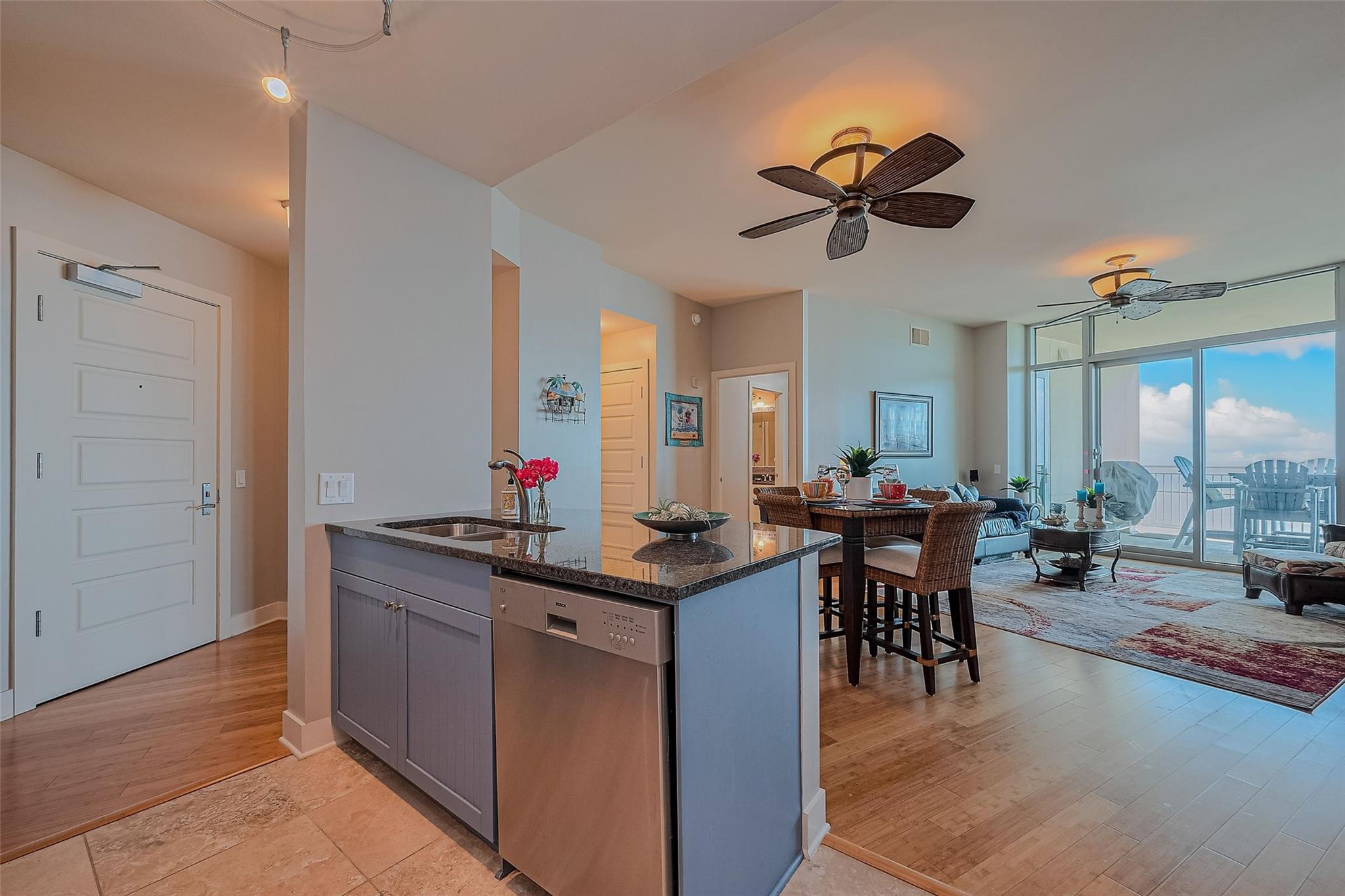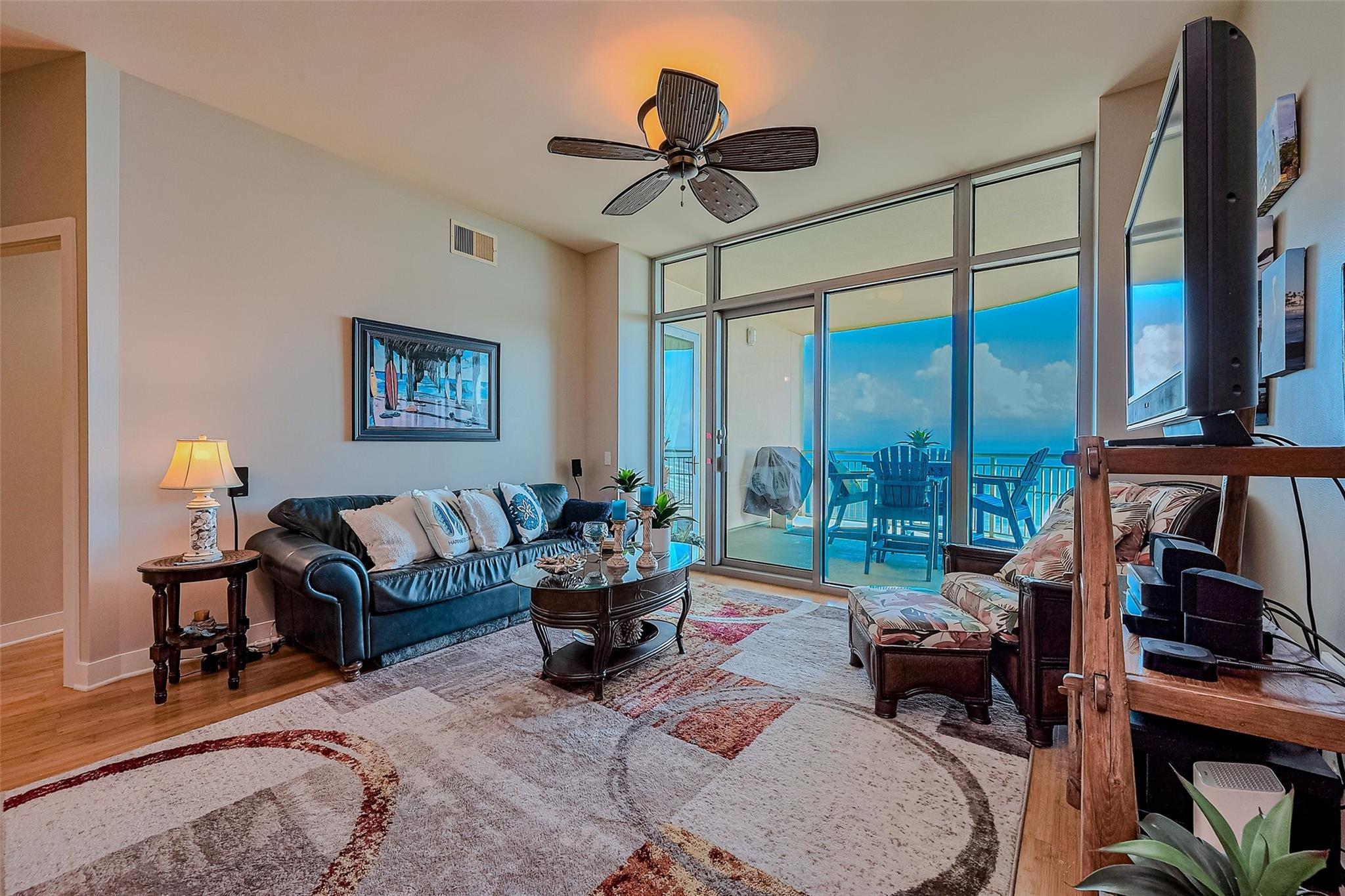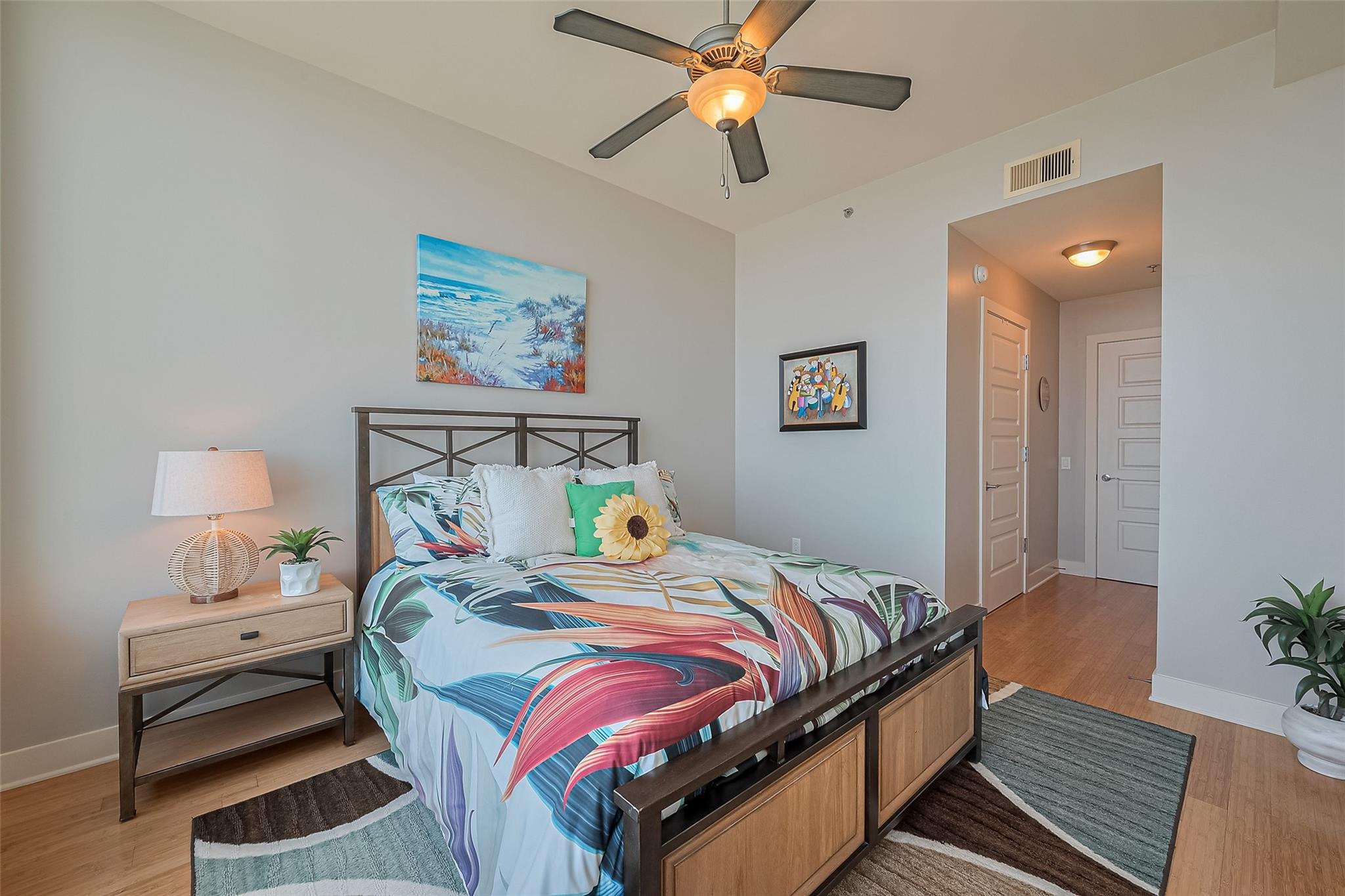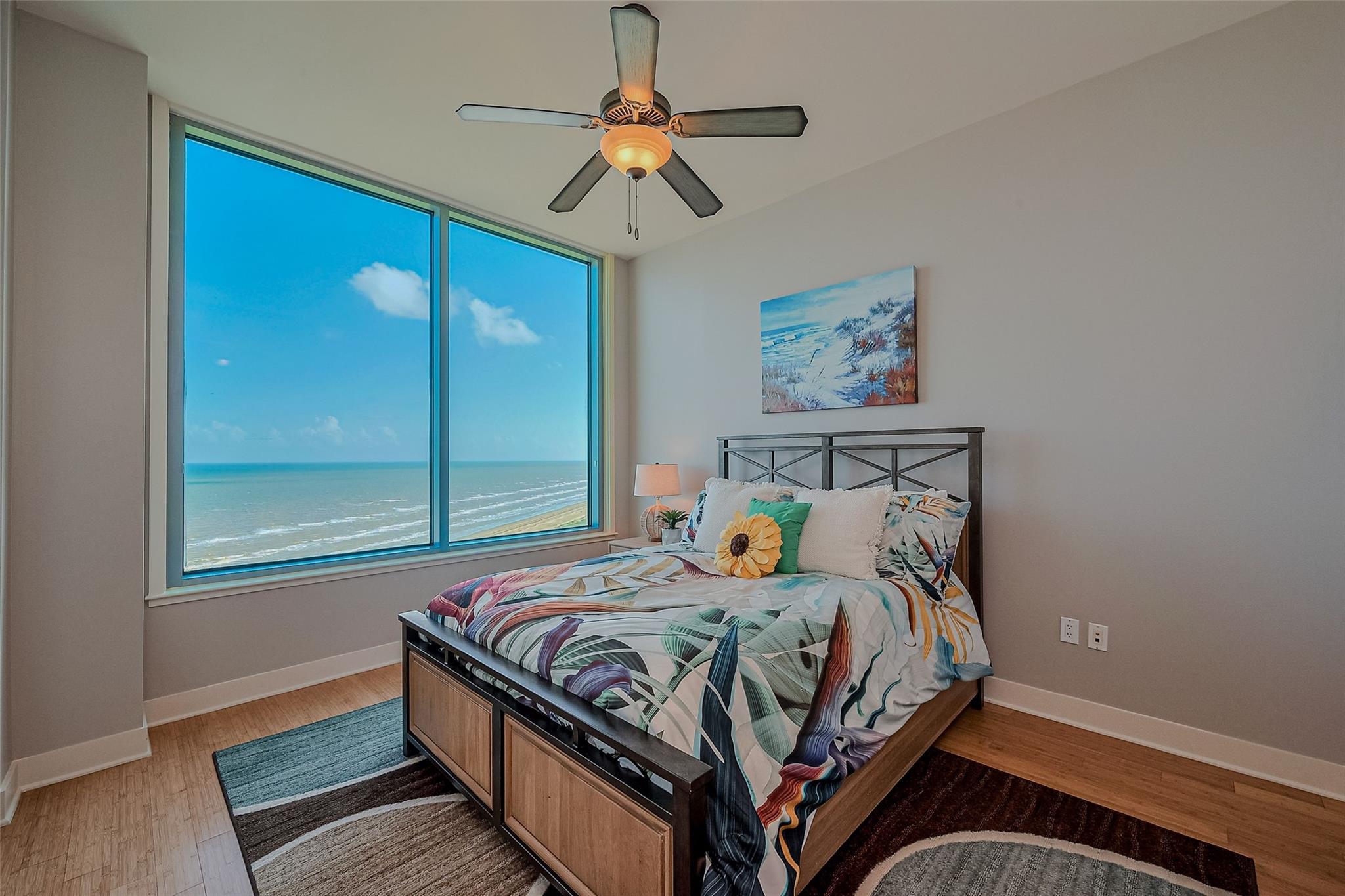 RARE “Outside facing” 21st floor 2-3 bedroom/2.5 bath unit at Palisade Palms. This unit offers UNOBSTRUCTED South and West views of the sand, surf, Pleasure Pier and city lights at night! Large balcony with ample space to enjoy sight and sound of crashing waves, and the stars and moon at night. This rare ‘SIGNATURE’ unit offers 10 ft. ceilings throughout with solid core interior doors, stainless upgraded appliances, custom beadboard cabinetry in kitchen and baths, granite counters and custom backsplash, bamboo flooring and tile throughout and a built-in grill. Resort offers state-of-the-art amenities including infinity pool overlooking beach, fitness center, sauna, pickleball, tennis & basketball courts, game room, separate children's pool, indoor children’s playroom, covered dog park and more. It is located less than 1 hour from Houston. Recent A/C (2023). This unit comes Fully Furnished and move in ready making it a Must See! Unbelievable views !!