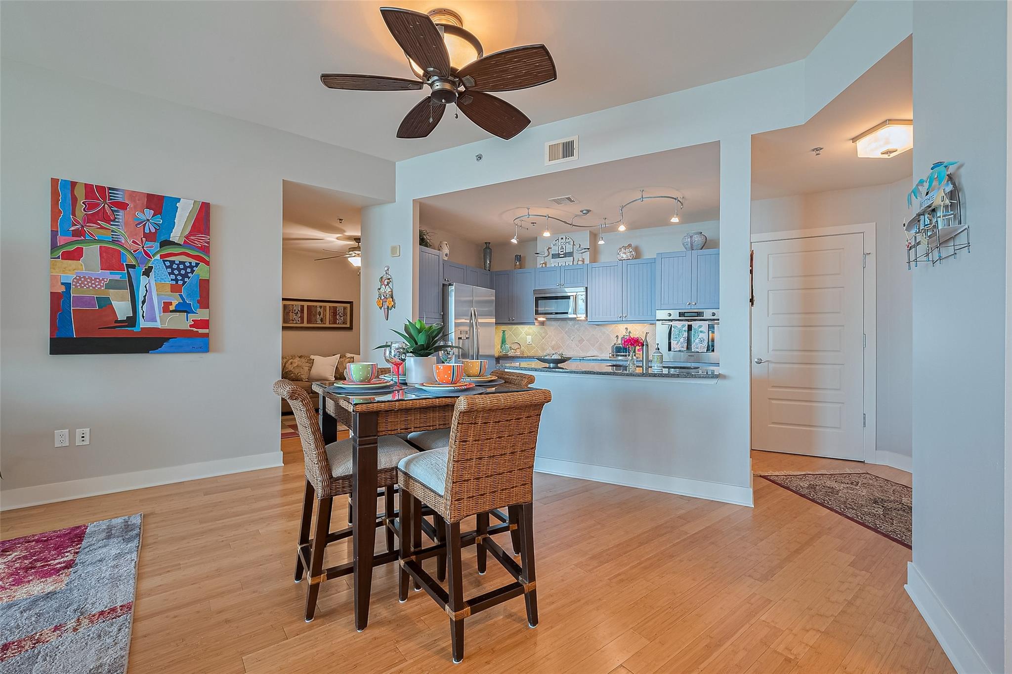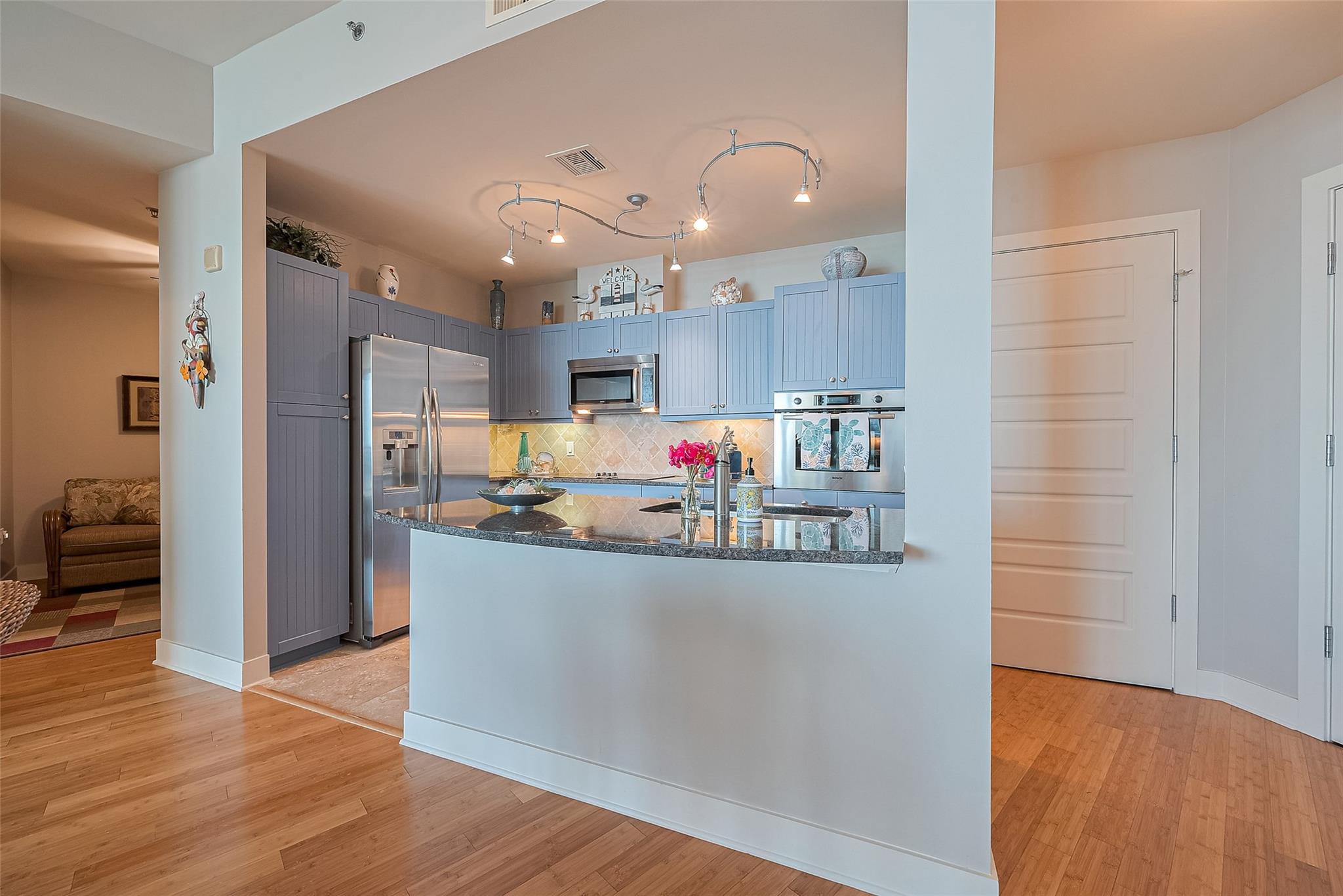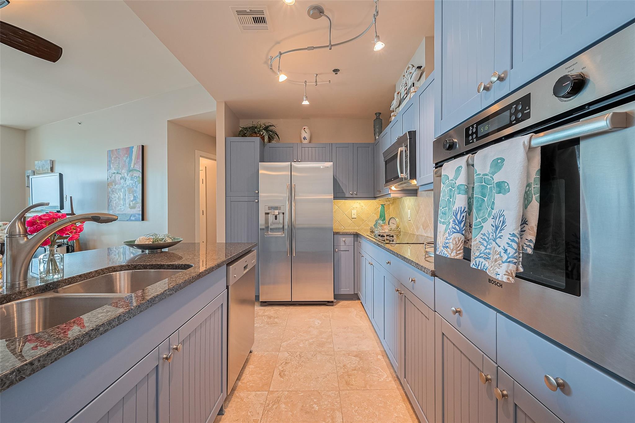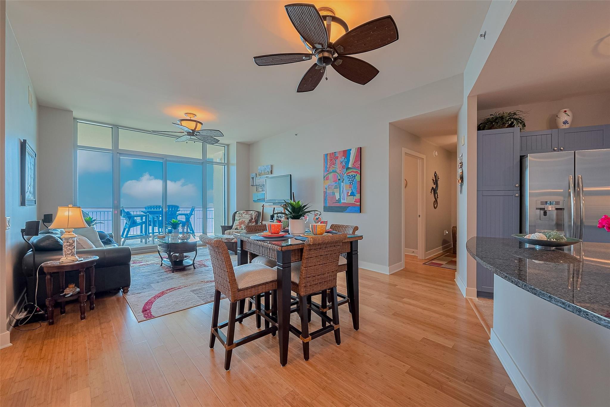 RARE “Outside facing” 21st floor 2-3 bedroom/2.5 bath unit at Palisade Palms. This unit offers UNOBSTRUCTED South and West views of the sand, surf, Pleasure Pier and city lights at night! Large balcony with ample space to enjoy sight and sound of crashing waves, and the stars and moon at night. This rare ‘SIGNATURE’ unit offers 10 ft. ceilings throughout with solid core interior doors, stainless upgraded appliances, custom beadboard cabinetry in kitchen and baths, granite counters and custom backsplash, bamboo flooring and tile throughout and a built-in grill. Resort offers state-of-the-art amenities including infinity pool overlooking beach, fitness center, sauna, pickleball, tennis & basketball courts, game room, separate children's pool, indoor children’s playroom, covered dog park and more. It is located less than 1 hour from Houston. Recent A/C (2023). This unit comes Fully Furnished and move in ready making it a Must See! Unbelievable views !!