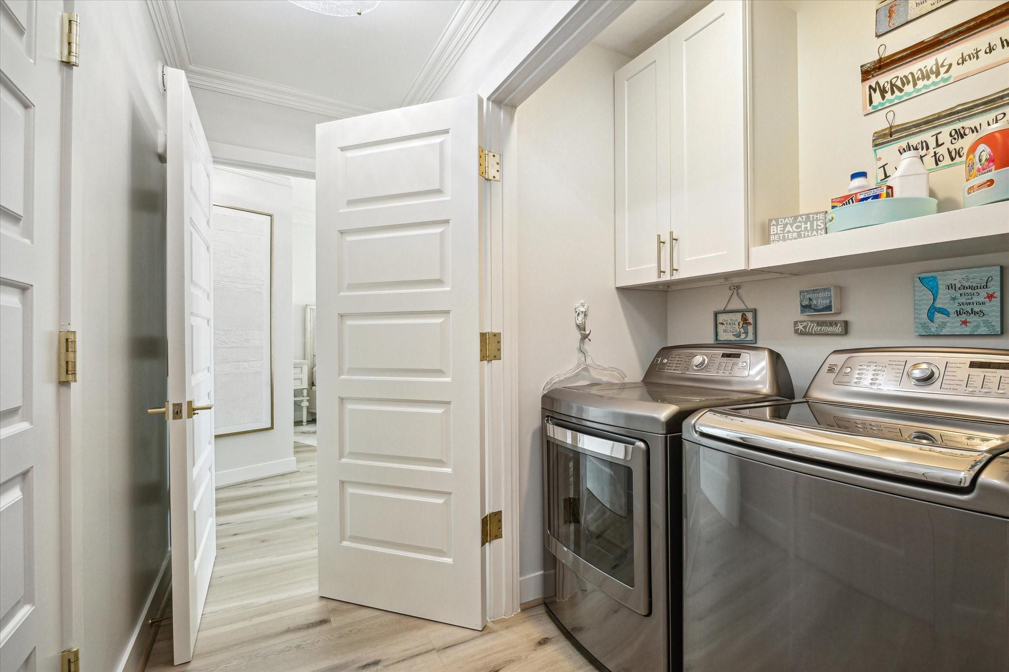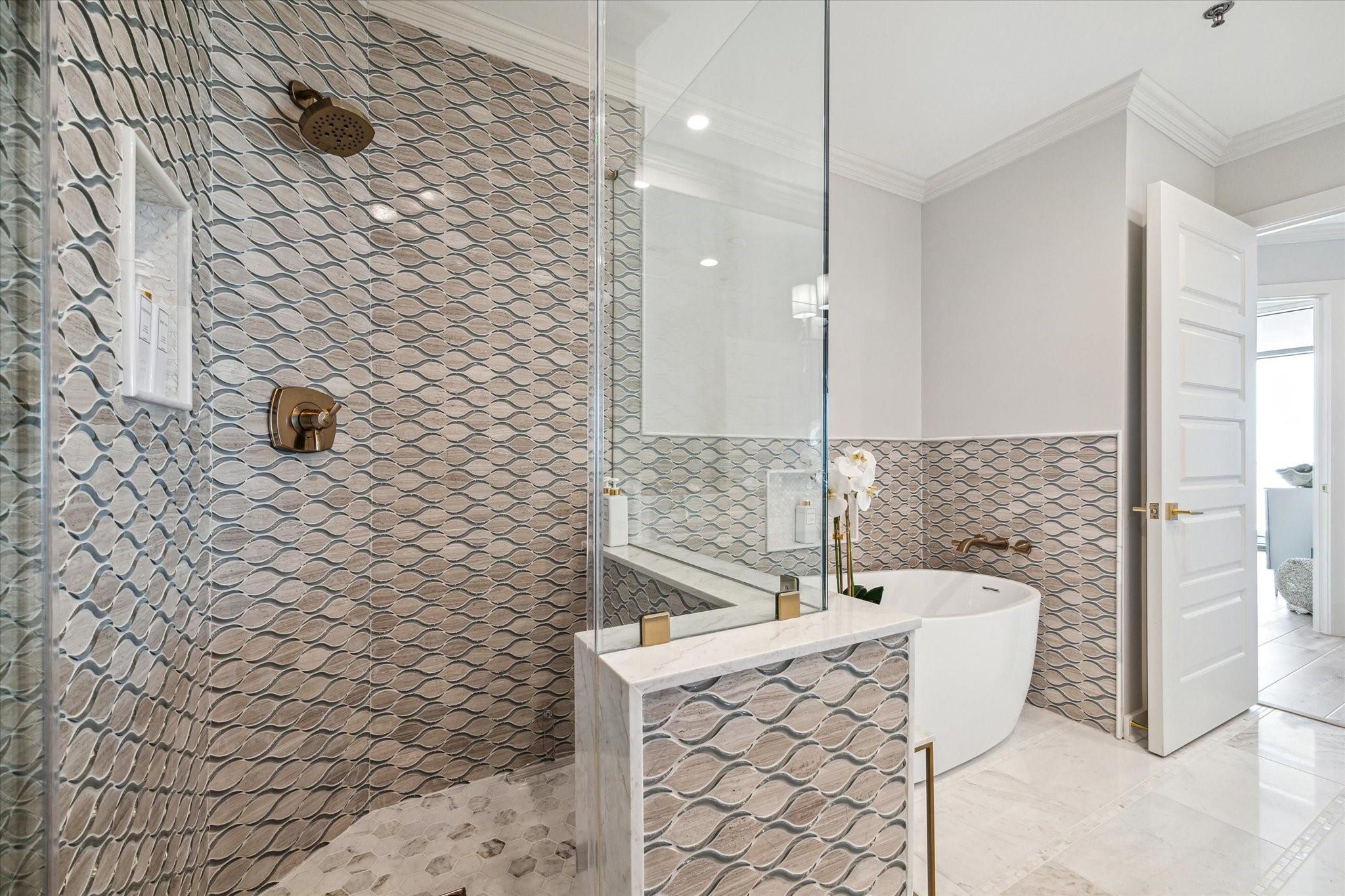 Experience luxury beachfront living from the 23rd floor of this exceptional condo at Palisade Palms. This high-rise residence offers breathtaking panoramic ocean views from a spacious private balcony, showcasing sweeping southern, eastern, and western horizons. Designed with elegance in mind, the home features 10-foot ceilings, rich wood flooring, and a seamless open-concept layout. The modern kitchen flows effortlessly into the expansive living and dining areas, making it perfect for entertaining. This unique floor plan includes two primary suites, multiple living spaces, and four full bathrooms—an extremely rare combination in beachfront properties. High-end finishes such as custom built-ins, designer tile work, stylish lighting, and curated wallpaper add sophistication throughout. With only eight units of this layout available in Palisade Palms, this is a rare opportunity to own a one-of-a-kind luxury beachfront condo.