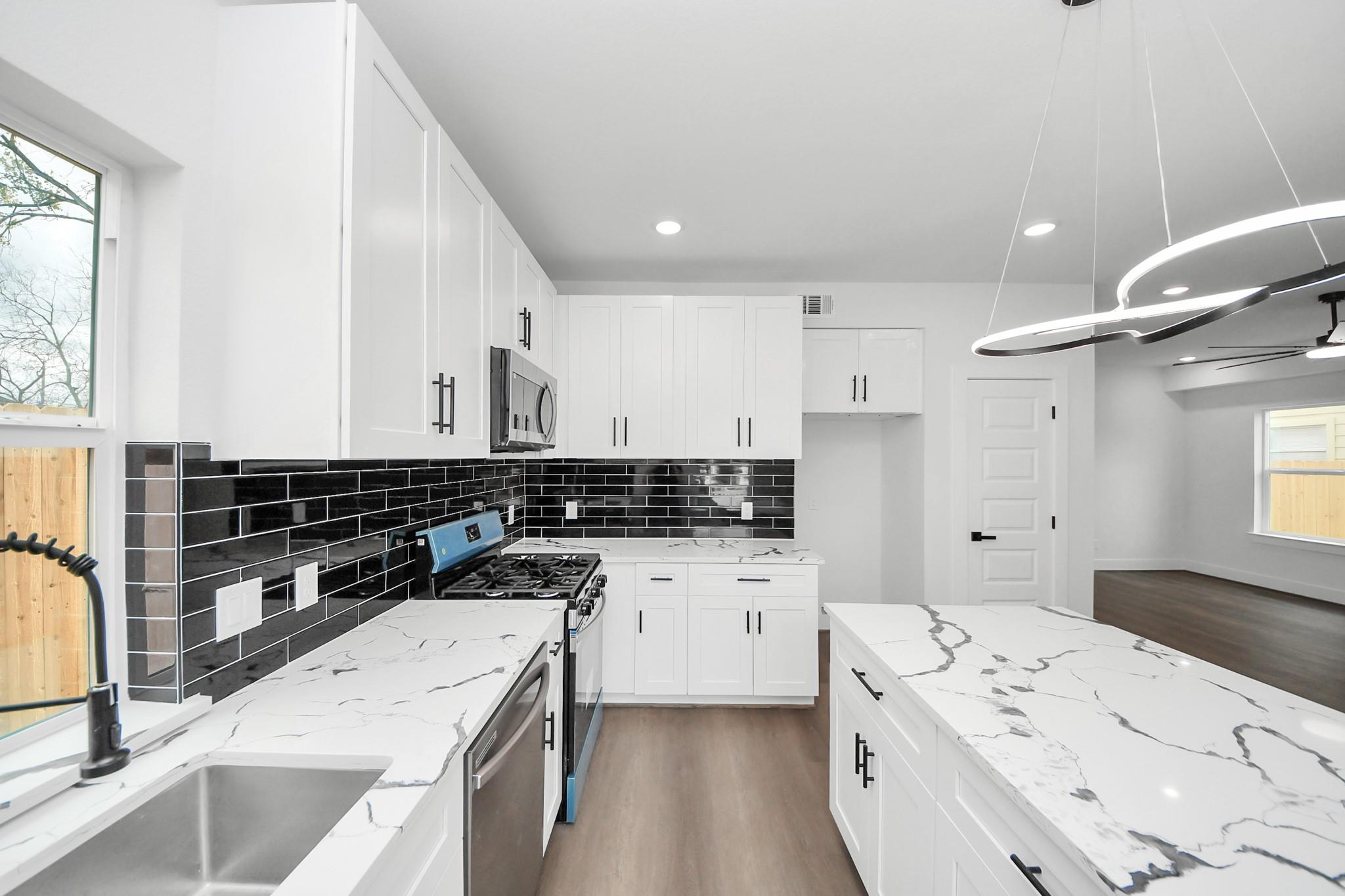 Modern duplex located just 15 minutes from Downtown offering an excellent opportunity for investors or owner-occupants. This property features two units (A & B), each with open-concept layouts, wood-look flooring, recessed lighting, and abundant natural light throughout. The kitchens are designed with white cabinetry, contrasting dark countertops, large islands, and modern fixtures, creating a clean and functional space ideal for daily living or rental appeal. Bedrooms are generously sized with ceiling fans and ample closet space. Bathrooms showcase contemporary vanities and stylish tilework. Enjoy a fully fenced backyard providing privacy and flexibility for tenants or personal use. With modern finishes, thoughtful design, and close proximity to Downtown, this move-in-ready duplex is ideal for house hacking, long-term rental income, or multi-generational living. Schedule your showing today!