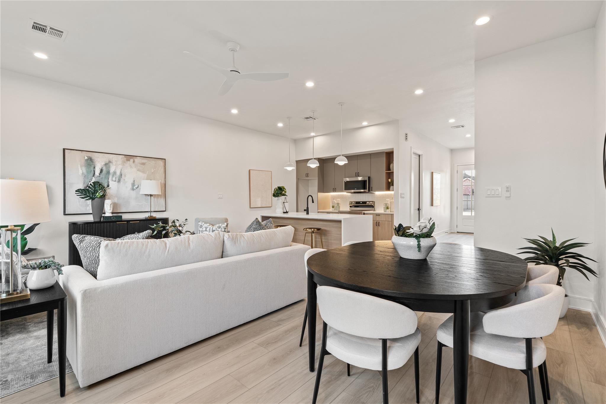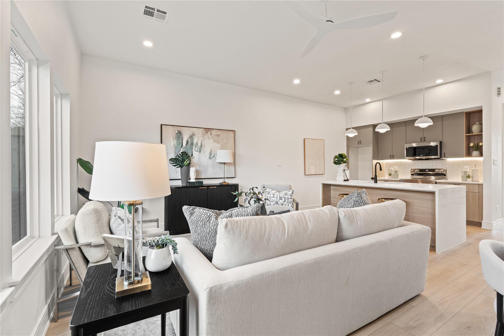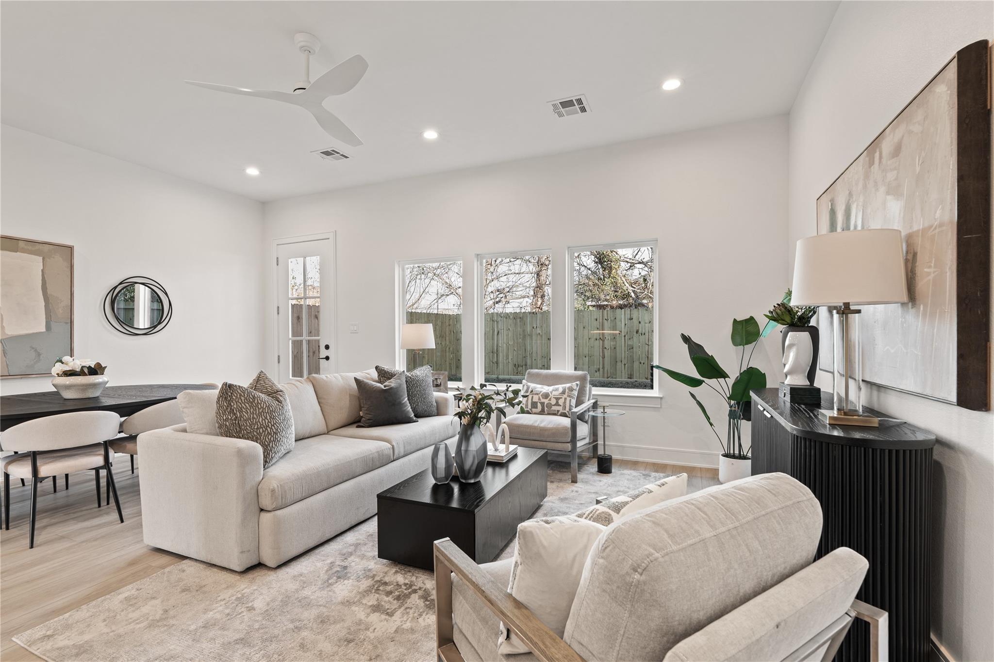 Introducing a stunning new Scandinavian-inspired duplex by Brick and Stone, offering a design aesthetic never before seen in the South Union area. Each unit features 3 bedrooms and 2.5 baths, with open-concept first-floor living that seamlessly connects the kitchen, dining, and living spaces—ideal for modern living and entertaining. Sleek kitchens showcase soft-close European-style cabinetry, under-cabinet lighting, quartz countertops, and oversized waterfall islands with seating. Upstairs, spacious bedrooms provide comfort and privacy, while high-end finishes and LVP flooring flow throughout both residences. Enjoy a huge backyard, perfect for gatherings, plus ample on-site parking. Located minutes from the Texas Medical Center, Museum District, Downtown Houston, NRG Stadium, and major freeways, this property is ideal for investors or owner-occupants. No HOA restrictions, strong rental potential, and timeless design make this blending style, function, and income potential.
