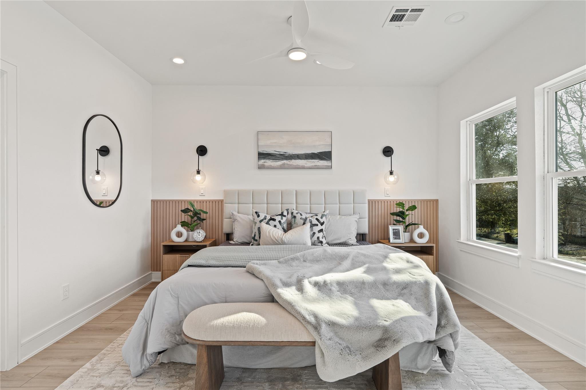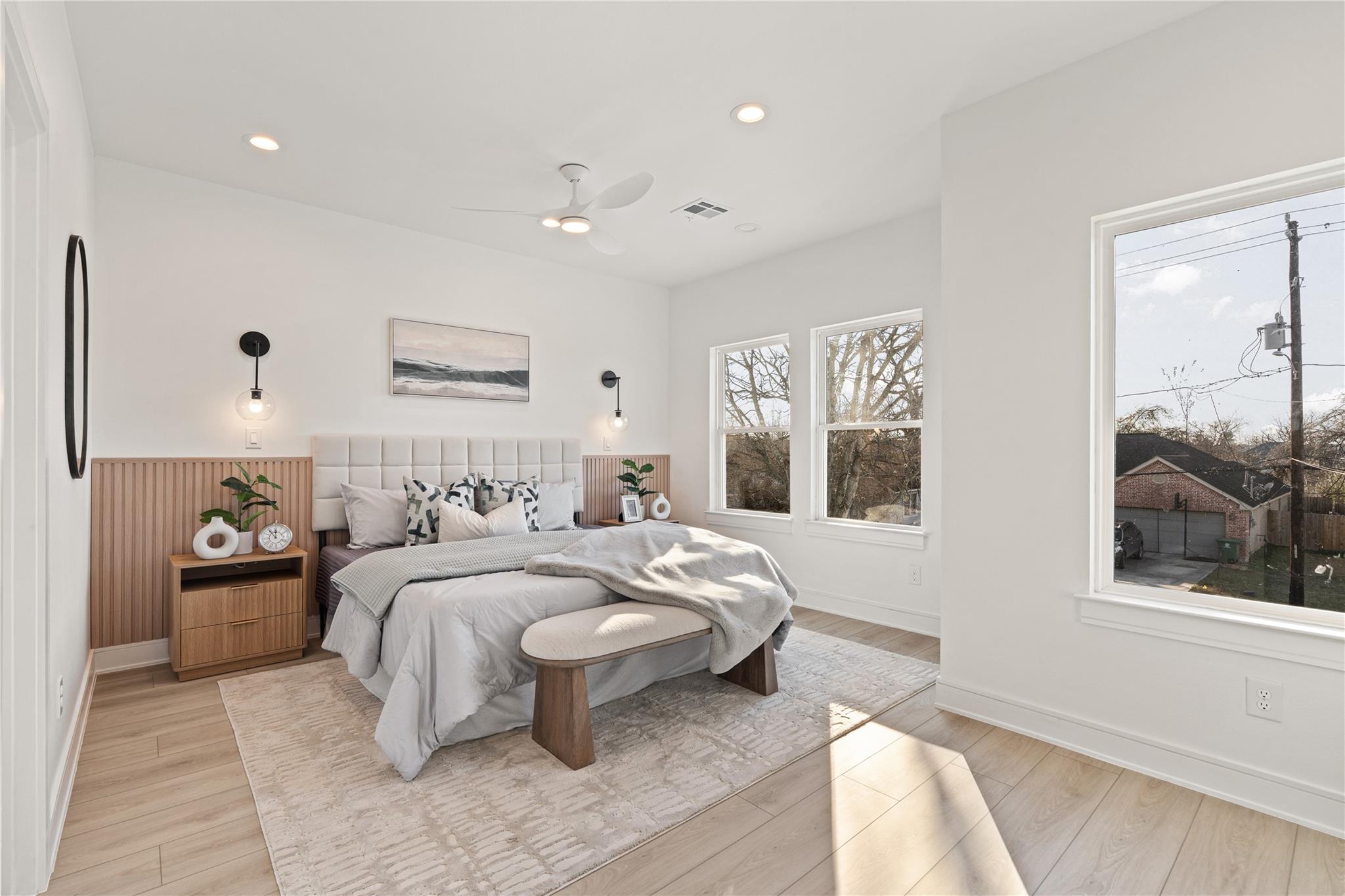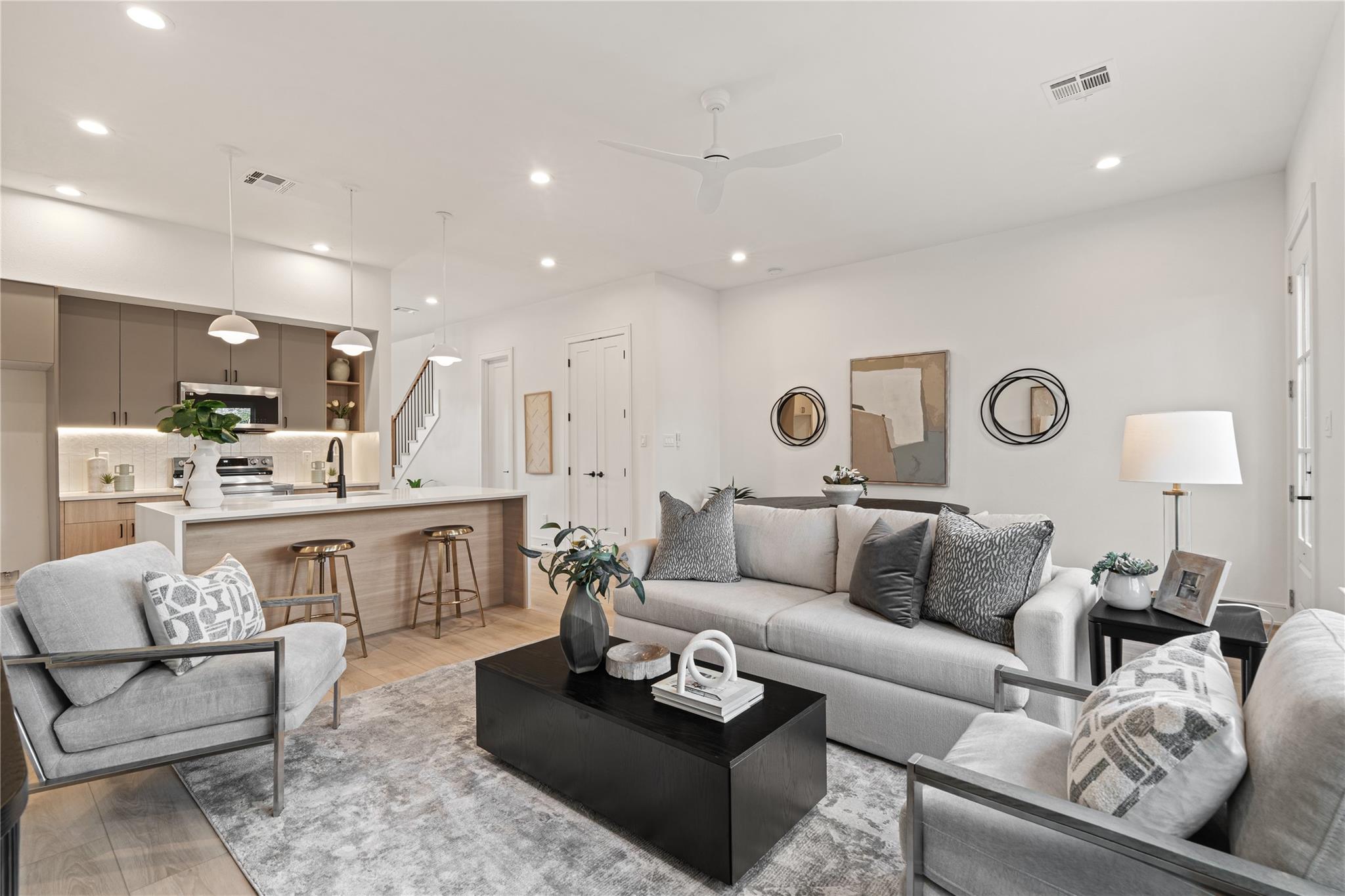 Introducing a stunning new Scandinavian-inspired duplex by Brick and Stone, offering a design aesthetic never before seen in the South Union area. Each unit features 3 bedrooms and 2.5 baths, with open-concept first-floor living that seamlessly connects the kitchen, dining, and living spaces—ideal for modern living and entertaining. Sleek kitchens showcase soft-close European-style cabinetry, under-cabinet lighting, quartz countertops, and oversized waterfall islands with seating. Upstairs, spacious bedrooms provide comfort and privacy, while high-end finishes and LVP flooring flow throughout both residences. Enjoy a huge backyard, perfect for gatherings, plus ample on-site parking. Located minutes from the Texas Medical Center, Museum District, Downtown Houston, NRG Stadium, and major freeways, this property is ideal for investors or owner-occupants. No HOA restrictions, strong rental potential, and timeless design make this blending style, function, and income potential.