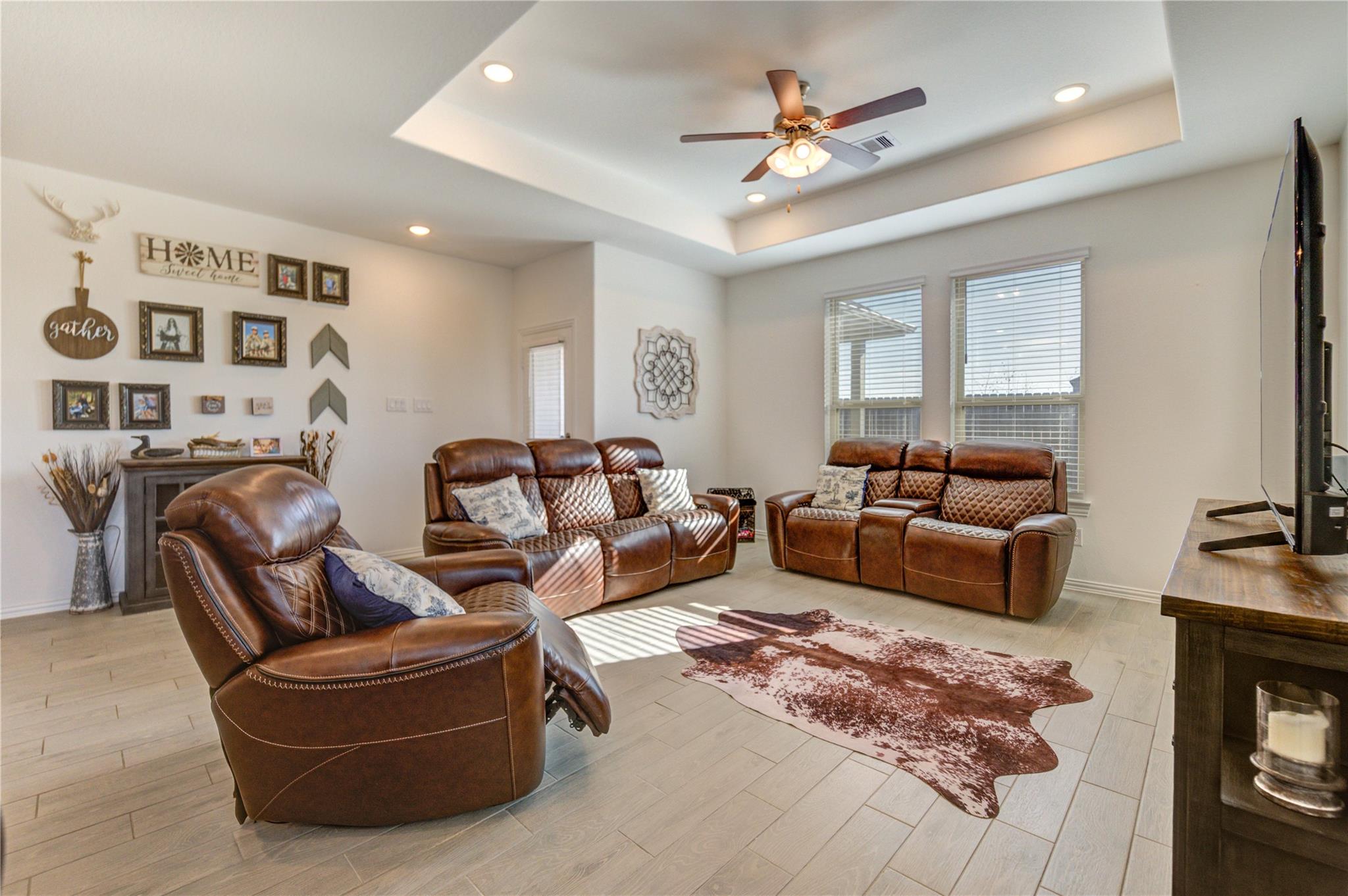 Welcome to 8023 Royal Palm Drive, a beautifully maintained 4-bedroom, 3-bath home offering 2,106 square feet of thoughtfully designed living space. Set back from the road, this home provides added privacy and curb appeal. Inside, you’ll find stunning gray wood-look tile throughout the main living areas, creating a modern and cohesive feel. The split floor plan includes a desirable secondary bedroom with its own ensuite bathroom, ideal for guests or multigenerational living. The spacious kitchen and living areas flow seamlessly to an extended covered patio, perfect for relaxing or entertaining year-round. Additional features include a 2.5-car garage for extra storage or workspace, a whole-home water softener, and a backyard shed for added convenience. With generous living space, functional upgrades, and a private setting, this home is move-in ready and a must-see.