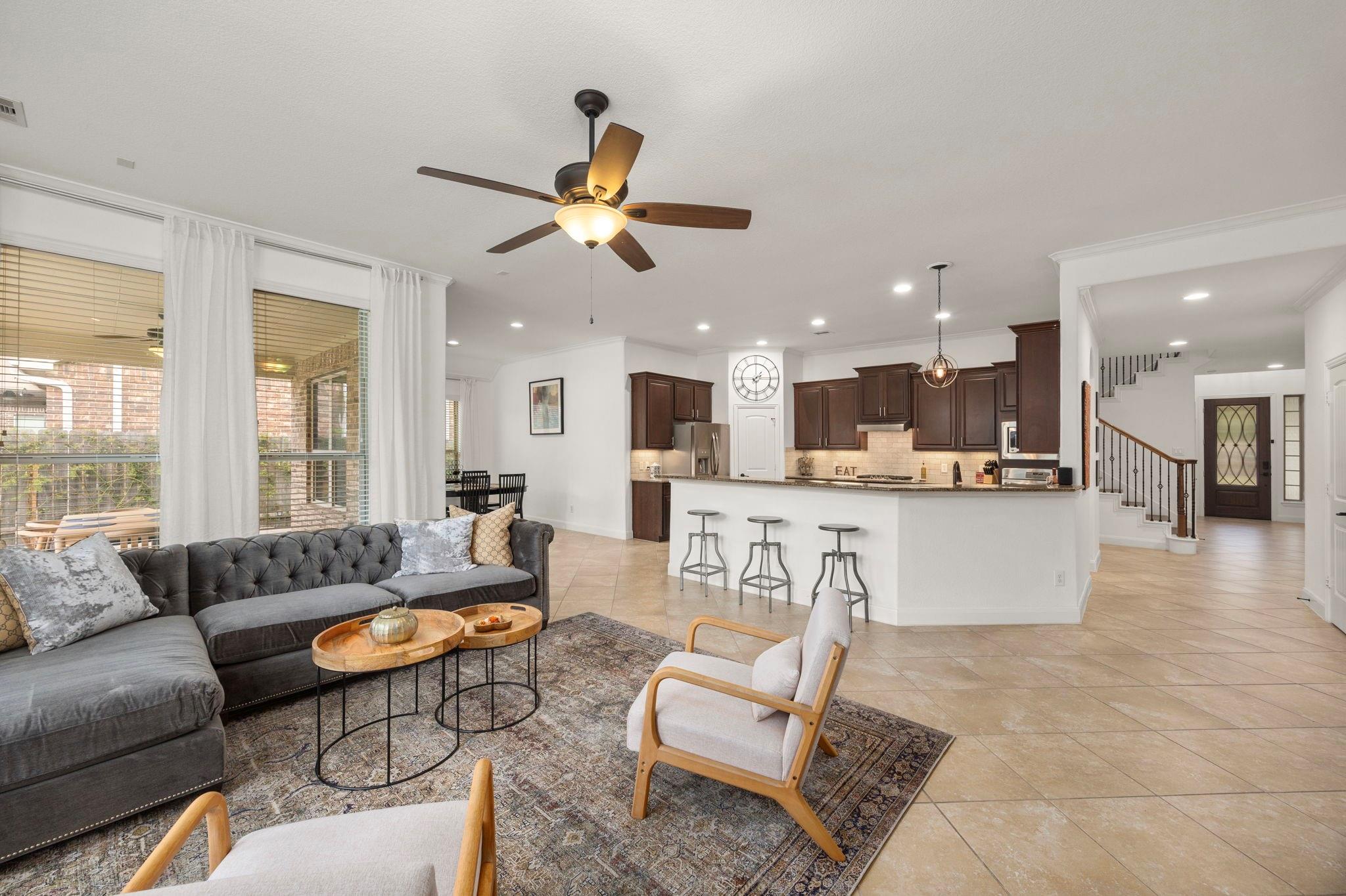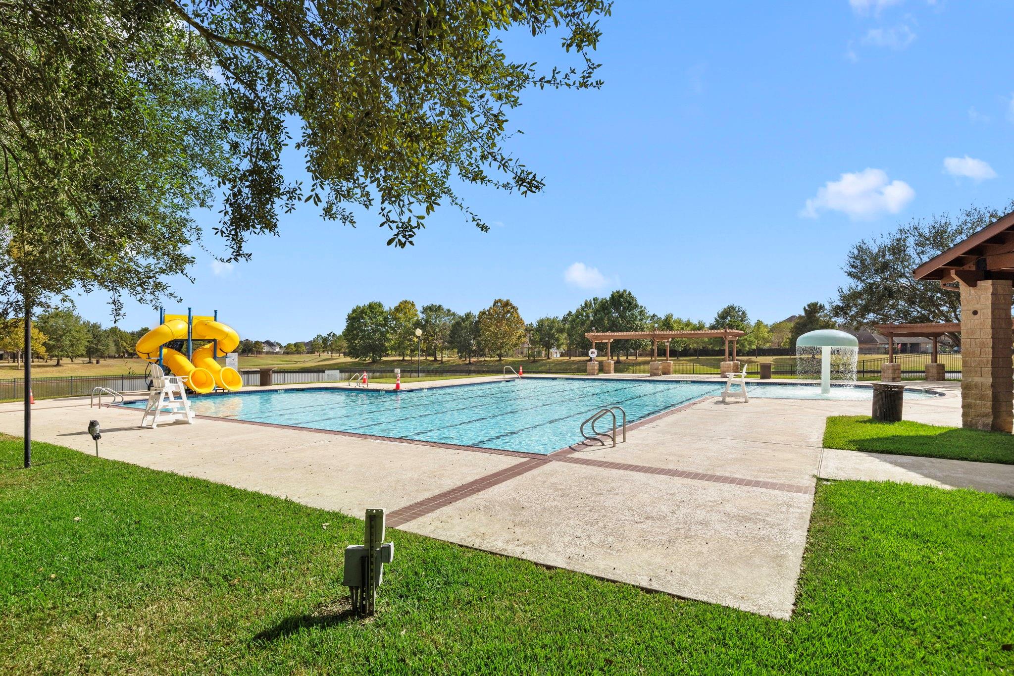 Open house SUN 12-4! This Lakemont Lake Bend 4-5 bedroom + study, and a stunning pool/hot tub/fire pit..truly a summer ready backyard oasis! TWO bedrooms downstairs! The spacious and light filled 1st floor allows for easy entertaining and family time, with generous windows looking onto the backyard w/Endless Pool and heated for year round enjoyment. The 2nd floor offers 2 bedrooms + a full bathroom, and a massive game room or flex space. Bring your pool table or make this a home theatre (or both)! Mature landscaping. Neighborhood amenities: parks, clubhouse, basketball, pickleball, and tennis courts. Free weekly workout classes making it a vibrant hub for health and community. Numerous shopping, restaurants and entertainment options nearby - ask for the full list! Zoned to highly acclaimed LC-ISD schools. Outside of the high risk flood zone. Welcome home!