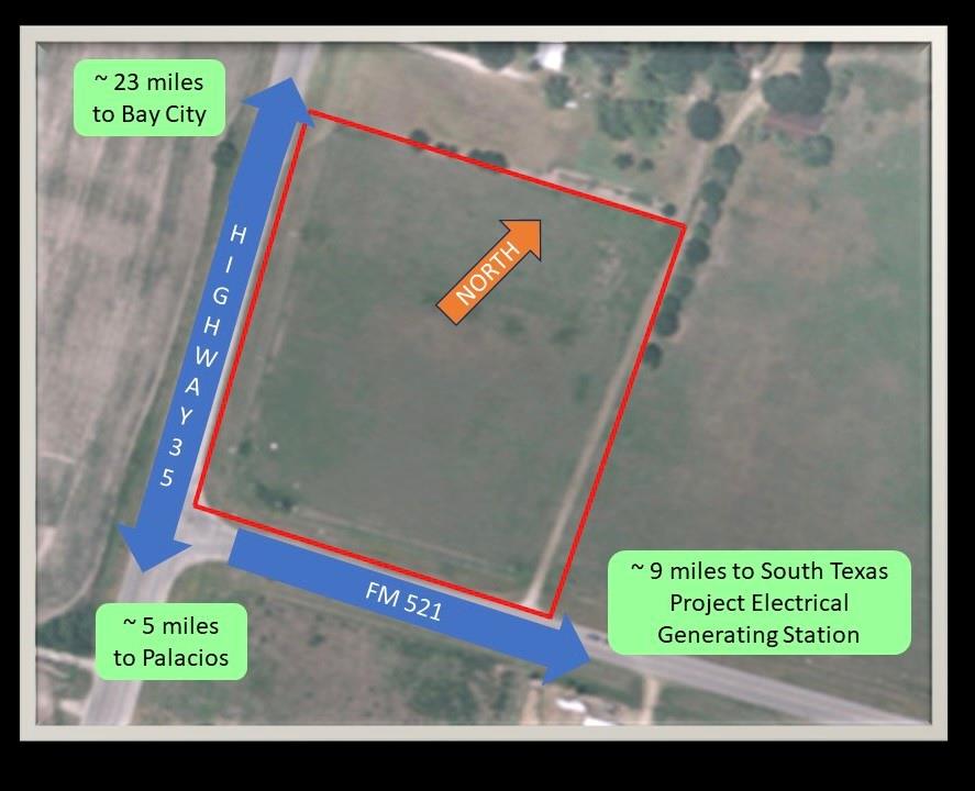 Approximately 4.66 acres of open land located at the corner of State Highway 35 and FM 521 about 5 miles North of Palacios. The corner location of the property on 2 major thoroughfares lends itself to being suitable for commercial or private use. Check out this rare find in Matagorda County near world-class saltwater fishing grounds!