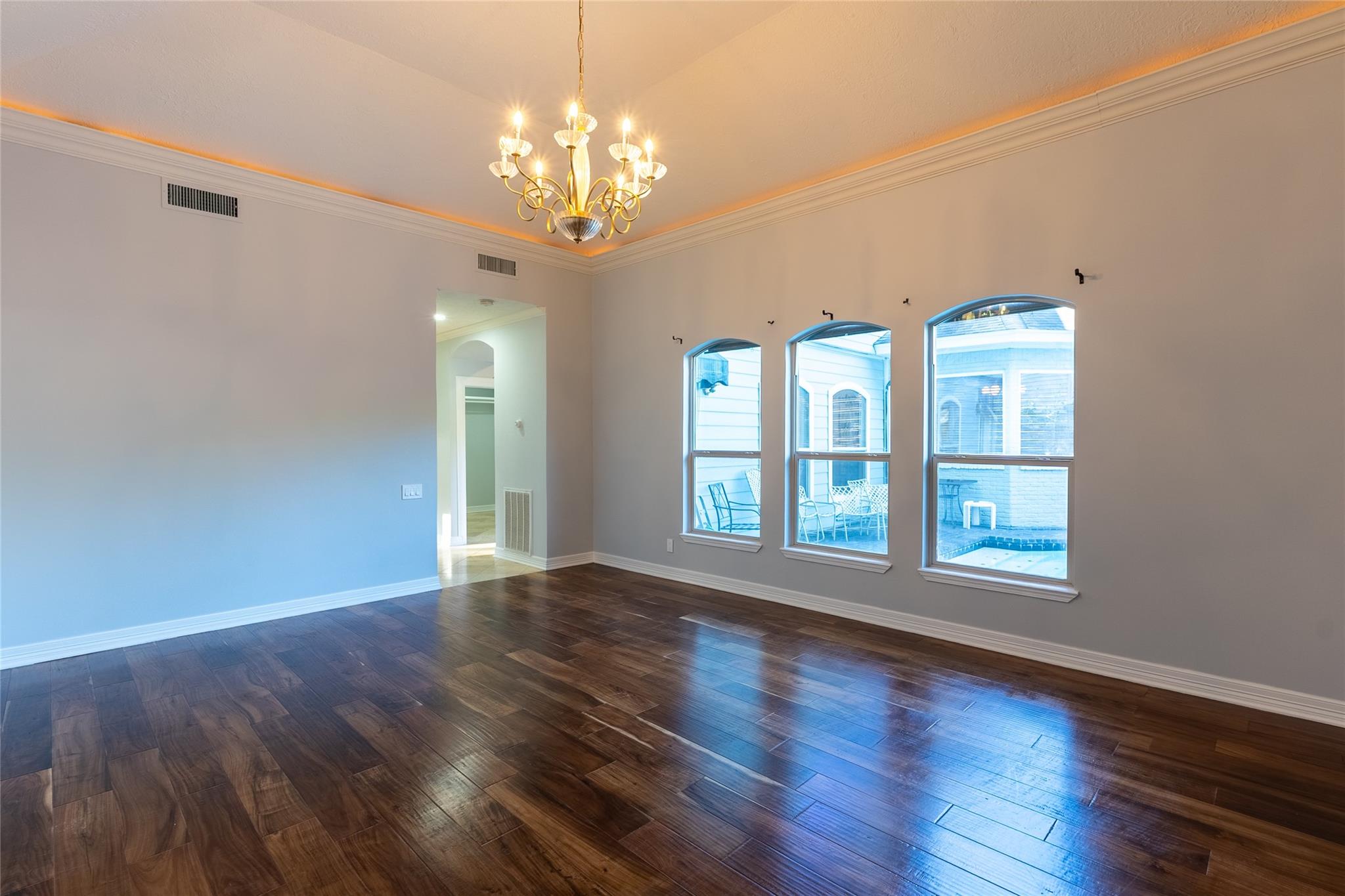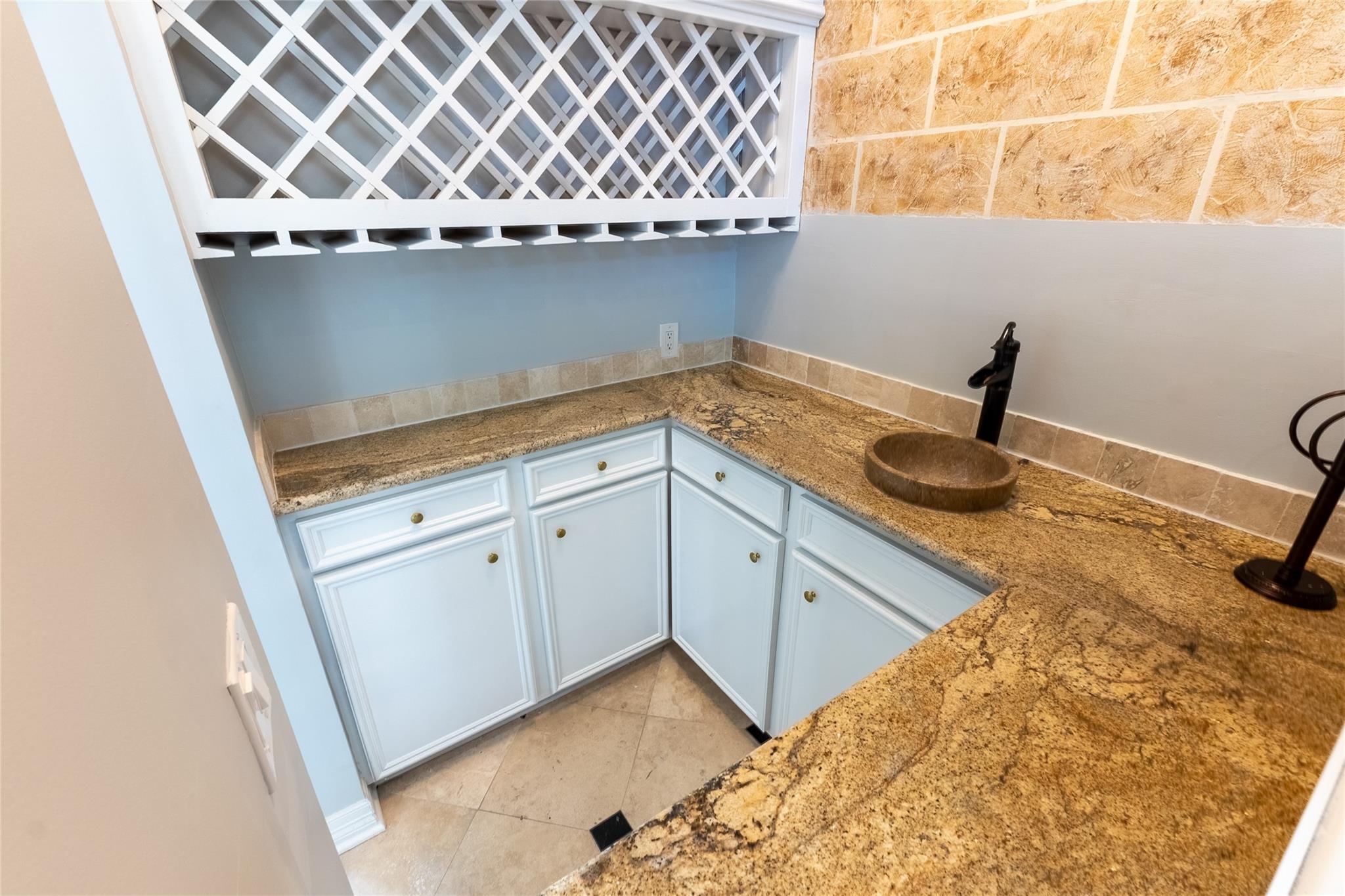 /monthContemporary/modern style exterior and interior with new paint, new windows, new downstairs A/C, recent foundation leveling, and remodeled kitchen. The primary suite overlooks the backyard lap pool, and has crystal chandelier and elegant cove lighting. The primary bath is stunning with massive shower featuring mosaic wall, raised bowls on granite vanity, and huge custom closet. The wine grotto off the formal living room allows for great bottle and glassware storage. Custom faux painted feature wall is the perfect place to display art collections, and the curved inlay banister with custom rails leads to the upstairs game room and 3 large bedrooms and 2 full baths. You really need to see the detail to fully appreciate the custom touches in this home. Drone footage available upon emailed request. This is a unique showcase home ! Pool and yard care included in monthly rent.