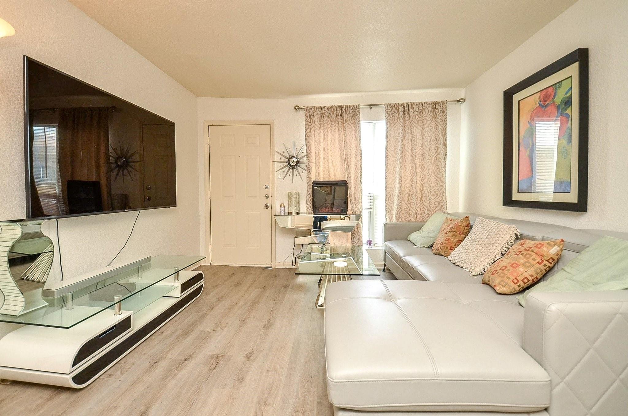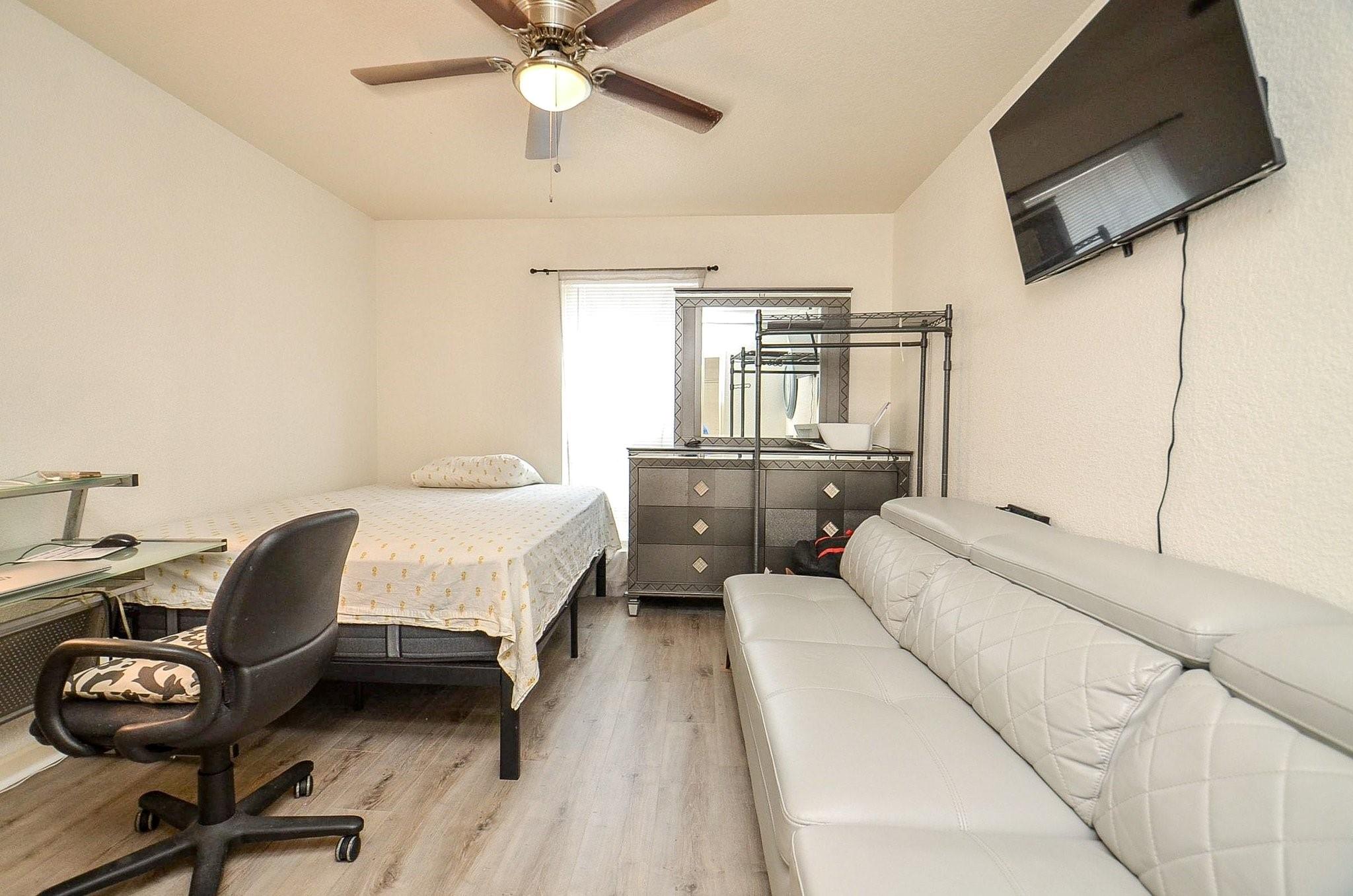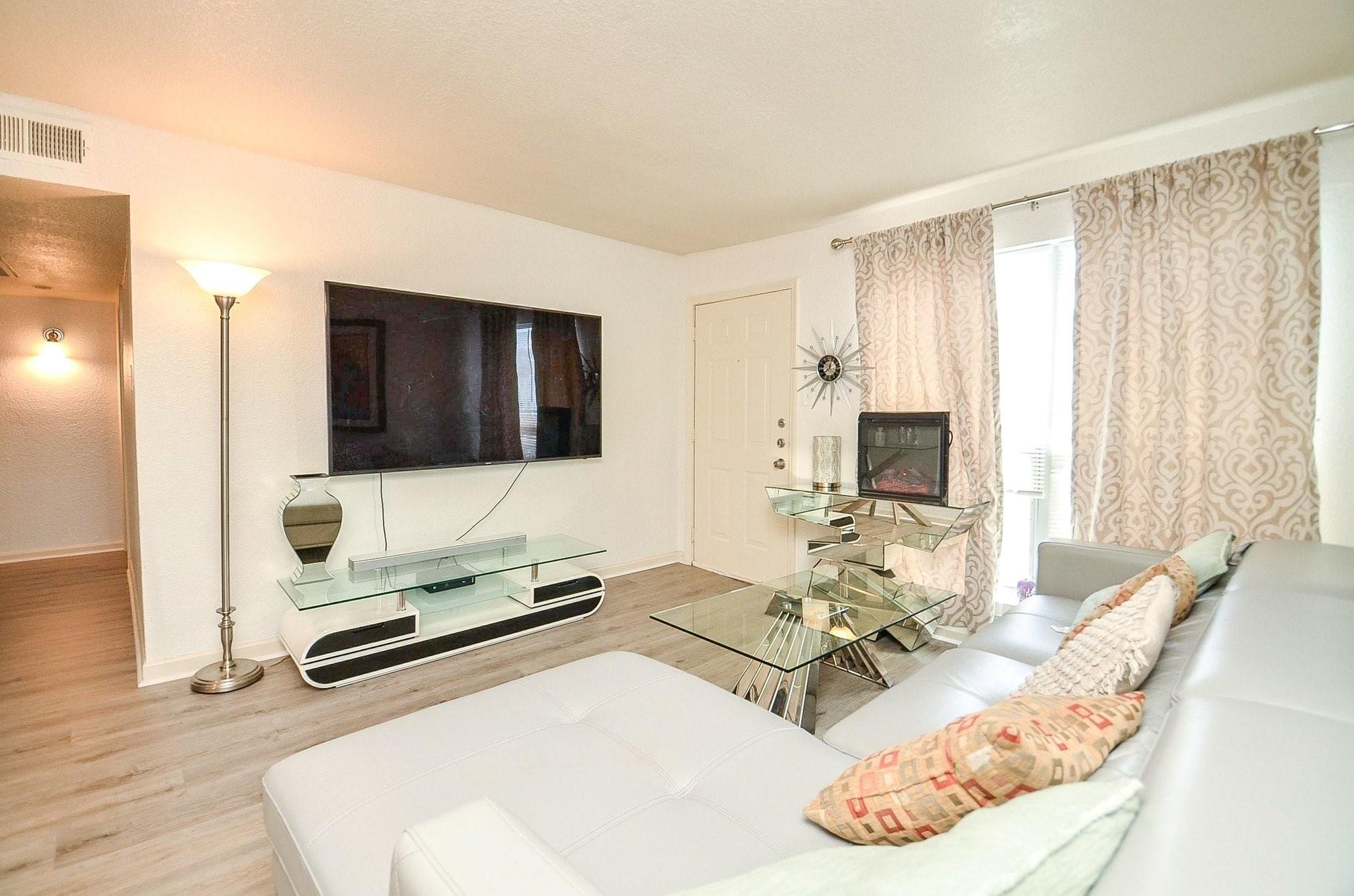Don't miss out on this incredible opportunity in a secure gated community! This three-bedroom, two-bathroom property boasts upgraded flooring throughout, brand new Washer and Electric Range, as well as other appliances like Refrigerator, Microwave, and Dishwasher. The primary bedroom features a spacious walk-in closet and en-suite bathroom. Natural light floods the other bedrooms and dining room, creating a warm and inviting atmosphere. Conveniently located near the Sam Houston Tollway and popular shopping destinations, including the Houston Galleria.