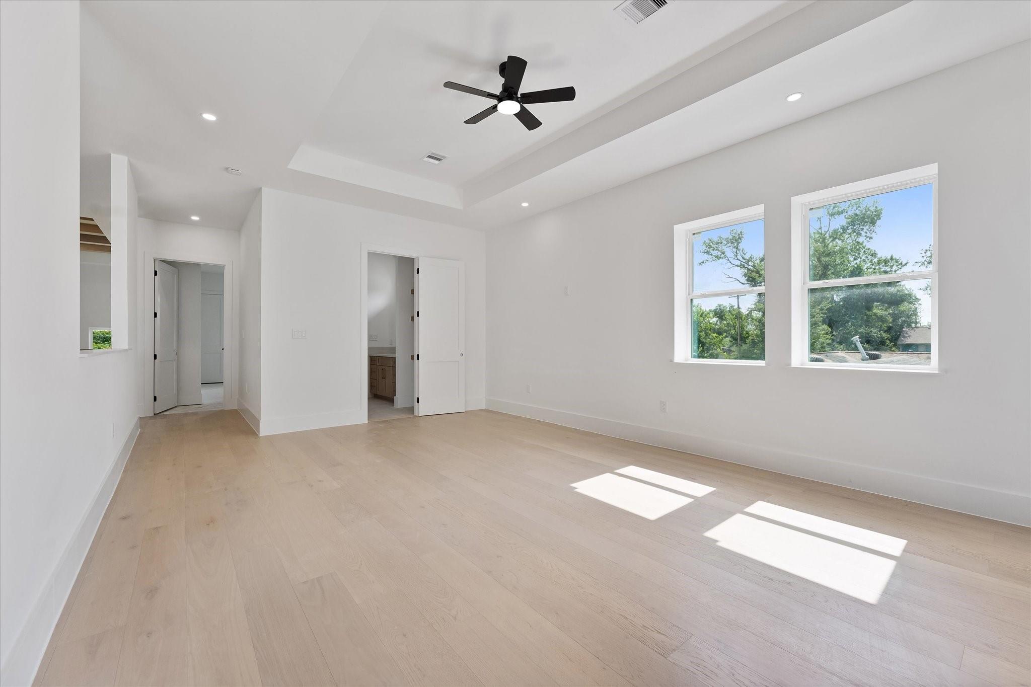 Experience this unique and sophisticated new build in Spring Branch. This stunning four-bedroom home boasts a versatile layout, a chef's kitchen with top-of-the-line appliances, a spacious dining room overlooking the backyard, and a captivating living room with high ceilings and abundant natural light. The primary suite is conveniently located on the ground floor, while the second floor offers a game room, three spacious bedrooms with walk-in closets, and ensuite bathrooms. This thoughtfully designed home includes ample space for a pool. Don't miss out on the opportunity to own a piece of this rapidly developing area!