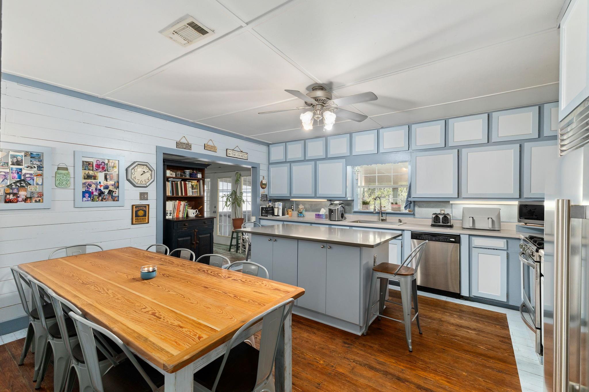 InteriorFloors:WoodBathroom Description:Disabled Access,Full Secondary Bathroom Down,Primary Bath: Jetted Tub,Primary Bath: Separate Shower,Secondary Bath(s): Separate Shower,Secondary Bath(s): Soaking Tub,Two Primary BathsBedroom Desc:All Bedrooms DownRoom Description:Den,Family Room,Guest Suite w/Kitchen,Quarters/Guest House,Sun RoomHeating:Central ElectricCooling:Central ElectricConnections:Electric Dryer Connections,Washer ConnectionsDishwasher:YesRange:Gas RangeOven:Gas OvenInterior:Refrigerator Included