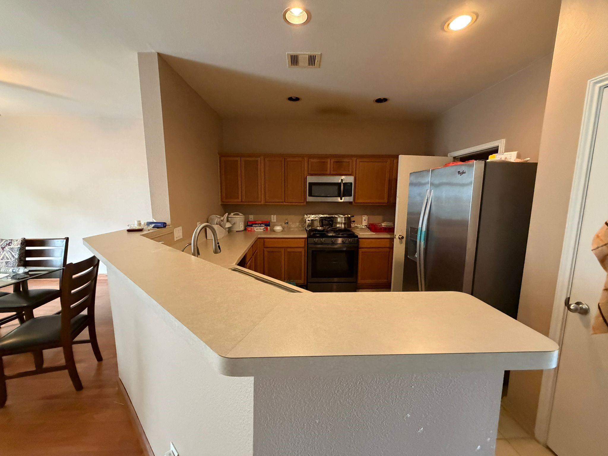 InteriorFloors:Carpet,Tile,WoodBathroom Description:Primary Bath: Double Sinks,Primary Bath: Separate Shower,Primary Bath: Soaking TubBedroom Desc:All Bedrooms DownKitchen Desc:Breakfast BarRoom Description:Kitchen/Dining Combo,Living/Dining ComboHeating:Central GasCooling:Central ElectricDishwasher:YesDisposal:YesCompactor:NoMicrowave:YesRange:Gas RangeOven:Gas OvenEnergy Feature:Ceiling FansInterior:Fire/Smoke Alarm,High Ceiling,Refrigerator Included