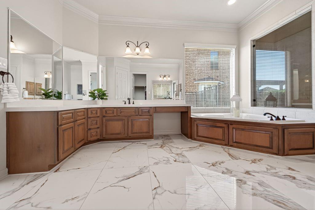 InteriorFireplace:1/Gas ConnectionsCountertop:QuartzBathroom Description:Half Bath,Primary Bath: Double Sinks,Primary Bath: Separate ShowerBedroom Desc:2 Bedrooms Down,3 Bedrooms Up,En-Suite Bath,Primary Bed - 1st Floor,Walk-In ClosetKitchen Desc:Island w/o Cooktop,Kitchen open to Family Room,Pantry,Walk-in PantryRoom Description:Breakfast Room,Family Room,Formal Dining,Formal Living,Home Office/Study,Living Area - 1st Floor,Living Area - 2nd Floor,Media,Utility Room in HouseHeating:Central GasCooling:Central ElectricDishwasher:YesDisposal:YesCompactor:NoMicrowave:YesRange:Gas RangeOven:Double Oven,Gas OvenIce Maker:NoEnergy Feature:Attic Vents,Ceiling Fans,Digital Program Thermostat,High-Efficiency HVAC,Insulation - Blown FiberglassInterior:2 Staircases,Alarm System - Owned,Balcony,Crown Molding,Fire/Smoke Alarm,Formal Entry/Foyer,High Ceiling,Vaulted Ceiling