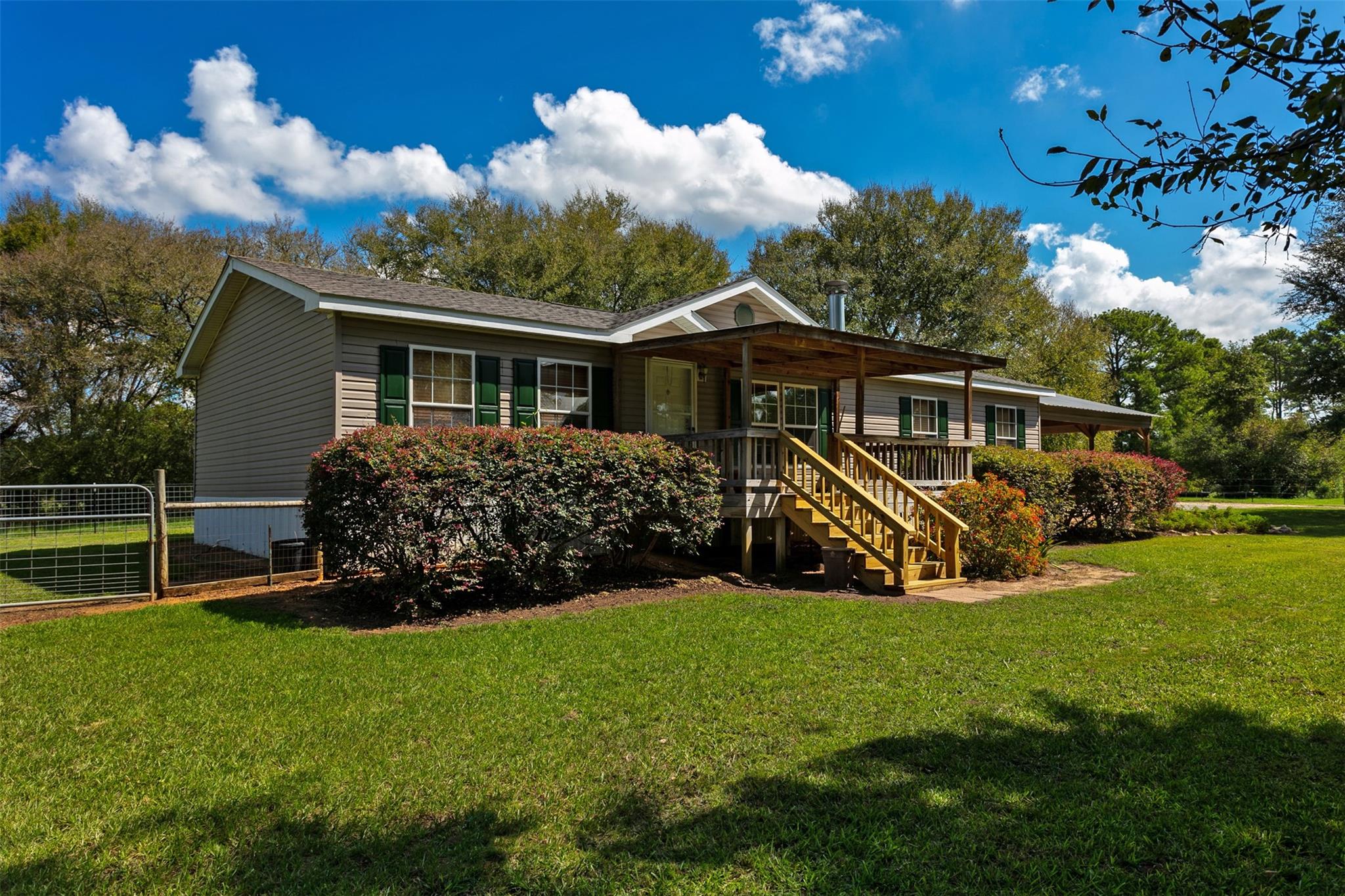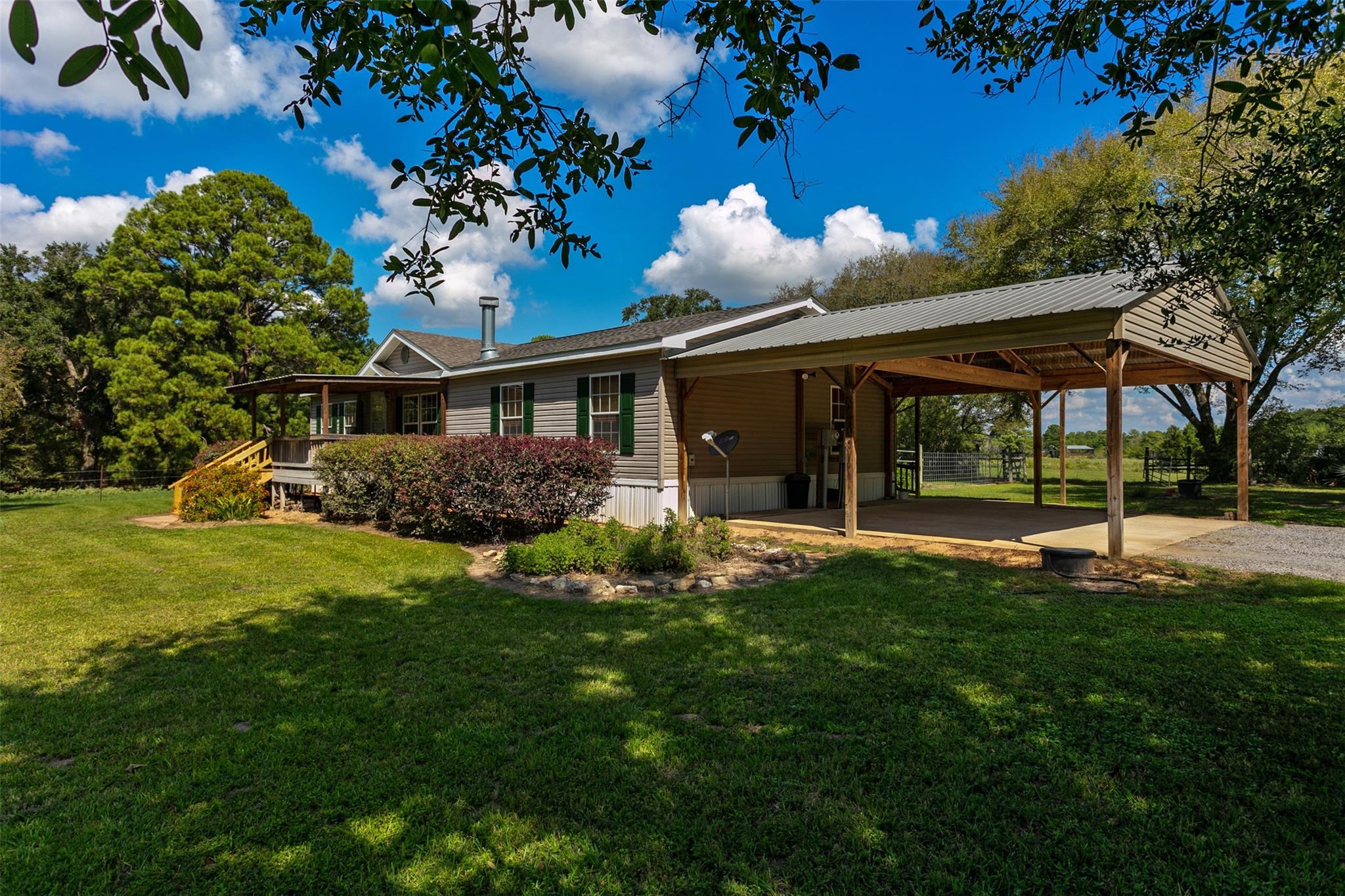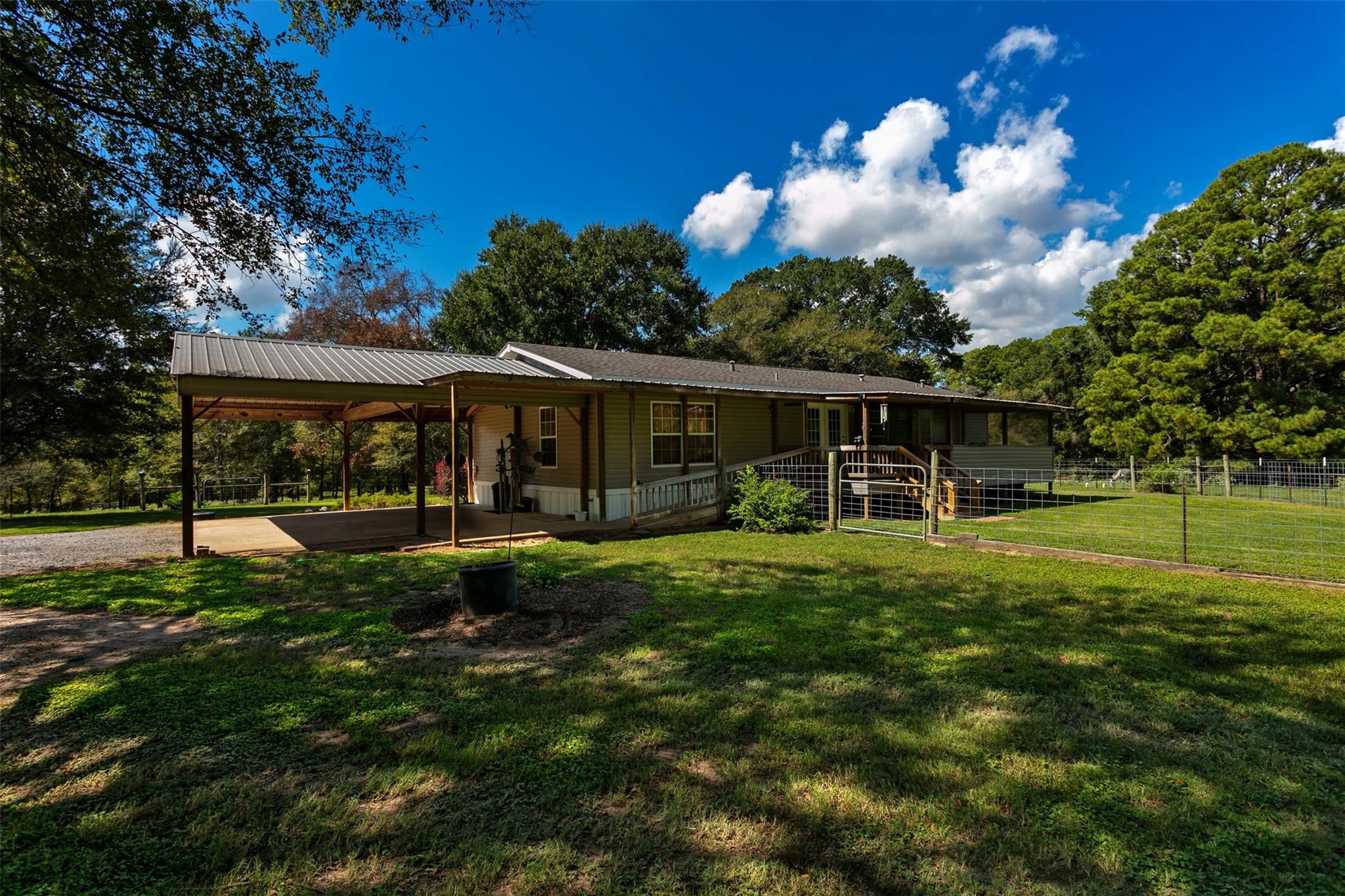 ExteriorPrivate Pool:NoLot Description:ClearedCarport Description:Attached CarportWater Sewer:Public Water,Septic Tank,WellCable:AvailableFront Door Face:South,SouthwestArea Pool:NoExterior:Back Yard,Back Yard Fenced,Cross Fenced