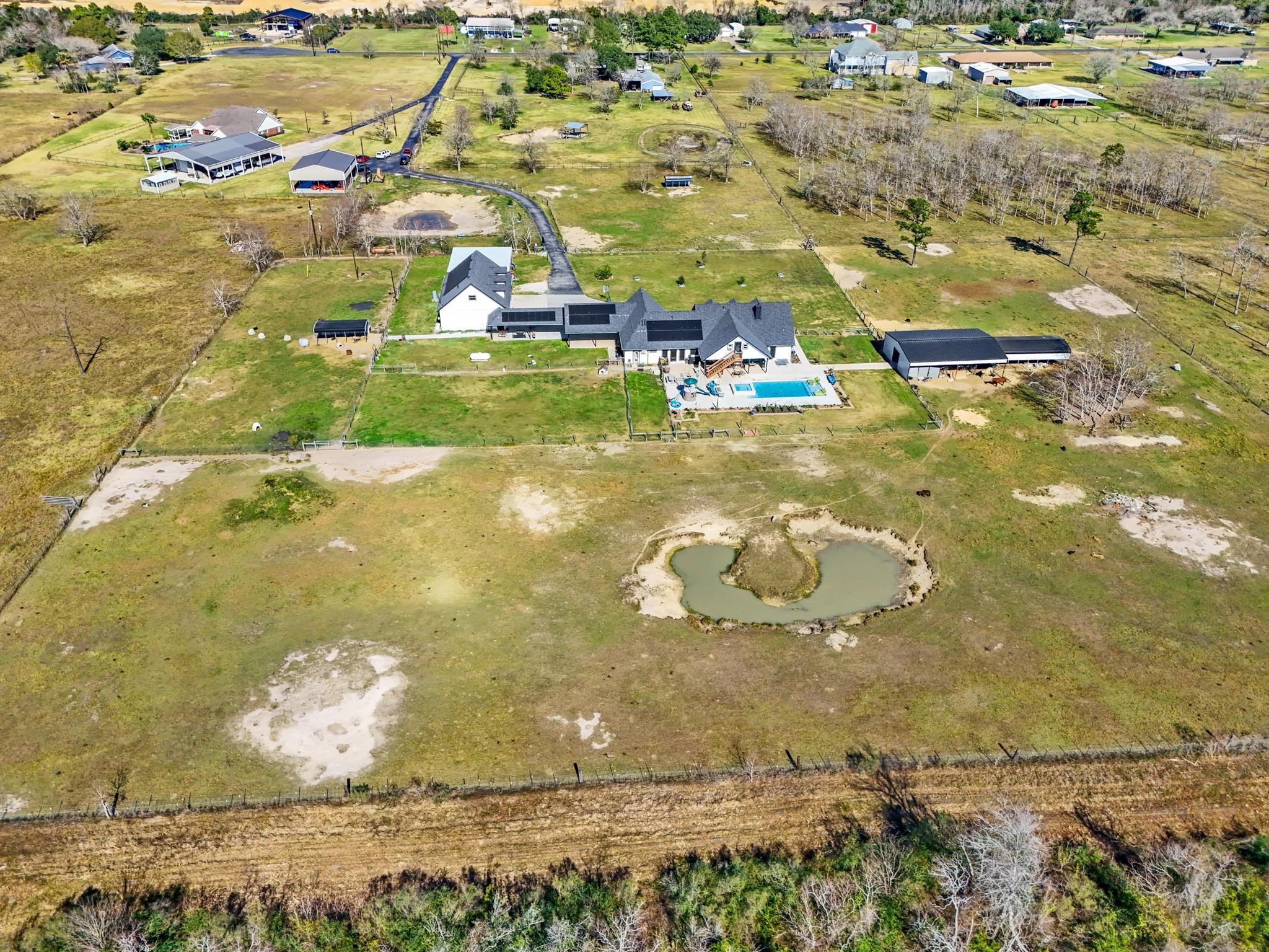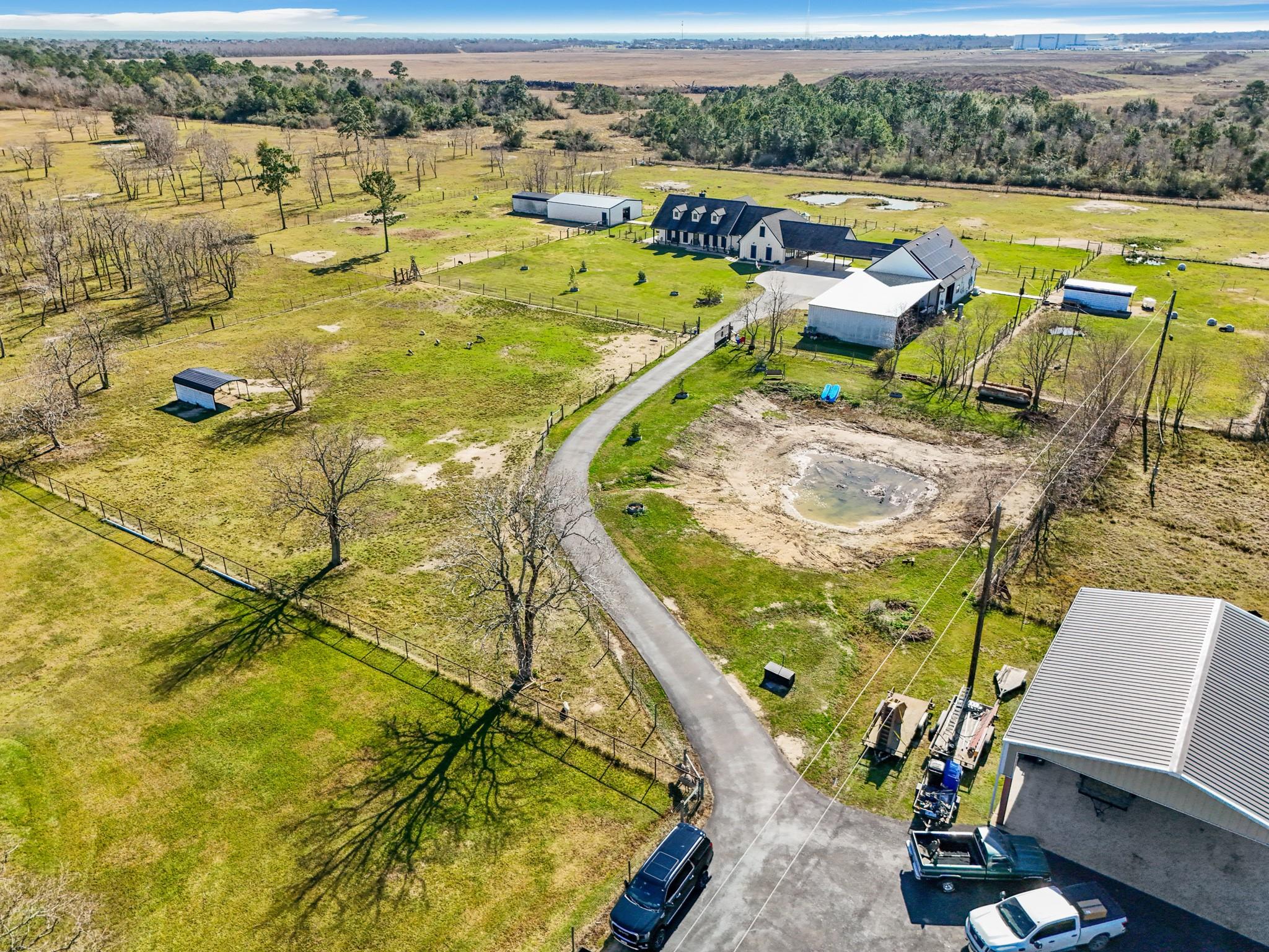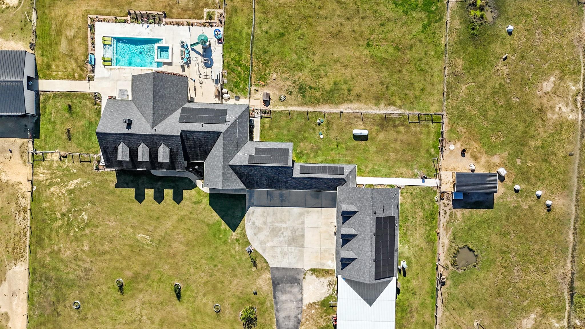 Stunning Texas Estate with Pool, Barns, Solar & More! This 4/5.5 home boasts a spacious layout with dual his-and-her master bathrooms, elegant finishes, & inviting living spaces designed for comfort and style. Step outside to enjoy the 20x40 heated pool with an 8x8 spa, surrounded by generous covered porches ideal for entertaining or relaxing. The property is equipped with solar panels and battery backup, ensuring energy efficiency and peace of mind. All rooms equipped with 36" doors making it accessible. Additional features include full bathroom in the detached shop & garage apartment, 35x55 shop with a 35x48 carport extension and 5 covered parking spaces, 32x48 barn plus 3 lean-tos for versatile storage and livestock use, Cross-fenced pastures, perfect for horses or other animals, two serene ponds enhancing the landscape and utility, Asphalt driveway. Whether you're hosting gatherings, caring for animals, or simply enjoying the peaceful surroundings, this property delivers it all.