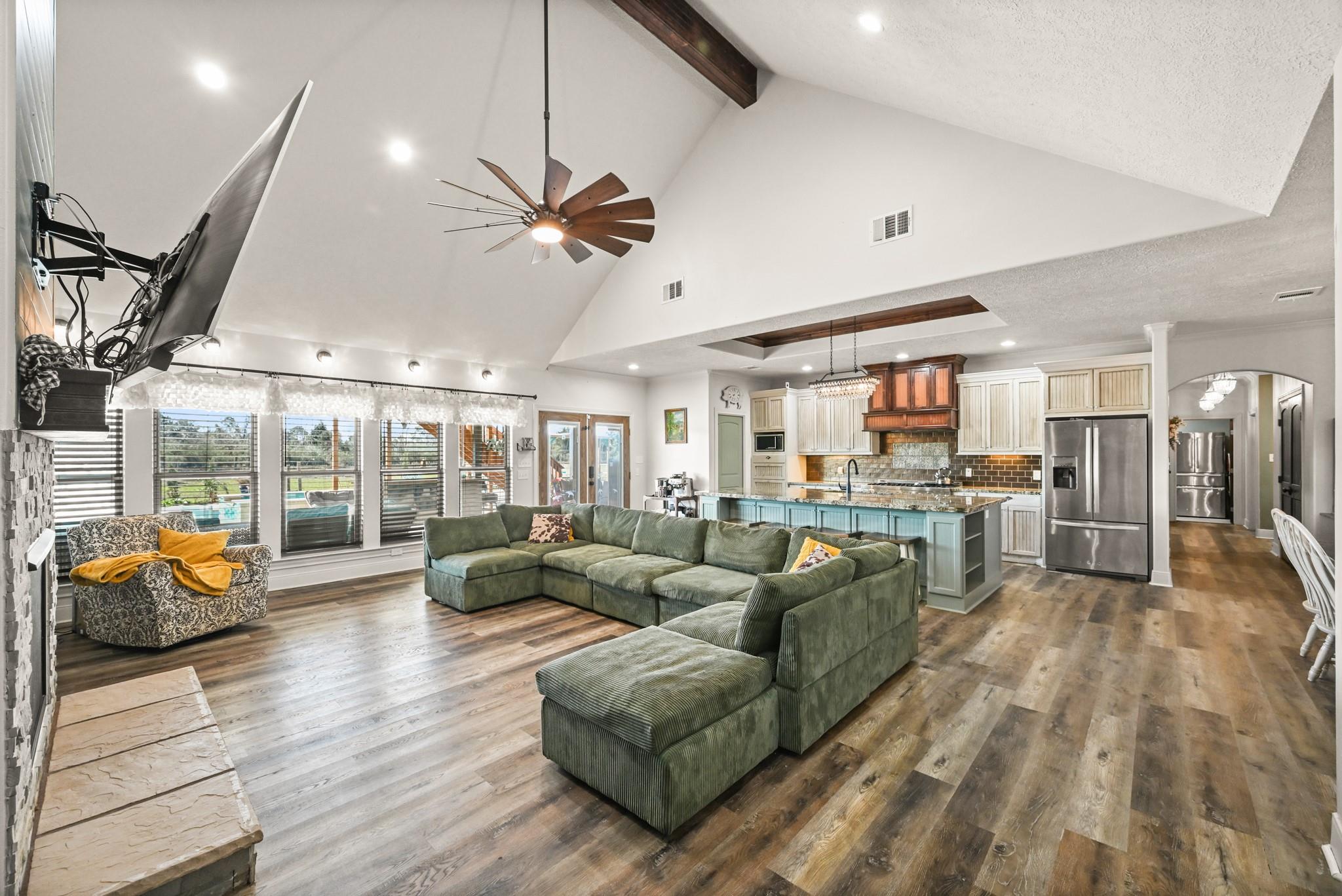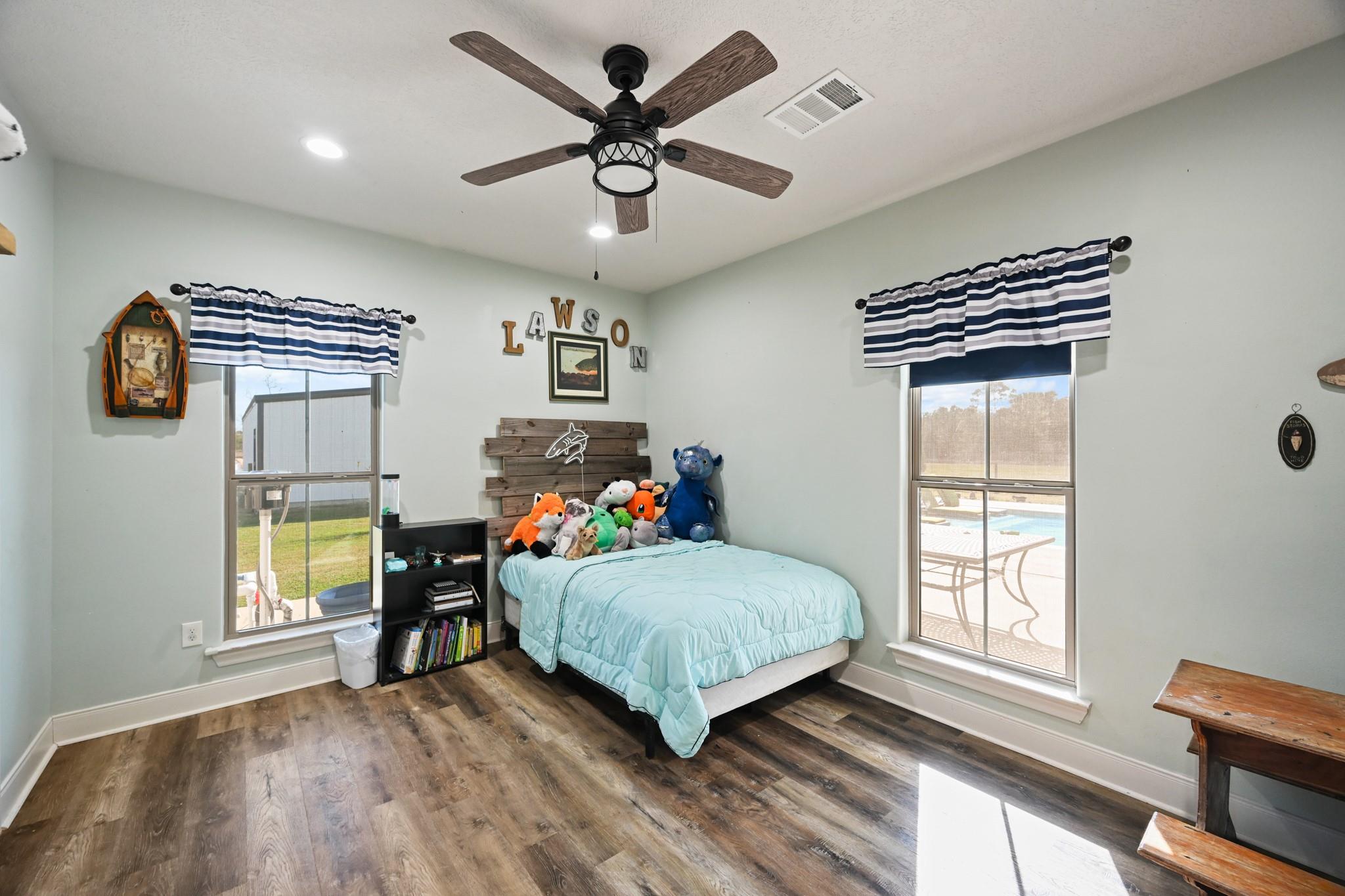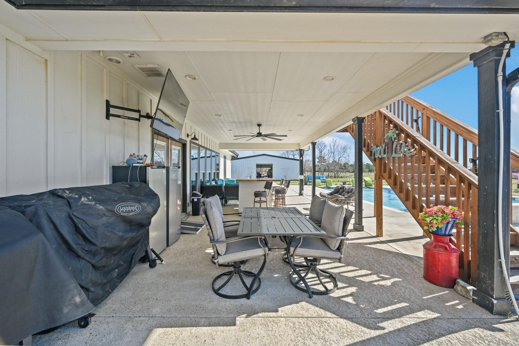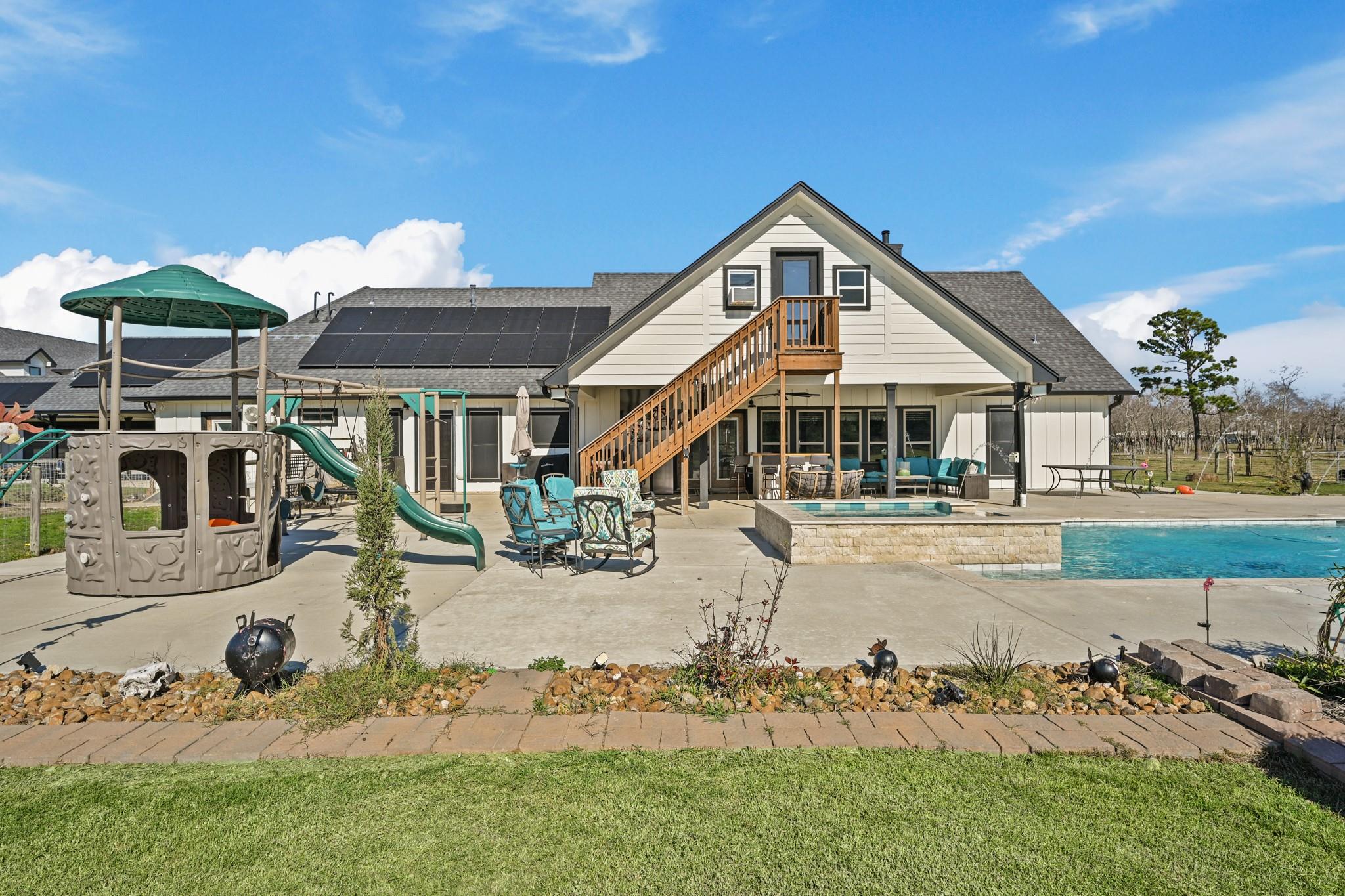 Stunning Texas Estate with Pool, Barns, Solar & More! This 4/5.5 home boasts a spacious layout with dual his-and-her master bathrooms, elegant finishes, & inviting living spaces designed for comfort and style. Step outside to enjoy the 20x40 heated pool with an 8x8 spa, surrounded by generous covered porches ideal for entertaining or relaxing. The property is equipped with solar panels and battery backup, ensuring energy efficiency and peace of mind. All rooms equipped with 36" doors making it accessible. Additional features include full bathroom in the detached shop & garage apartment, 35x55 shop with a 35x48 carport extension and 5 covered parking spaces, 32x48 barn plus 3 lean-tos for versatile storage and livestock use, Cross-fenced pastures, perfect for horses or other animals, two serene ponds enhancing the landscape and utility, Asphalt driveway. Whether you're hosting gatherings, caring for animals, or simply enjoying the peaceful surroundings, this property delivers it all.