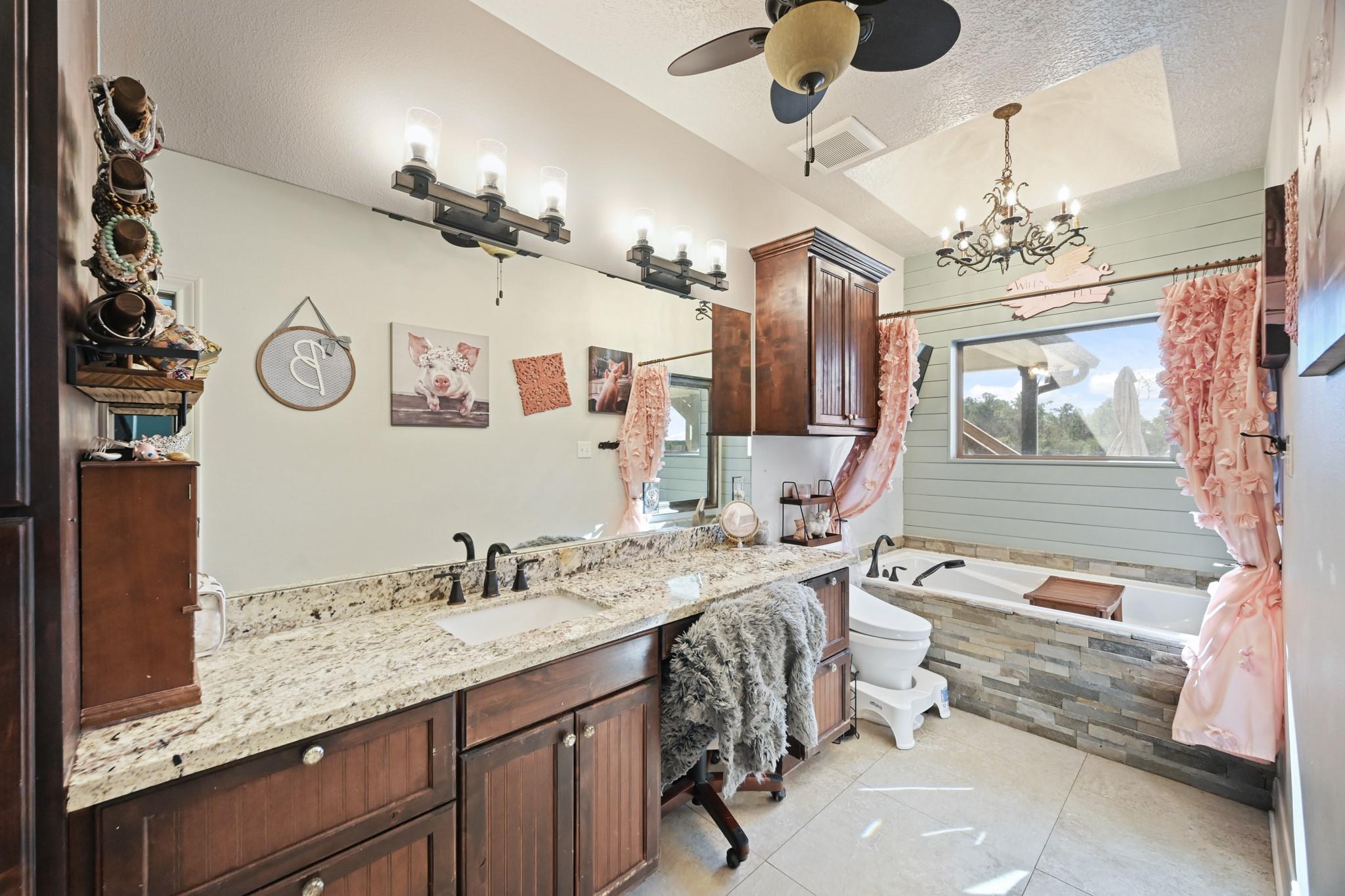 InteriorFireplace:1/Gas Connections,Gaslog FireplaceFloors:Tile,Vinyl PlankBathroom Description:Disabled Access,Full Secondary Bathroom Down,Half Bath,Primary Bath: Jetted Tub,Primary Bath: Separate Shower,Secondary Bath(s): Double Sinks,Secondary Bath(s): Tub/Shower Combo,Two Primary Baths,Vanity AreaBedroom Desc:2 Bedrooms Down,1 Bedroom Up,All Bedrooms Down,Primary Bed - 1st Floor,Sitting Area,Split Plan,Walk-In ClosetKitchen Desc:Instant Hot Water,Island w/o Cooktop,Kitchen open to Family Room,Pantry,Soft Closing Cabinets,Soft Closing Drawers,Under Cabinet Lighting,Walk-in PantryRoom Description:Entry,Family Room,Formal Dining,Formal Living,Gameroom Down,Guest Suite,Home Office/Study,Kitchen/Dining Combo,Living Area - 1st Floor,Loft,Quarters/Guest House,Utility Room in HouseHeating:PropaneCooling:Central ElectricConnections:Gas Dryer Connections,Washer ConnectionsDishwasher:YesDisposal:NoCompactor:NoMicrowave:YesRange:Freestanding Range,Gas Cooktop,Gas Range,GrillOven:Double Oven,Gas OvenIce Maker:NoEnergy Feature:Ceiling Fans,Digital Program Thermostat,Energy Star Appliances,Energy Star/CFL/LED Lights,High-Efficiency HVAC,Insulation - Spray-Foam,North/South Exposure,Other Energy Features,Solar Panel - Leased,Solar Screens,Tankless/On-Demand H2O HeaterInterior:Balcony,Crown Molding,Disabled Access,Fire/Smoke Alarm,Formal Entry/Foyer,High Ceiling,Spa/Hot Tub,Vaulted Ceiling,Window Coverings