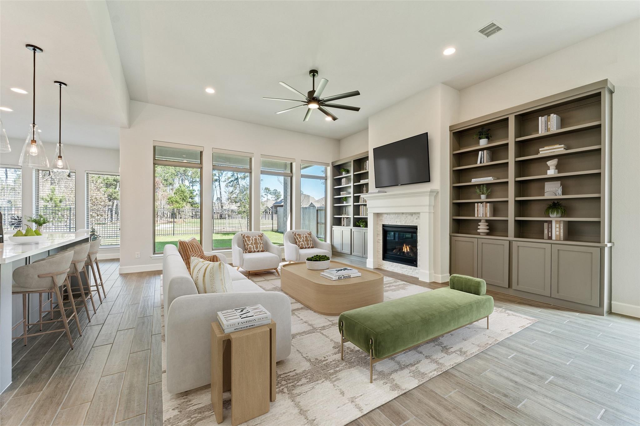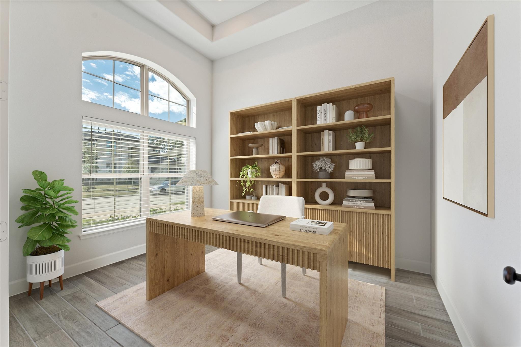 Barely lived in and truly move in ready, this one story 4 bedroom 3.5 bath home offers the space, layout, and upgrades buyers are looking for. High ceilings and an open dining and living area create a bright, welcoming feel, anchored by a gas fireplace and custom built ins. The kitchen is the heart of the home with abundant counter space, a breakfast nook, and room to gather. You’ll love the dedicated home office plus a separate flex room that can be a media room, playroom, or second living space. The primary suite is tucked away at the back for privacy and overlooks the serene covered patio. No back neighbors means extra peace, extra privacy, and a more relaxing view. Spacious, stylish, and thoughtfully designed throughout, this home is the easy yes you’ve been waiting for. Updates include primary bath, built-ins in living room, epoxy floors in garage and floored attic space.. Call today for a private tour.