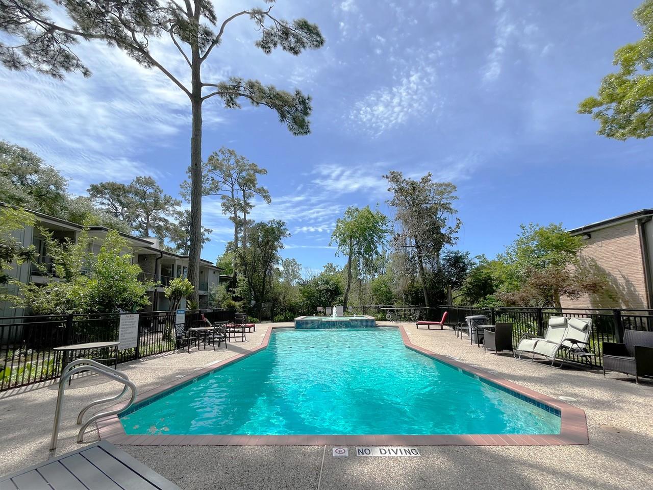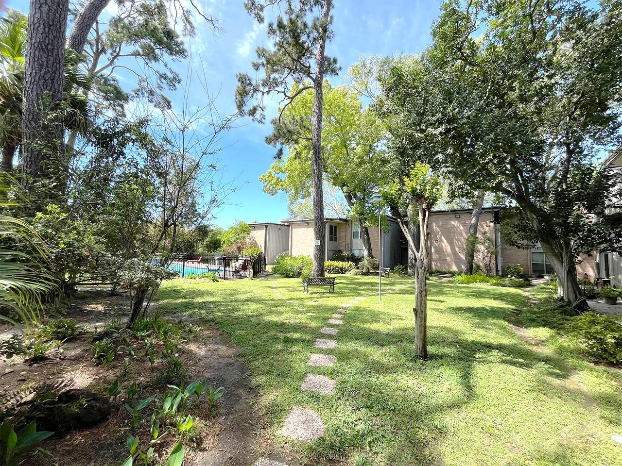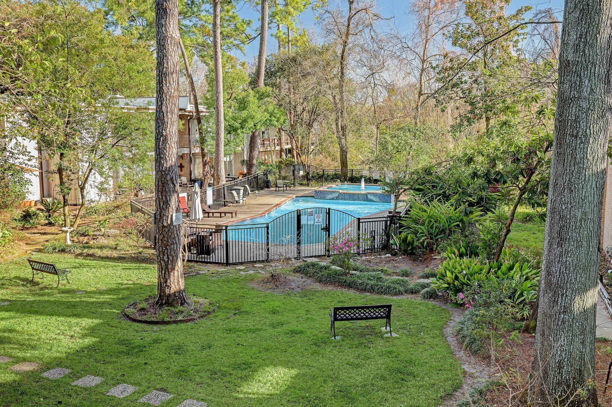 Unique treehouse-like setting with beautiful ravine & treetop views! Bright, stylish 2 bedroom, 2 full bath End- Unit condo tucked along a serene, tree-lined bayou in a quiet, well-kept community. From the moment you walk in, natural light pours through a dramatic wall of windows, framing lush green views & creating an airy, inviting living space. Open-concept layout flows seamlessly from living room to dining area & kitchen, which features ample cabinetry & a pantry. Step outside to recently added sprawling private balcony overlooking the bayou, an ideal setting for morning coffee or in evenings to wind down. Primary bedroom with Walk-in closet. Guest bedroom with 2 closets. Energy efficient blinds. Community amenities include a sparkling pool & beautifully maintained grounds. Perfect location with Easy access to I-10 & 610. Just minutes to Galleria, Memorial City Mall, CityCentre & Downtown. Zoned to highly desirable Spring Branch ISD: Hunters Creek Elementary & Memorial High School.