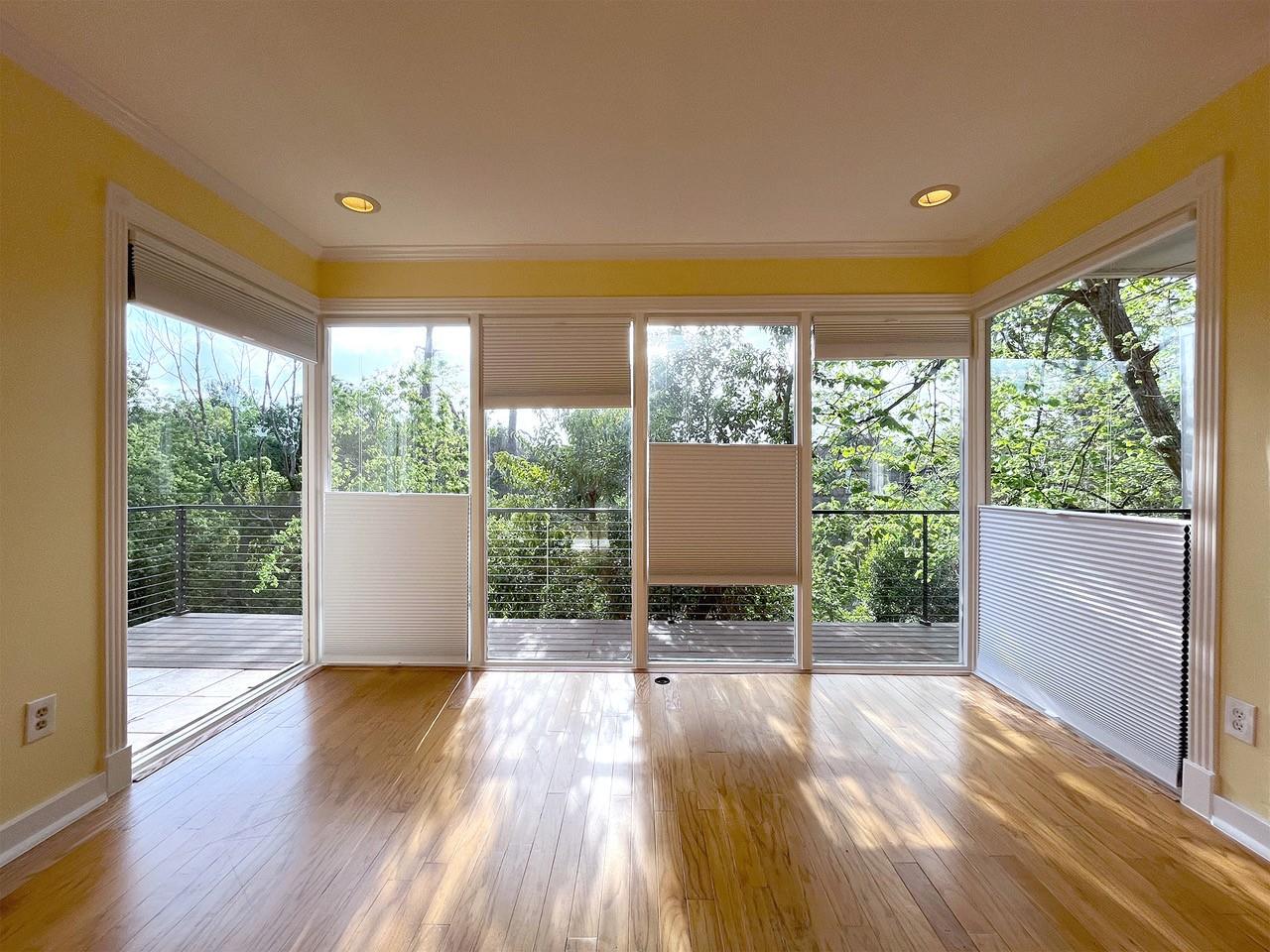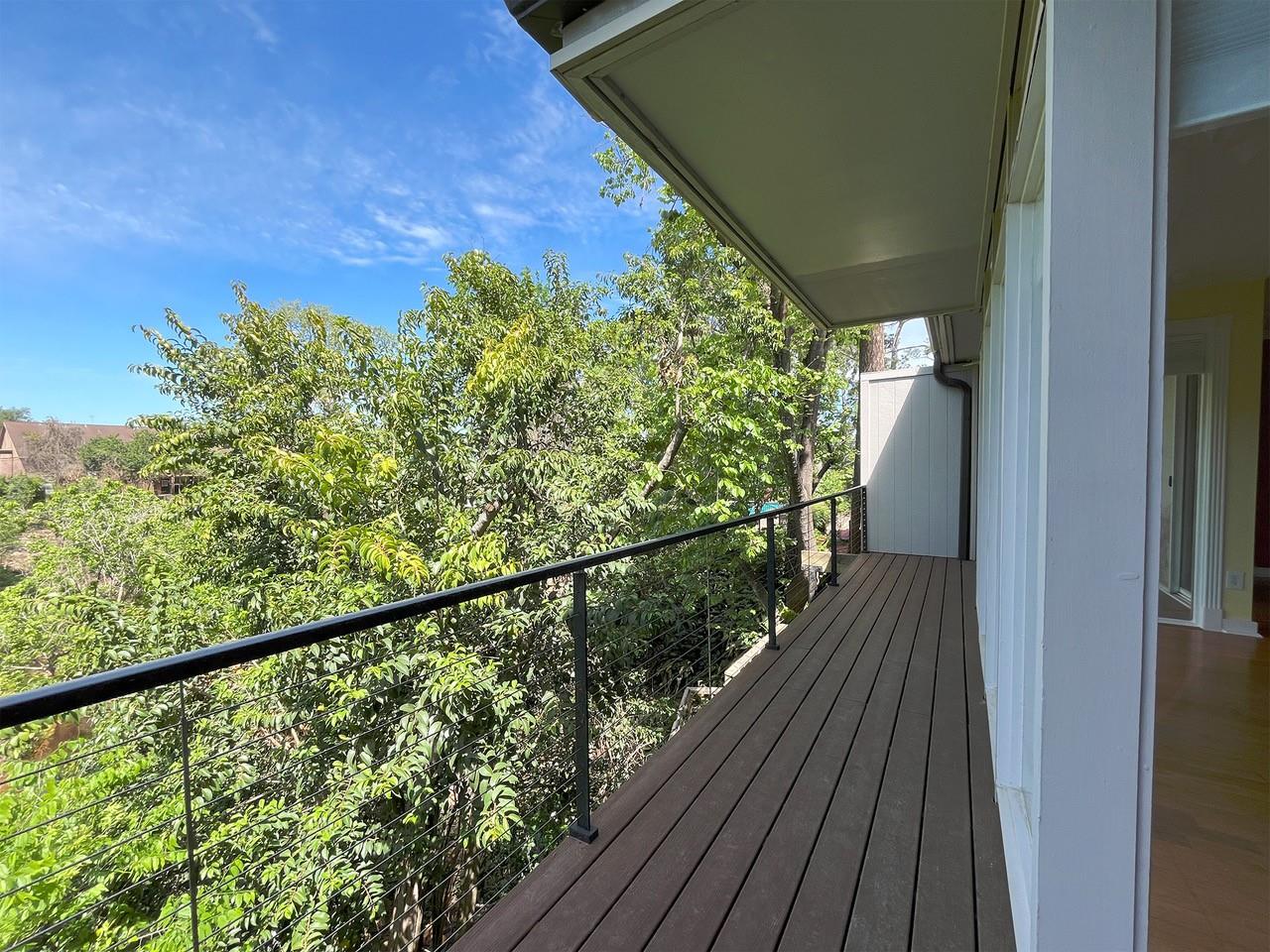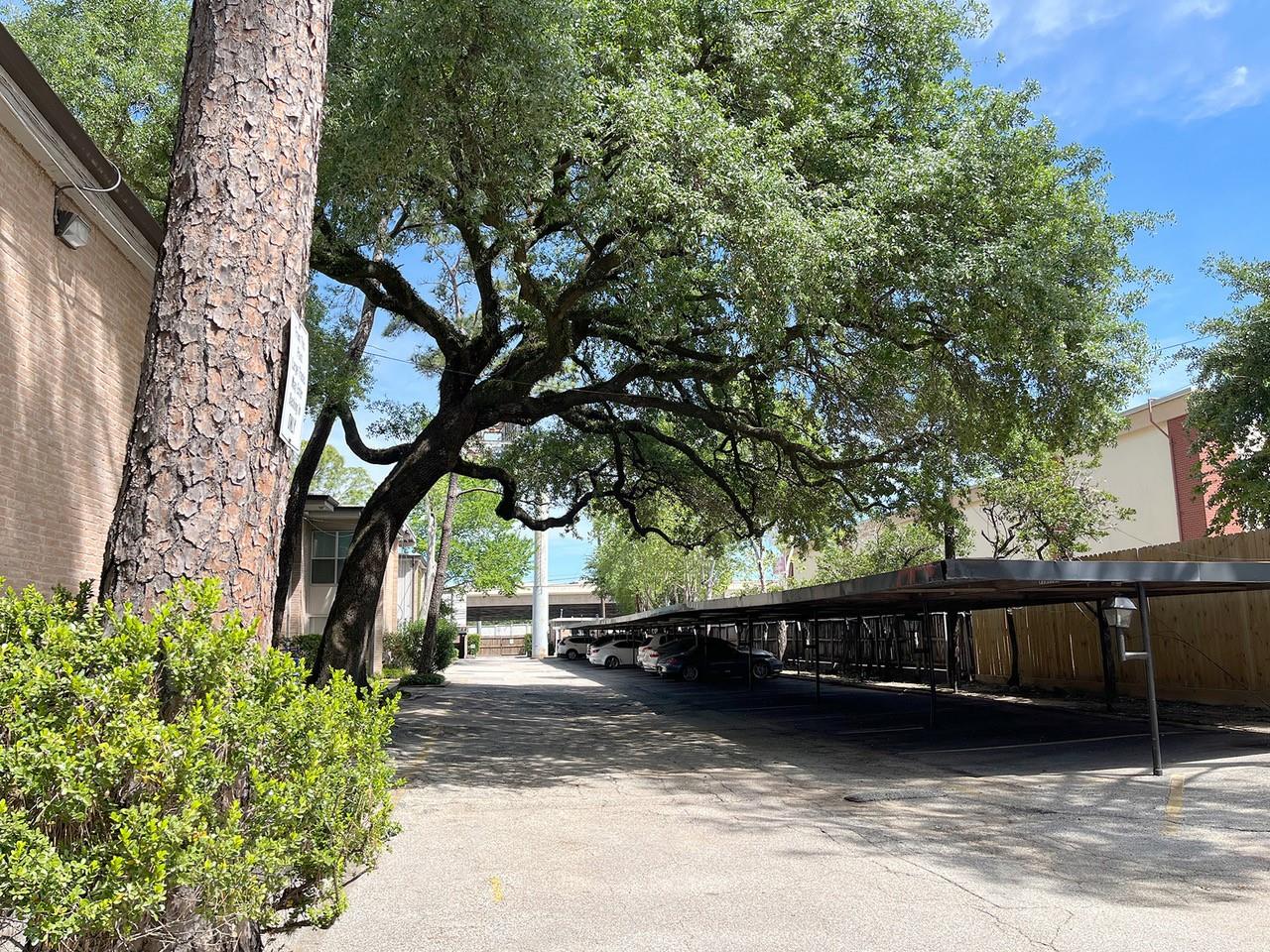 Unique treehouse-like setting with beautiful ravine & treetop views! Bright, stylish 2 bedroom, 2 full bath End- Unit condo tucked along a serene, tree-lined bayou in a quiet, well-kept community. From the moment you walk in, natural light pours through a dramatic wall of windows, framing lush green views & creating an airy, inviting living space. Open-concept layout flows seamlessly from living room to dining area & kitchen, which features ample cabinetry & a pantry. Step outside to recently added sprawling private balcony overlooking the bayou, an ideal setting for morning coffee or in evenings to wind down. Primary bedroom with Walk-in closet. Guest bedroom with 2 closets. Energy efficient blinds. Community amenities include a sparkling pool & beautifully maintained grounds. Perfect location with Easy access to I-10 & 610. Just minutes to Galleria, Memorial City Mall, CityCentre & Downtown. Zoned to highly desirable Spring Branch ISD: Hunters Creek Elementary & Memorial High School.
