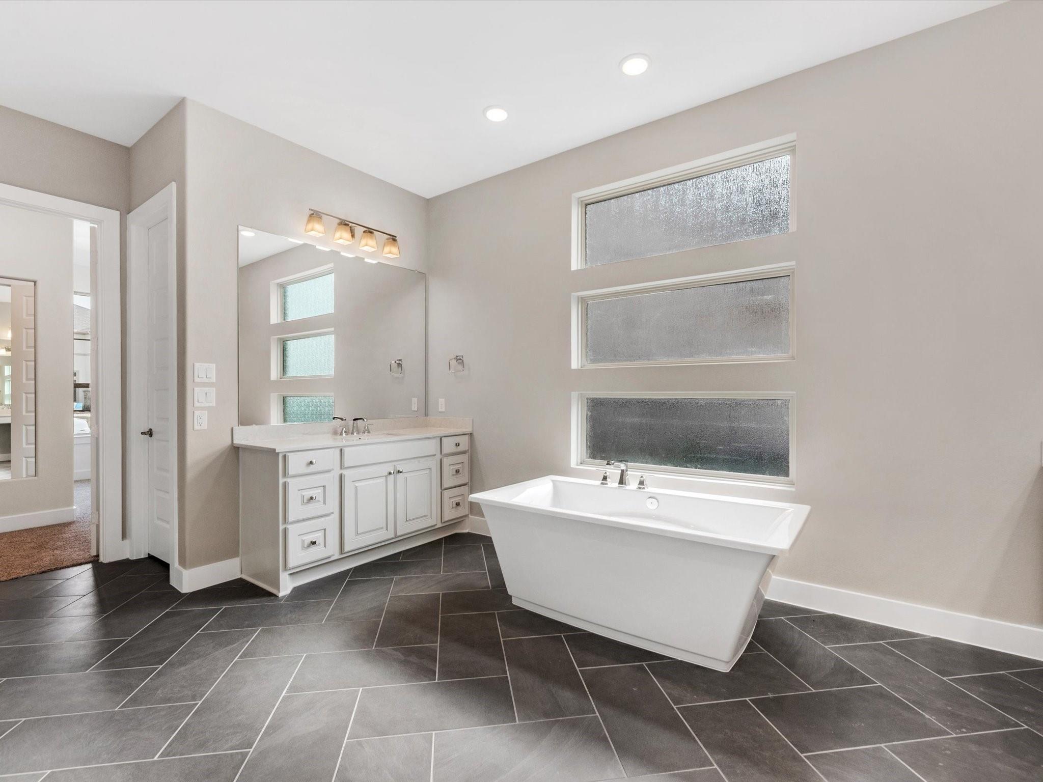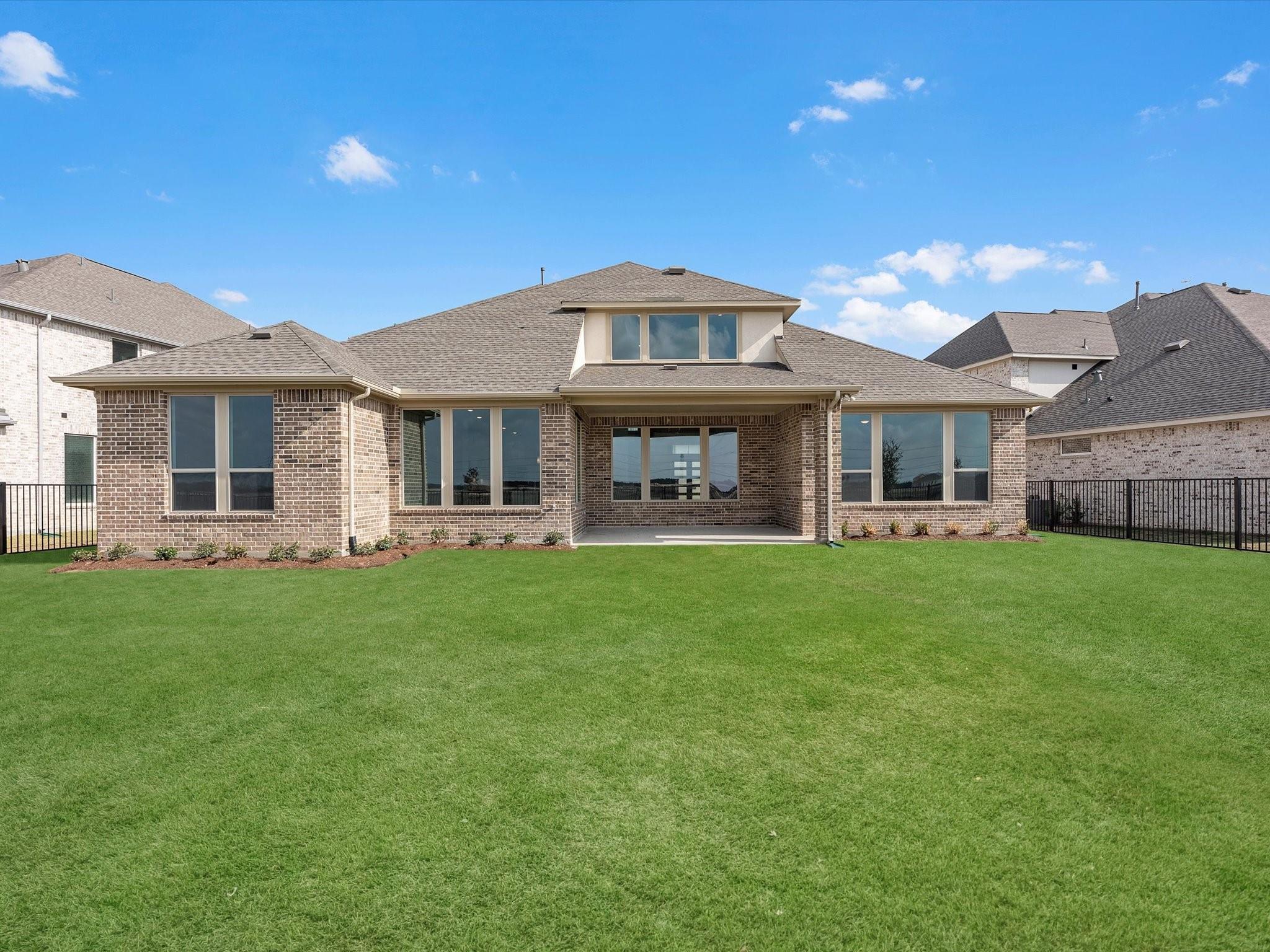 The Lamesa Plan -Experience refined elegance and exceptional craftsmanship in this exquisite two-story residence, anticipated for completion in March. Offering five spacious bedrooms, including two on the main level, and five and a half baths, this home is thoughtfully designed to deliver both grand entertaining spaces and intimate everyday comfort. The sophisticated floor plan features a formal dining room, private home office, media room, and game room, providing versatility for modern luxury living. At the heart of the home, the open concept living area flows effortlessly into a covered patio, creating a seamless indoor-outdoor experience ideal for entertaining. A chef-inspired kitchen is complemented by a separate catering kitchen, perfect for hosting elegant gatherings while keeping the main kitchen pristine. The primary suite is a serene retreat, showcasing a spa-like bath with dual vanities, a separate shower, a soaking garden tub, and an expansive walk-in closet.