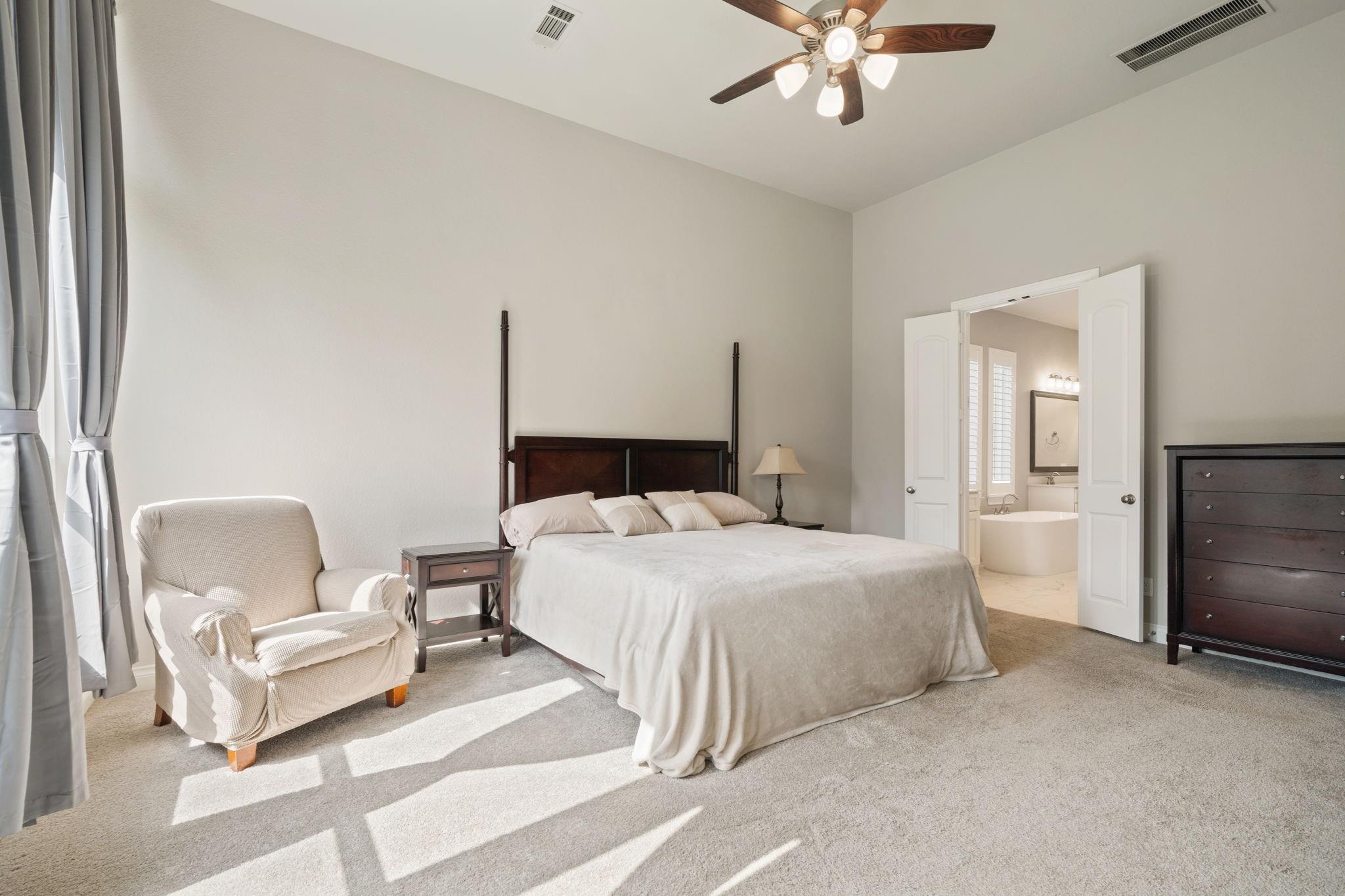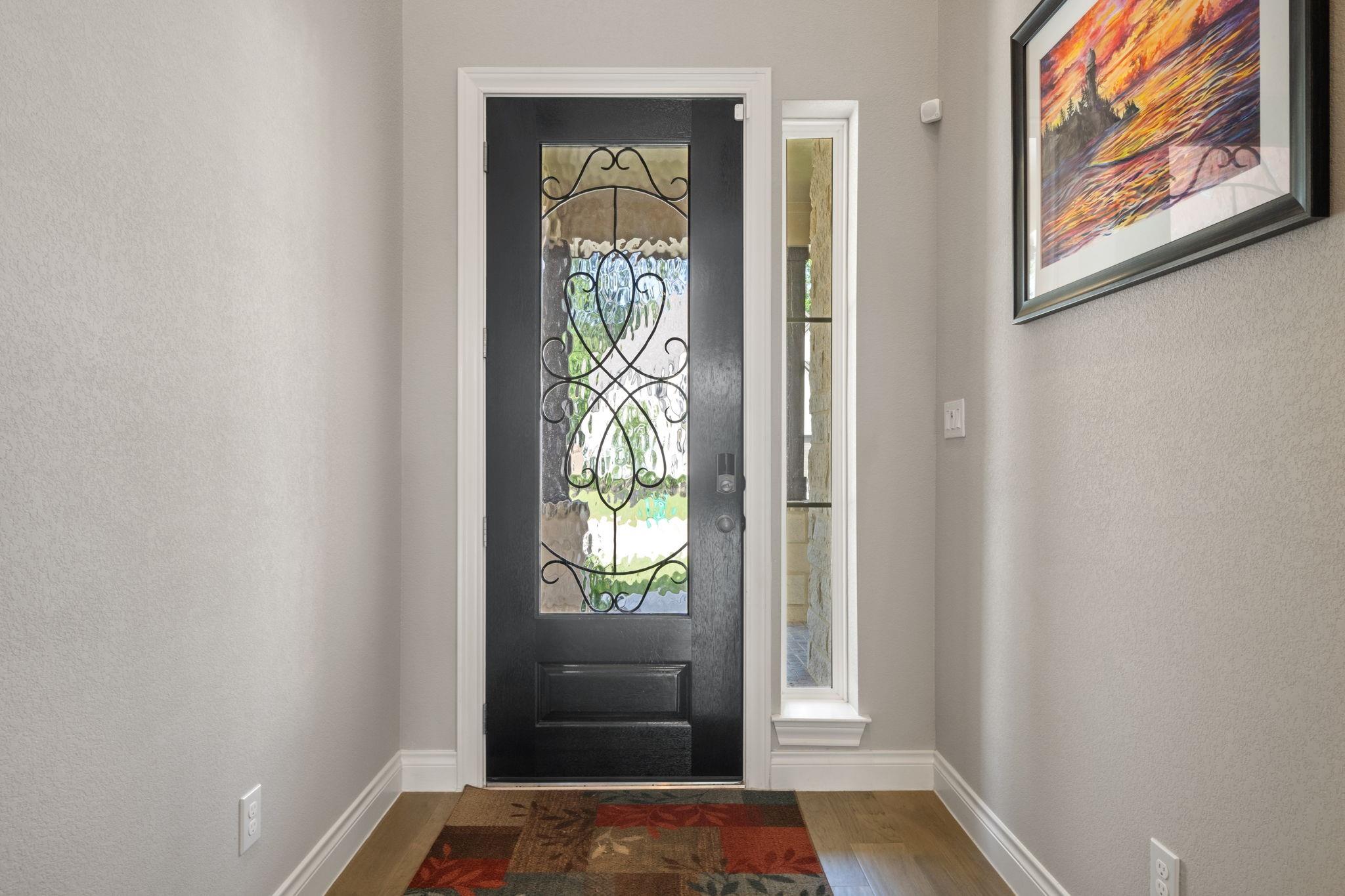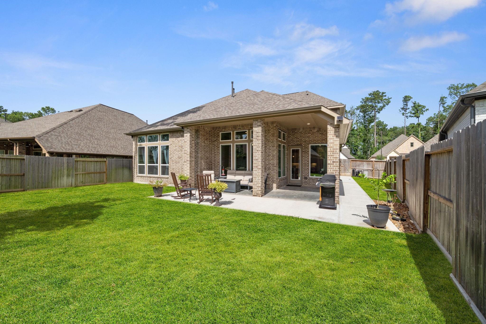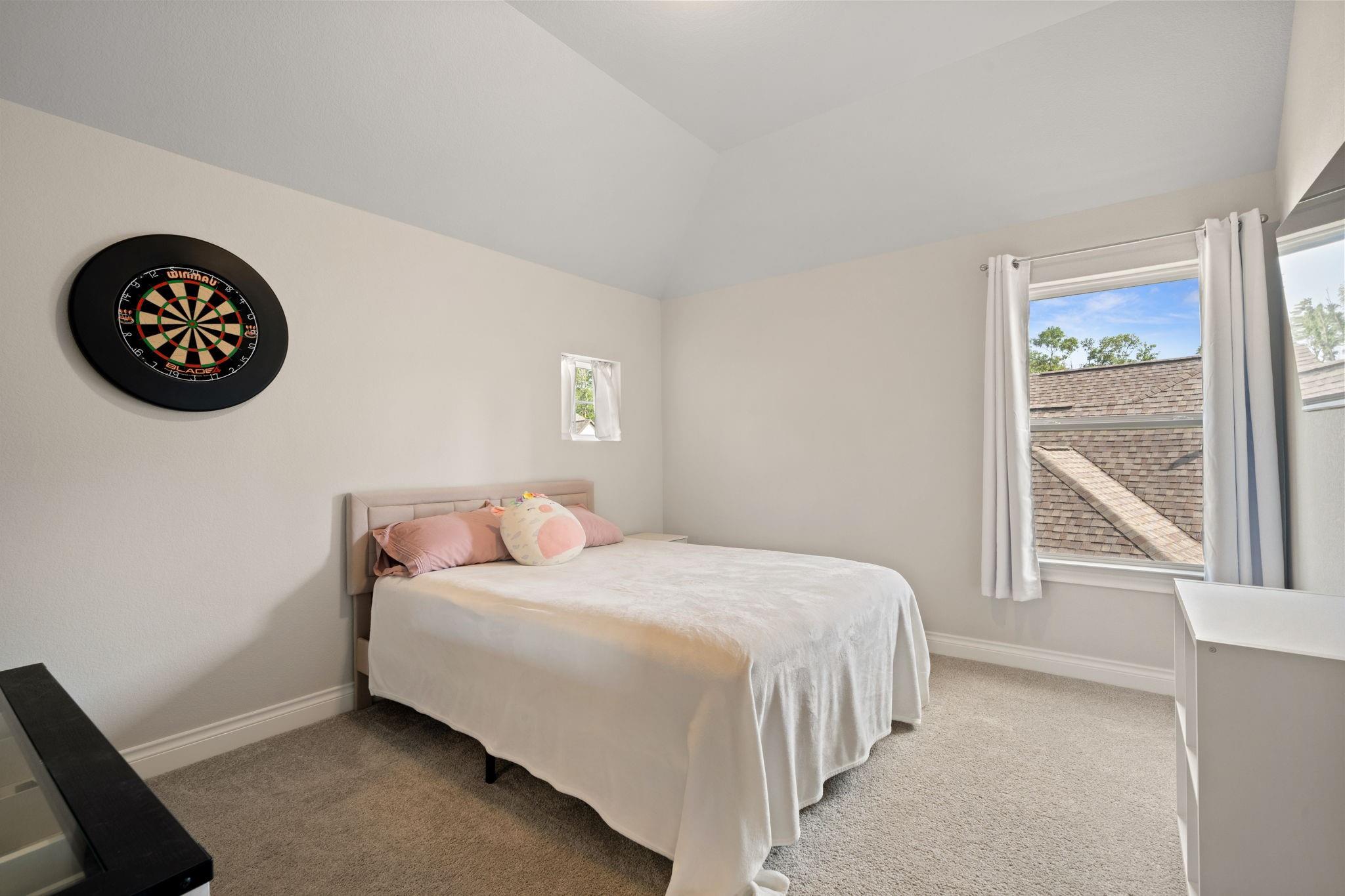 Step into this beautifully designed 2-story home, where a dramatic 21-foot entry and striking rotunda ceiling over the staircase create an unforgettable first impression. The open-concept kitchen is both stylish and functional, with upgraded can lighting, built-in stainless steel KitchenAid appliances, a Frigidaire refrigerator, and a curved island that flows seamlessly into the spacious family room. Rich RevWood flooring and custom shades throughout the main living area add warmth, durability, and everyday elegance. A light-filled front bedroom offers the perfect flexibility for a home office or guest space, while the private first-floor primary suite is tucked quietly at the back of the home for added comfort and convenience. Upstairs, you will find a generous game room, multiple secondary bedrooms, a full and secondary bathroom—ideal for family, guests, or multi-generational living. Unwind outdoors under the covered patio and enjoy the comfort of your private backyard oasis.