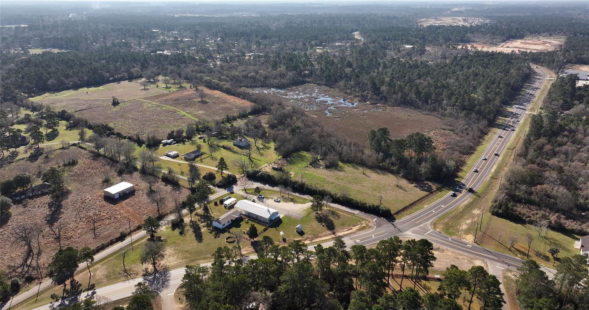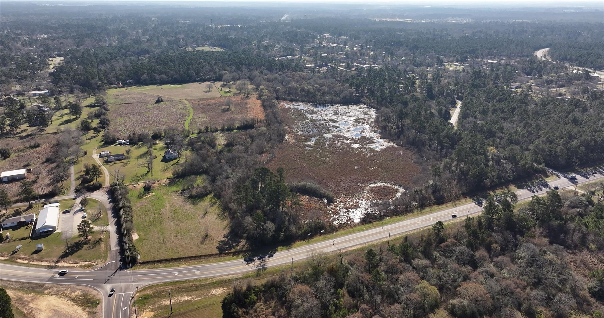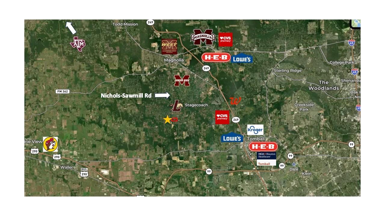 Prime 83-acre development opportunity in Magnolia featuring two hard corners at Grand Pines & Nichols Sawmill and Grand Pines & Turtle Dove Ln. The property also offers a third potential access point at Turtle Dove and an additional entry from Country Woods Trail along the northeast boundary, providing excellent circulation options and flexibility for phased planning. Positioned in the path of continued residential growth, this tract offers strong frontage, visibility, and development versatility. The land includes a mix of open and wooded areas, allowing for creative site design. An existing pond provides the opportunity for detention integration or enhancement as a community amenity such as a park or recreational lake. With expanding infrastructure and increasing housing demand in the surrounding area, this property presents a strategic large-scale opportunity in one of the Houston Metroplex’s most active growth corridors.