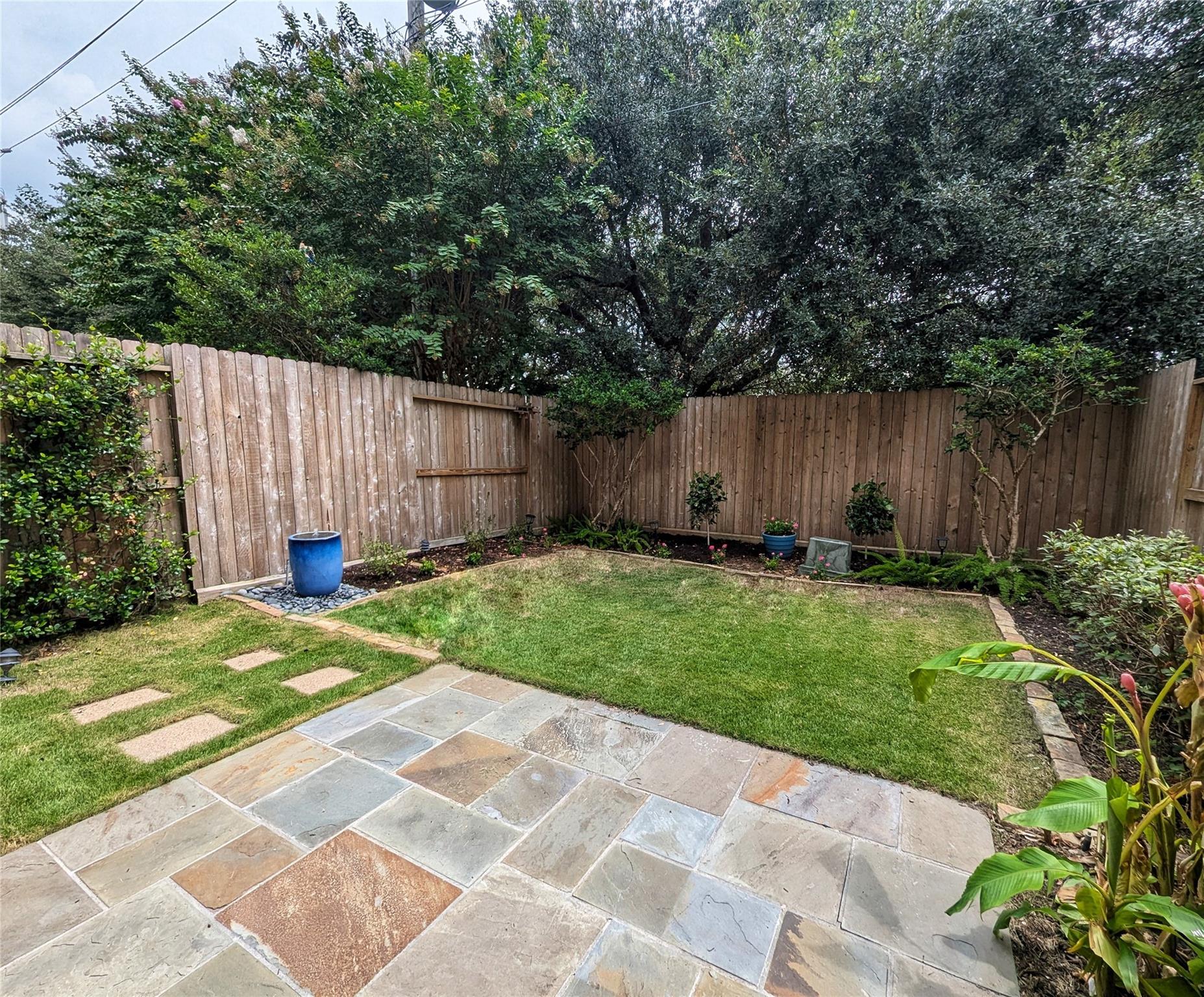 This beautiful home blends urban excitement with suburban comfort and convenience in a sought after location with yard and driveway and many updates including new roof/2025, fresh paint throughout, and 3 bedrooms, updated 3 and half bathrooms with quartz countertop, garage with EV charging outlet and smart garage door opener. First floor spacious bedroom/study with full bath and large walk-in closet leads to backyard. Beautifully landscaped fenced backyard with water fountain. Open floor plan with living room, dining room and kitchen with breakfast area on the 2nd floor, high ceiling, open kitchen. Primary bathroom has upgraded shower and soaking tub, double vanities with quartz countertop and, third bedroom with full bath, Balcony off 2nd and 3rd floor facing backyard with beautiful view. This hidden gem is conveniently located within walking distance to Buffalo bayou trails/park and some of the best restaurant & groceries. Easy access to major frwy, museum district, medical center.