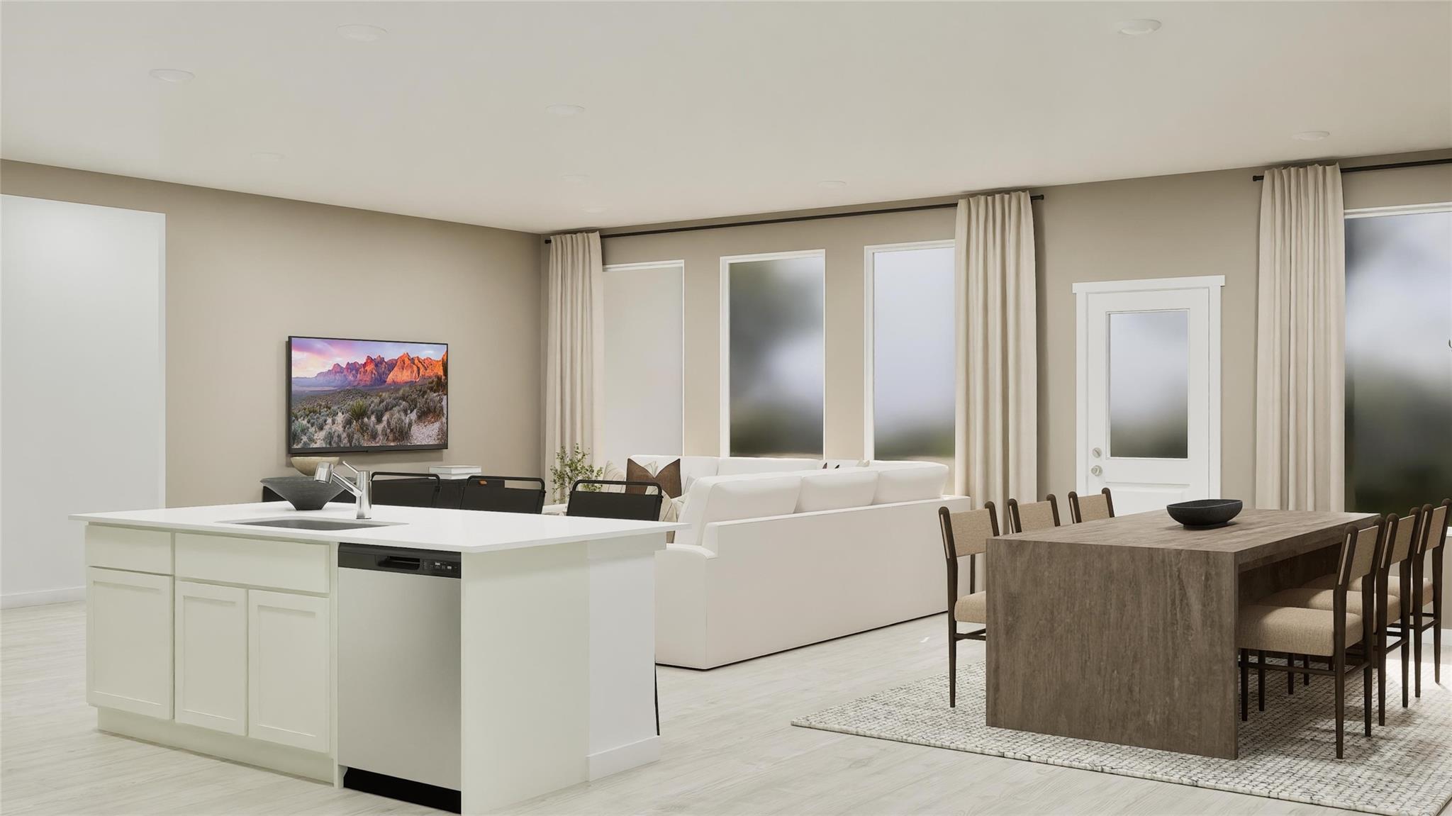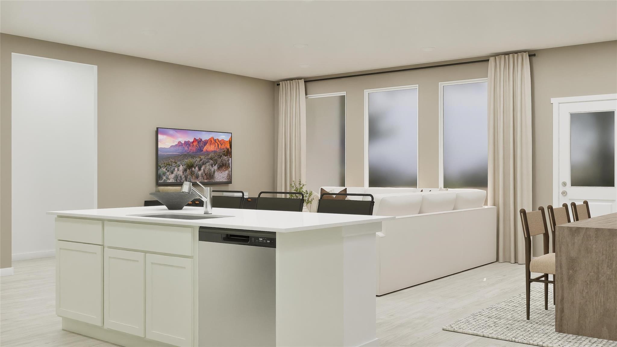 The Springsteen Floor Plan - This single-story home shares an open layout between the kitchen, nook and family room for easy entertaining, along with access to the covered patio for year-round outdoor lounging. A luxe owner's suite is in a rear of the home and comes complete with an en-suite bathroom and walk-in closet. There are three secondary bedrooms near the front of the home, ideal for household members and overnight guests, as well as a versatile flex space that can transform to meet the homeowner’s needs. The completion date, prices and features may vary and are subject to change. Please verify with Lennar directly. Photos are for illustrative purposes only.