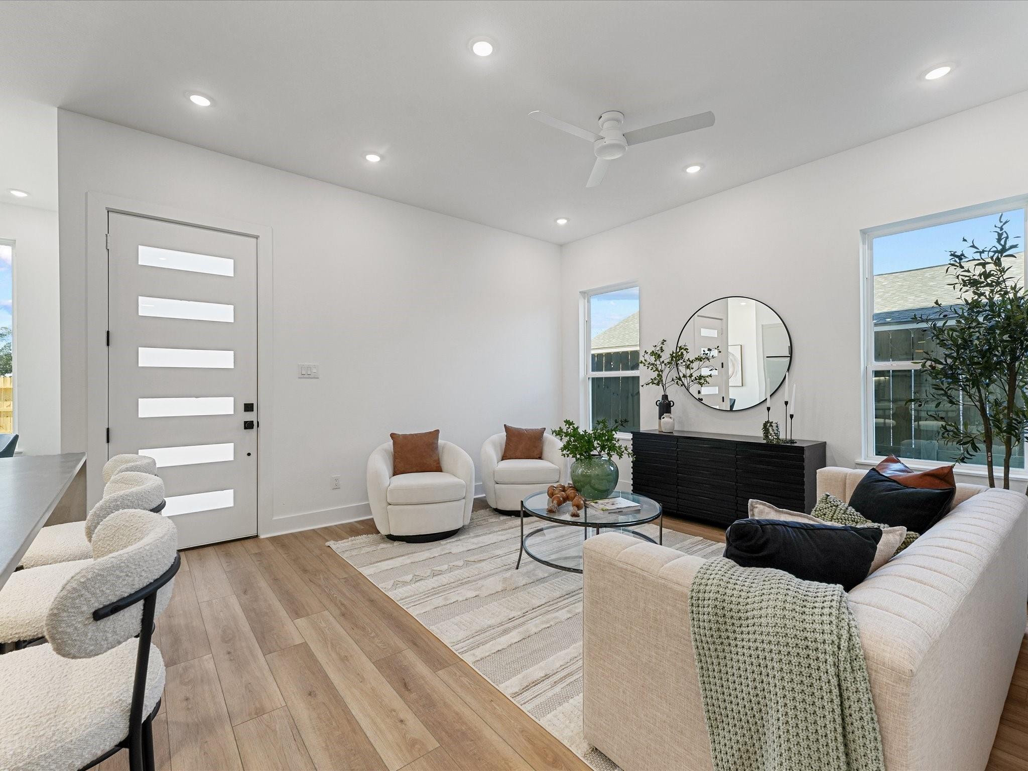 The one and only - Sumer Duplex. The duplex that may just change the game. The Sumer Duplex captivates with its bold jet-black exterior. Every line, angle, and opening was designed to command attention while maintaining balance and flow. There is an abundance of natural light through expansive windows, highlighting clean interiors and craftsmanship. The interior finishes are the icing on the cake. Rich and moody palette contrasts beautifully with the warmth of the wood details, creating a look that feels both minimal and magnetic. This is the new way of duplexing. Schedule your tour today.