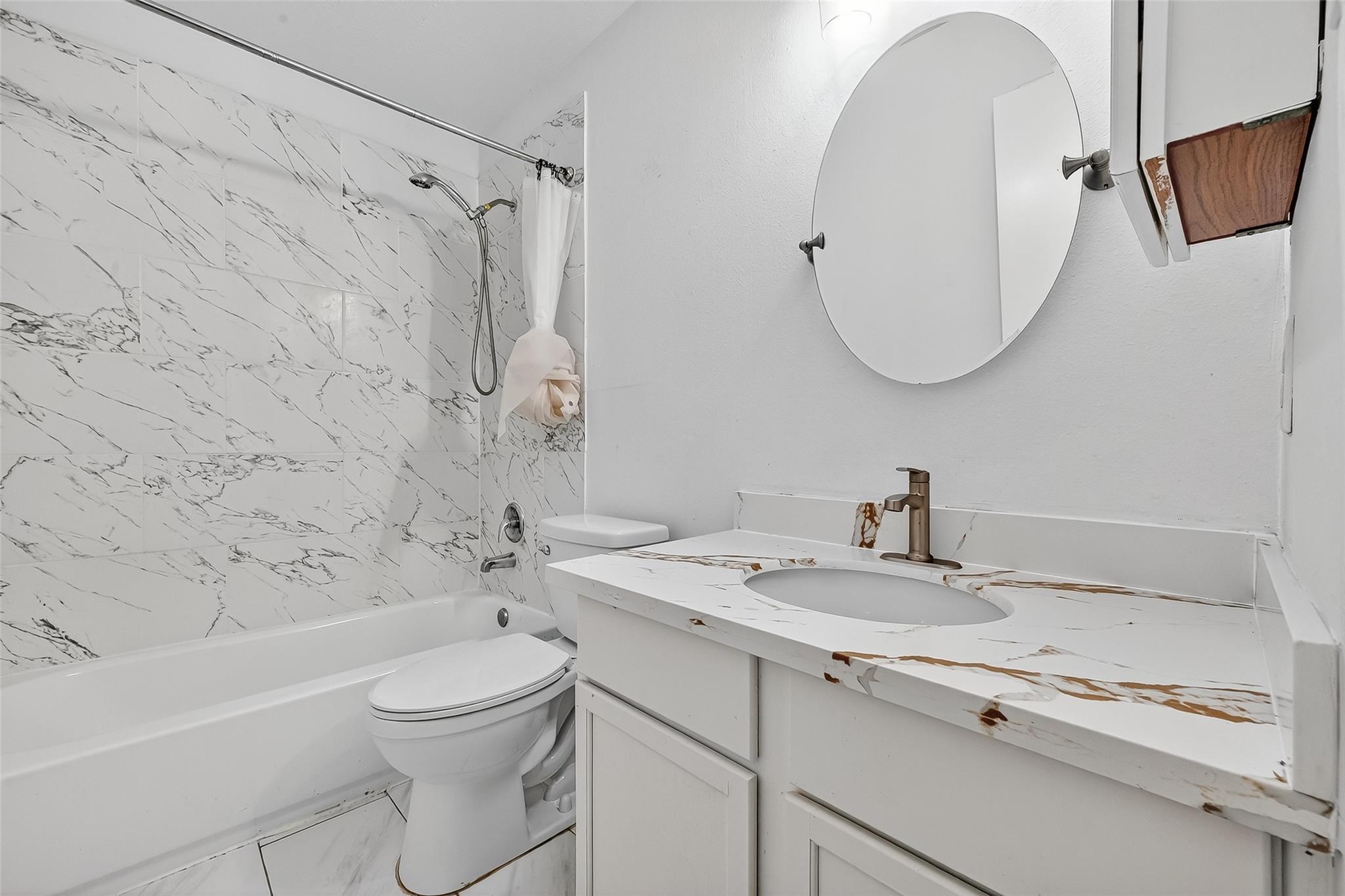 Beautiful four-bedroom two story house in gated community with mature trees and golf course view. Recently updated property is ready to entertain your family. Custom tiles downstairs and High quality vinyl flooring upstairs. No carpet. Spacious living area with fireplace, Kitchen opens to living, breakfast and dining room. Big size master bedroom. Master bathroom with Jacuzzi tub and separate shower. High ceiling foyer and lots of windows for this extra big lot end corner house. Easy access to 59, beltway 8, shopping and restaurants. Come to see!
