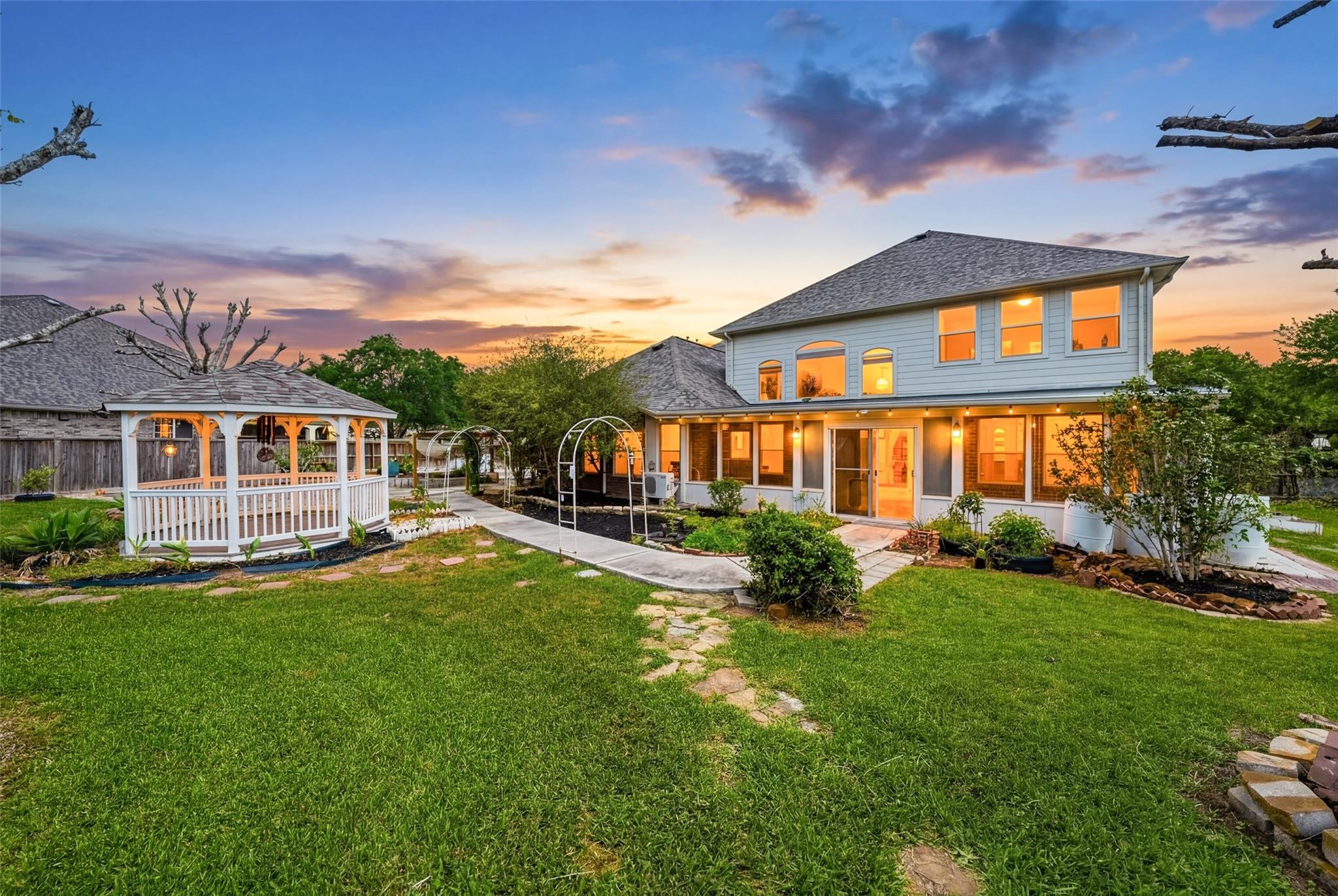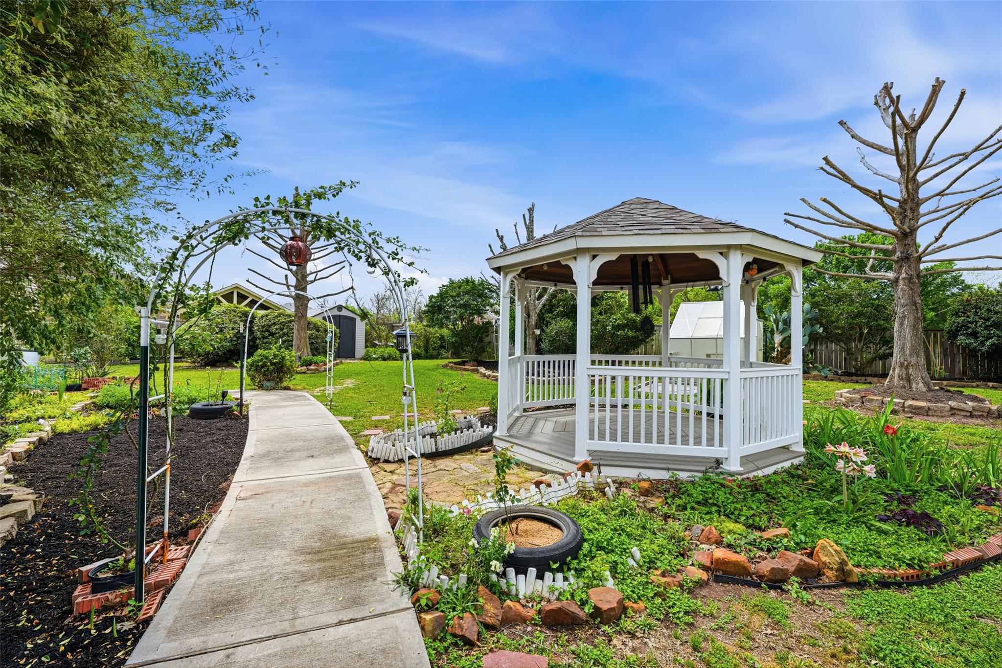Located in the master planned community of Long Meadow Farms, this 2-story home boasts 5 bedrooms, 3.5 baths, a large study, formal dining, game room, and a gourmet island kitchen overlooking the spacious family room. The bay window master bedroom features a sitting area, while the luxurious master bathroom offers a huge glass door shower and elegant tub. Commercial Vinyl floor, No carpet throughout the house. Epoxy garage floor with built in cabinets, AC installed in the garage. there are extra-large outdoor living space including a temperature-controlled sunroom, octagon panelized gazebo, two storage houses, tall garden arch trail, KOI fishpond, raised garden beds, stone brick paved courtyard, fruit trees, and beautiful flowers. Enjoy amenities such as parks, lakes, pools, and a fitness center in this great community conveniently located along Grand Parkway, between I10 and 59. FBISD Schools. Come and see this gardener's paradise!
