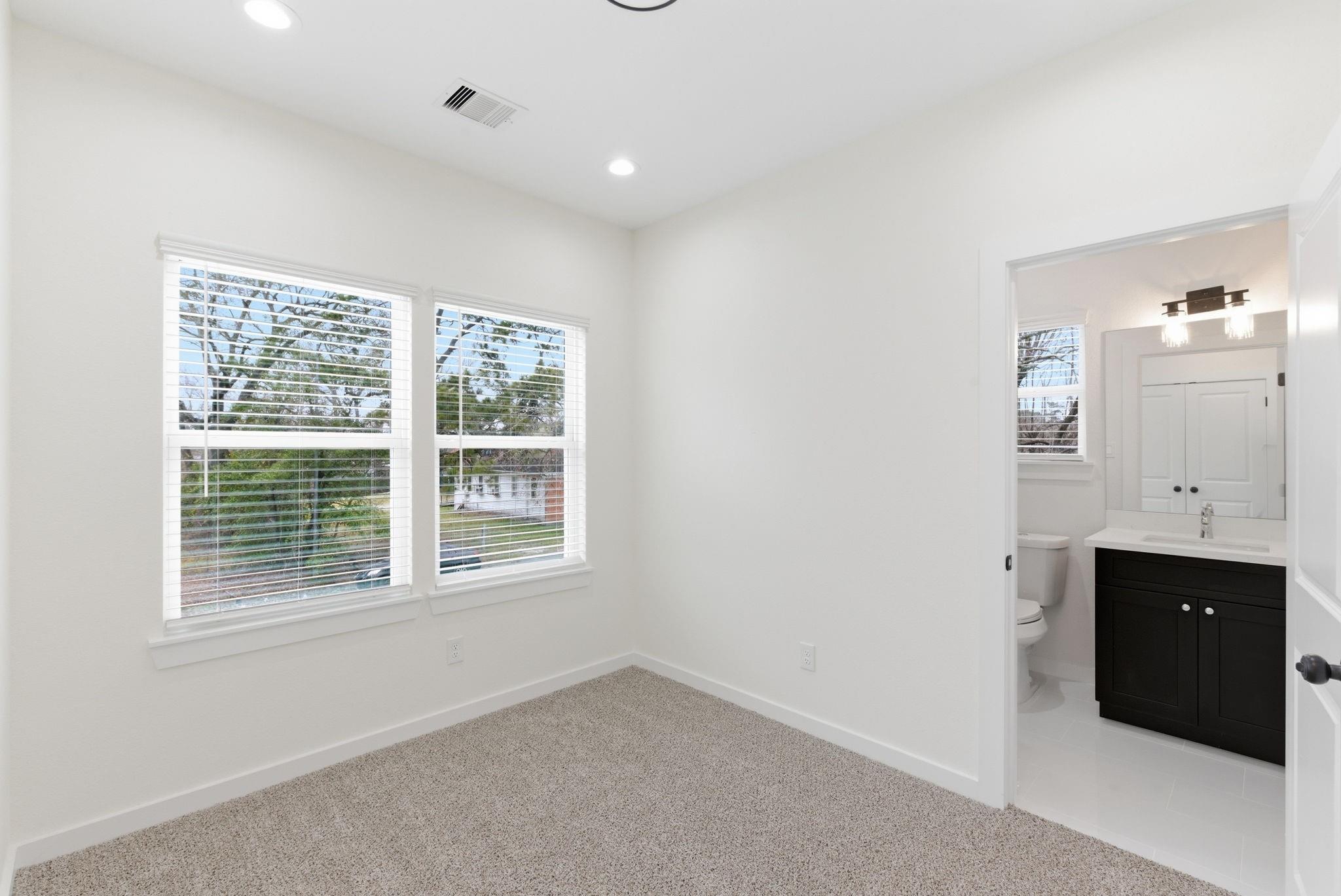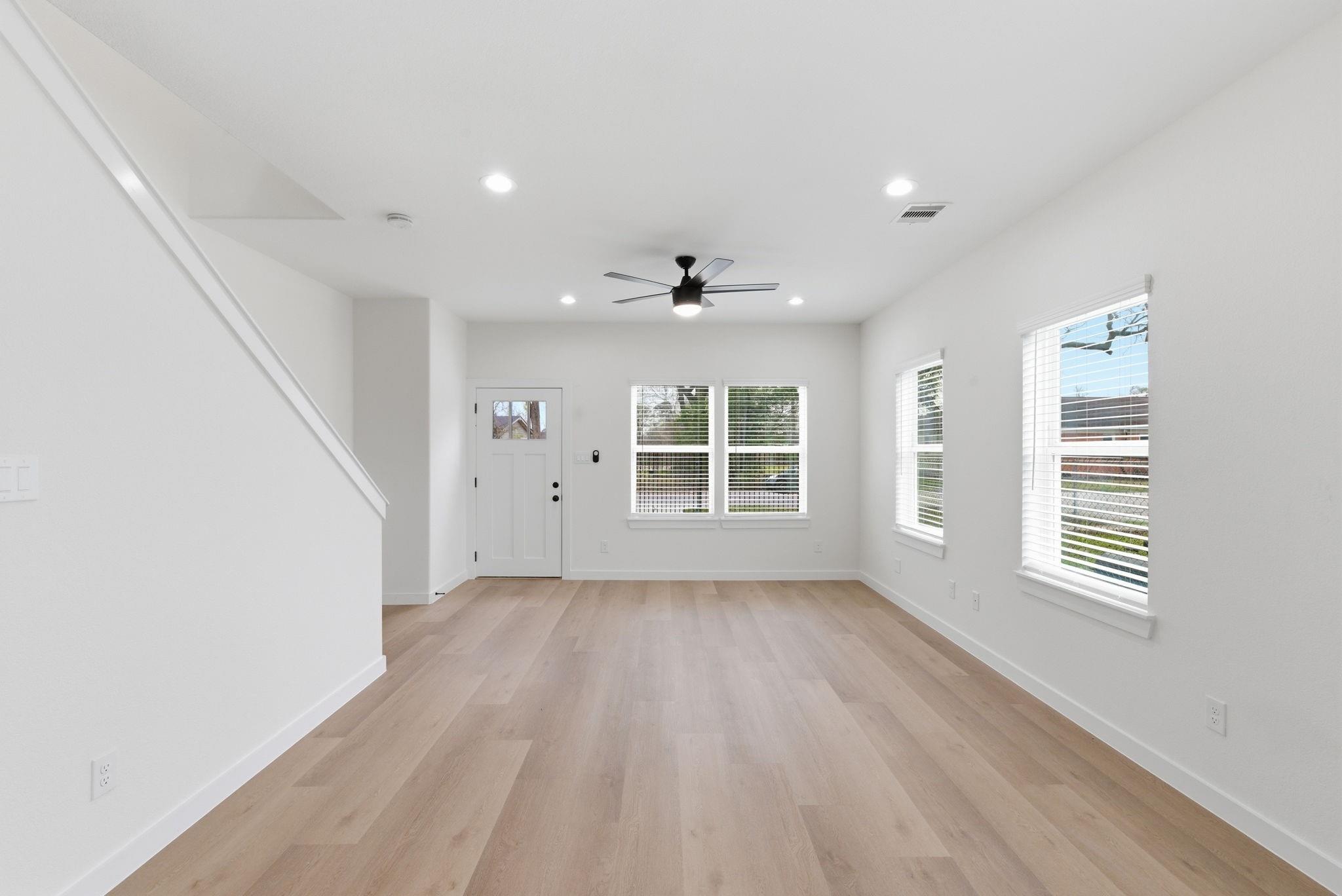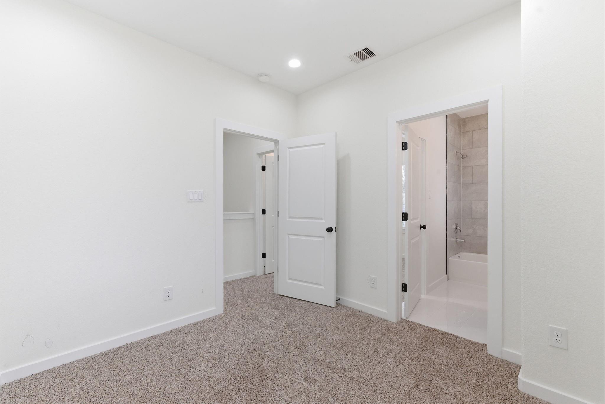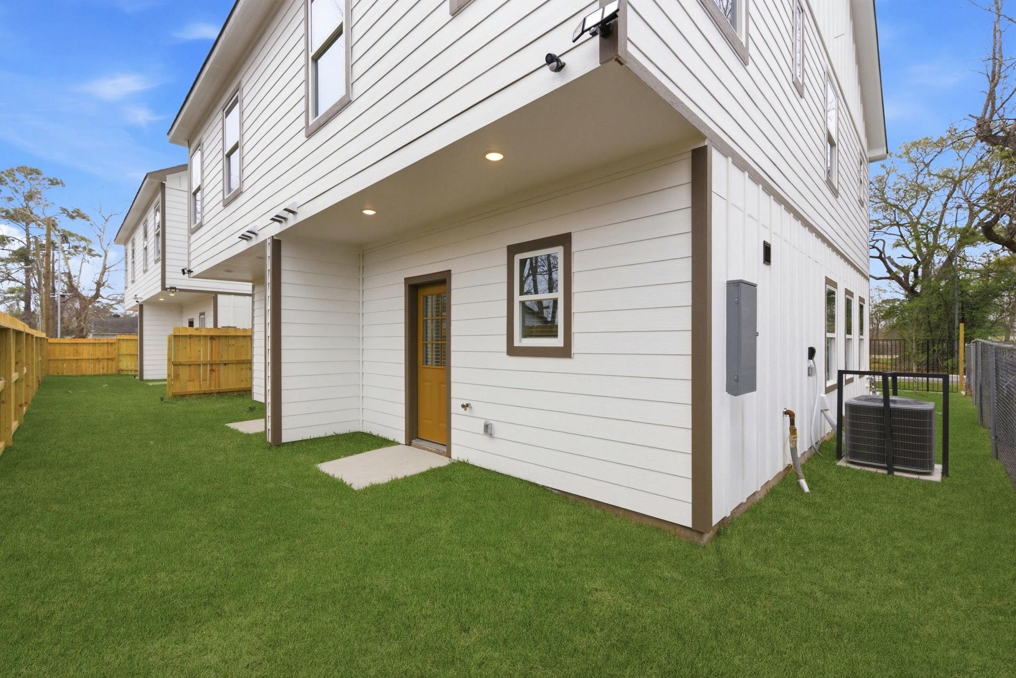 New 2026 duplex offering 2,432 sq ft with two identical 3-bed, 2.5-bath units. Each home features an open-concept living, dining, and kitchen area on the first floor, plus a downstairs utility room with gas and electric dryer connections. All bedrooms are upstairs. The primary suite includes a double-vanity bath, walk-in shower, and two closets. Secondary bedrooms share a Jack-and-Jill style bath with direct access from both rooms. Property includes a driveway gate and modern finishes throughout. Ideal for investors or buyers looking to live in one unit and rent the other. A great opportunity to own a brand-new, move-in-ready duplex in a growing area of Houston.