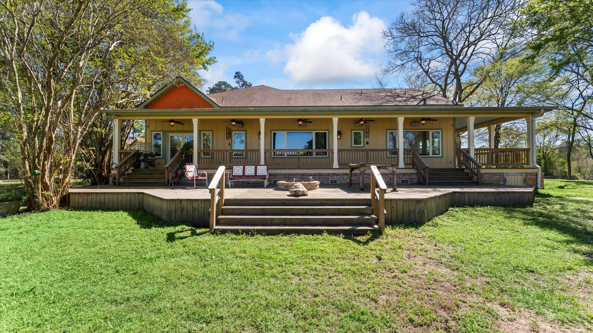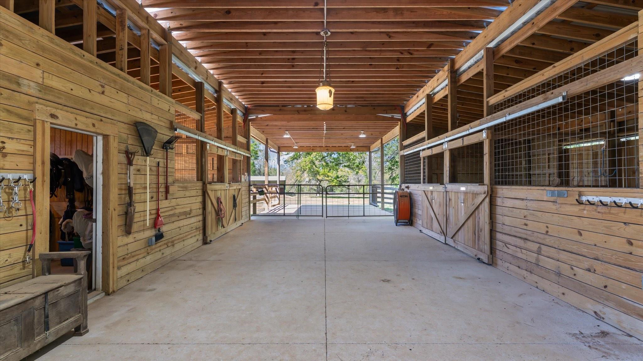Welcome to this beautiful 34-acre horse property offering the perfect blend of country living, modern updates, and a fully equipped equestrian setup with convenient highway access. Ideal for horse enthusiasts, hobby farmers, or anyone looking for space and privacy. The recently completely renovated home offers comfortable living with updated finishes throughout. One of the standout features of the home is the wraparound porches, providing the perfect place to relax and take in the amazing panoramic views of the property and surrounding countryside. The property is fully set up for horses, featuring a 4-stall horse barn with tack room, feed room, and bathroom. Additional features include a large workshop with office and bathroom, a garage with space for a future garage apartment, and RV hookups for added convenience. With 34 usable acres, this property offers endless opportunities for riding, training, or enjoying peaceful Texas country living.