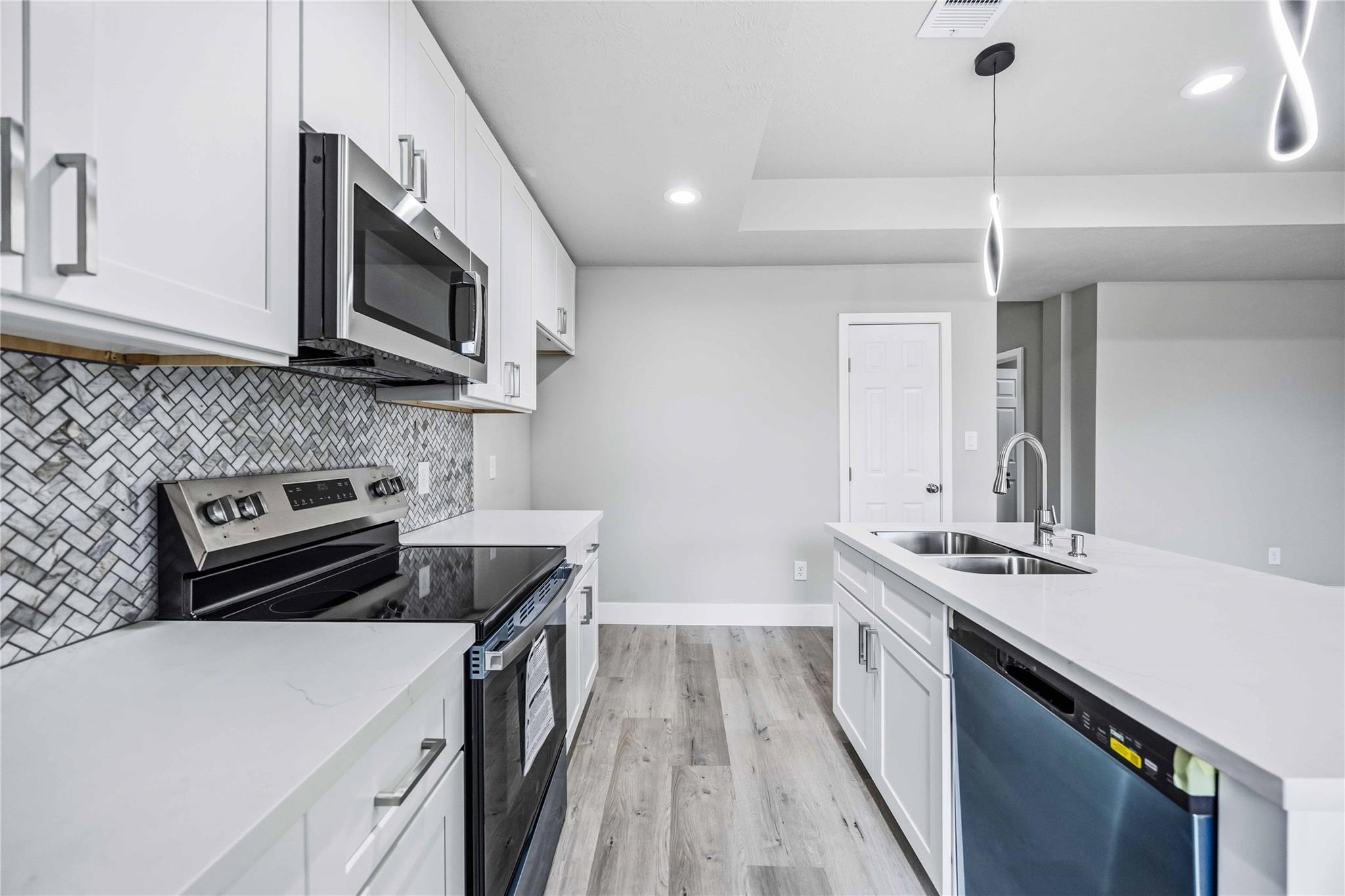 Discover this stunning new construction duplex, never lived in, featuring 3 spacious bedrooms and 2 modern bathrooms. The open floor plan seamlessly connects the living, dining, and kitchen areas, creating an inviting space for entertaining. The contemporary kitchen includes sleek countertops, stainless steel appliances, and ample cabinetry for all your culinary needs. The master bedroom serves as a tranquil retreat, with a generous closet and an en-suite bathroom that boasts luxurious finishes. Additional bedrooms are ideal for family, guests, or a home office. Both bathrooms feature elegant designs, promoting a spa-like atmosphere. Located in a desirable neighborhood, this duplex is close to local amenities, parks, and schools, making it perfect for families and professionals alike. Don’t miss the chance to own this brand-new duplex that perfectly blends style, functionality, and convenience. Schedule your showing today!