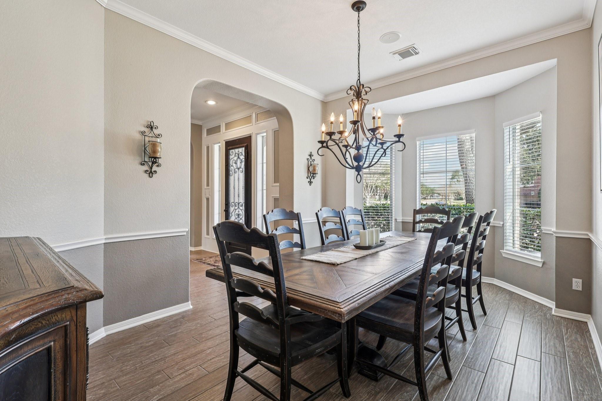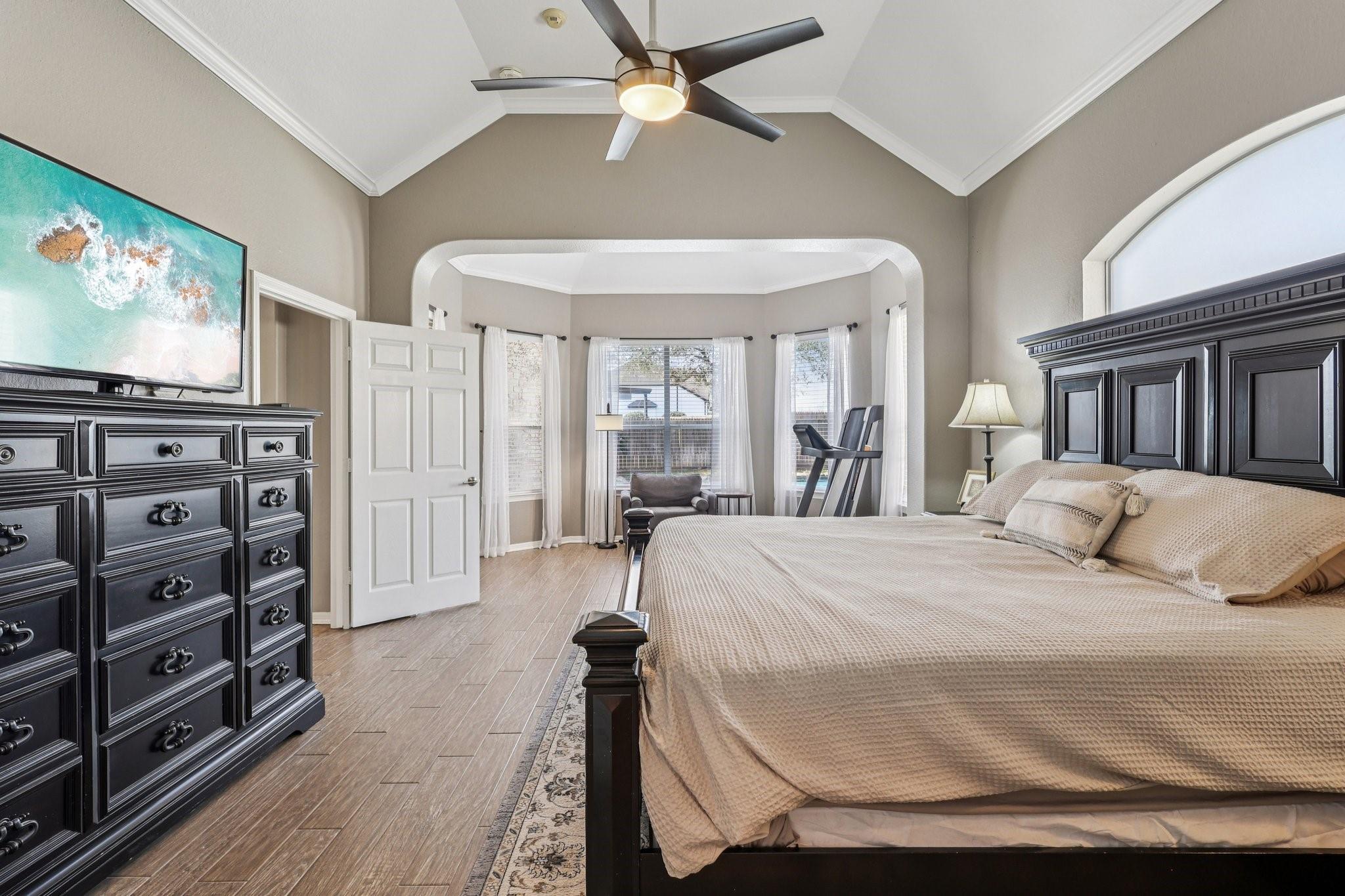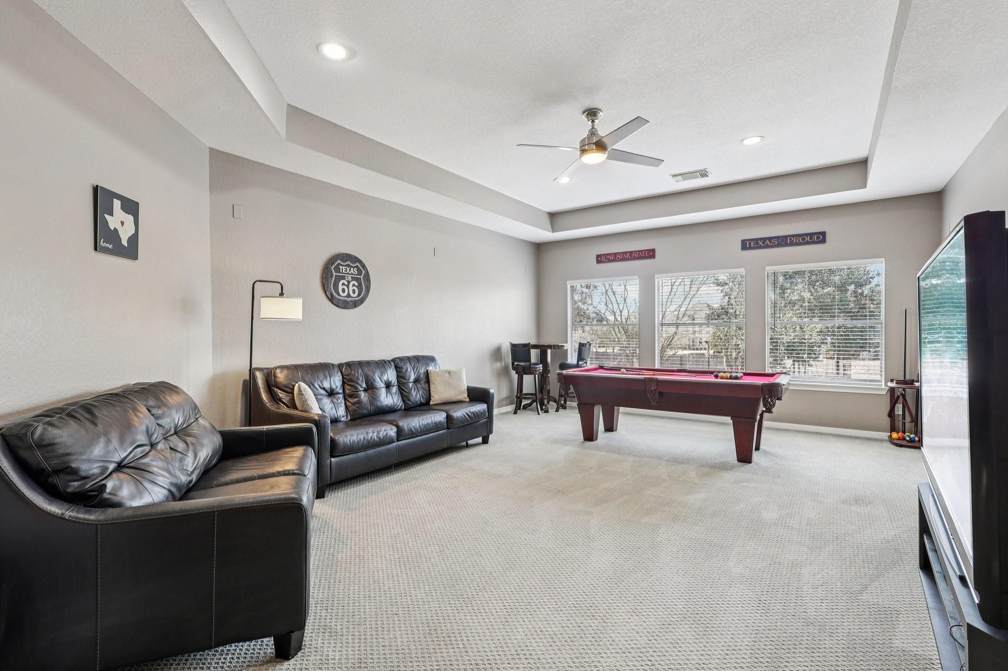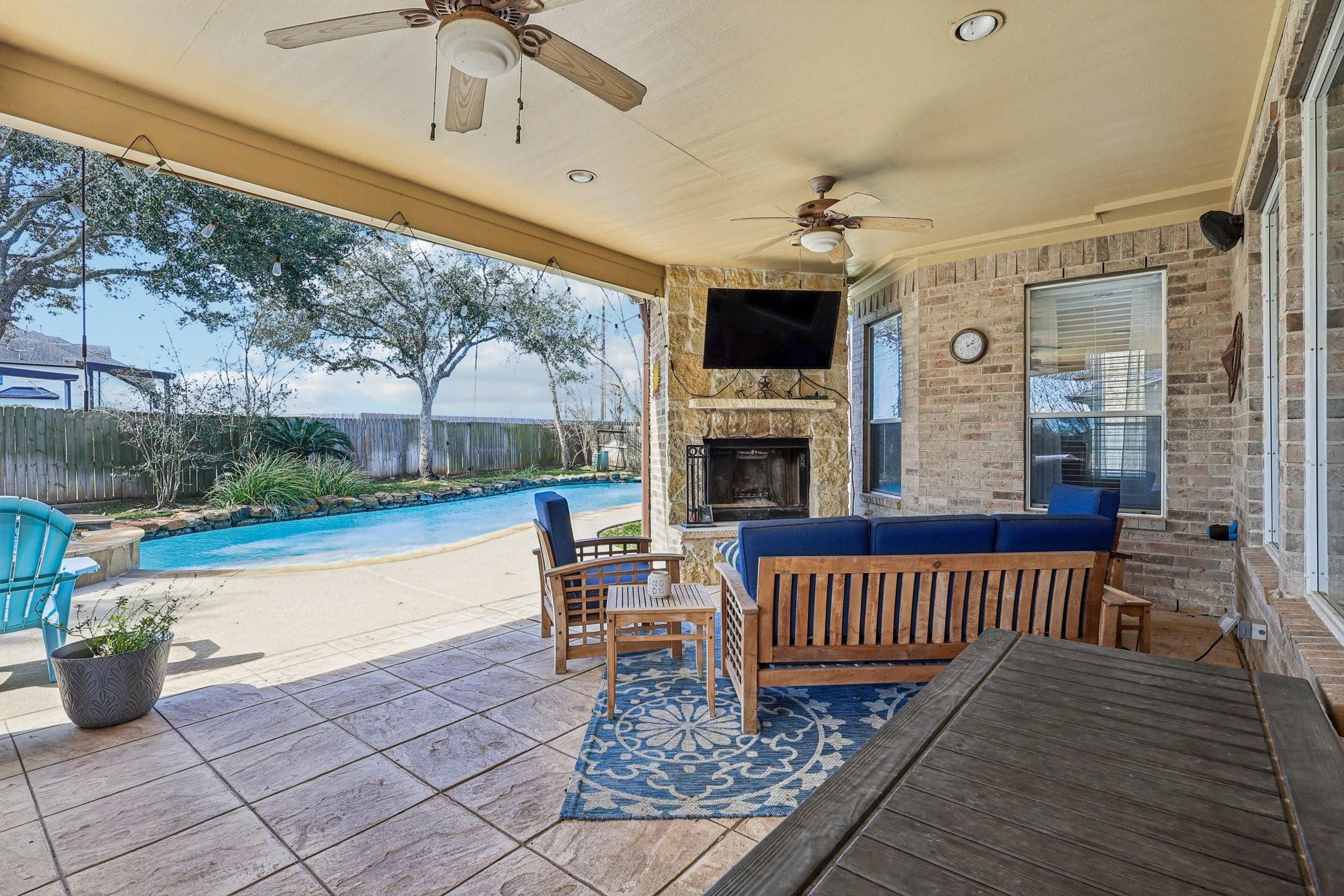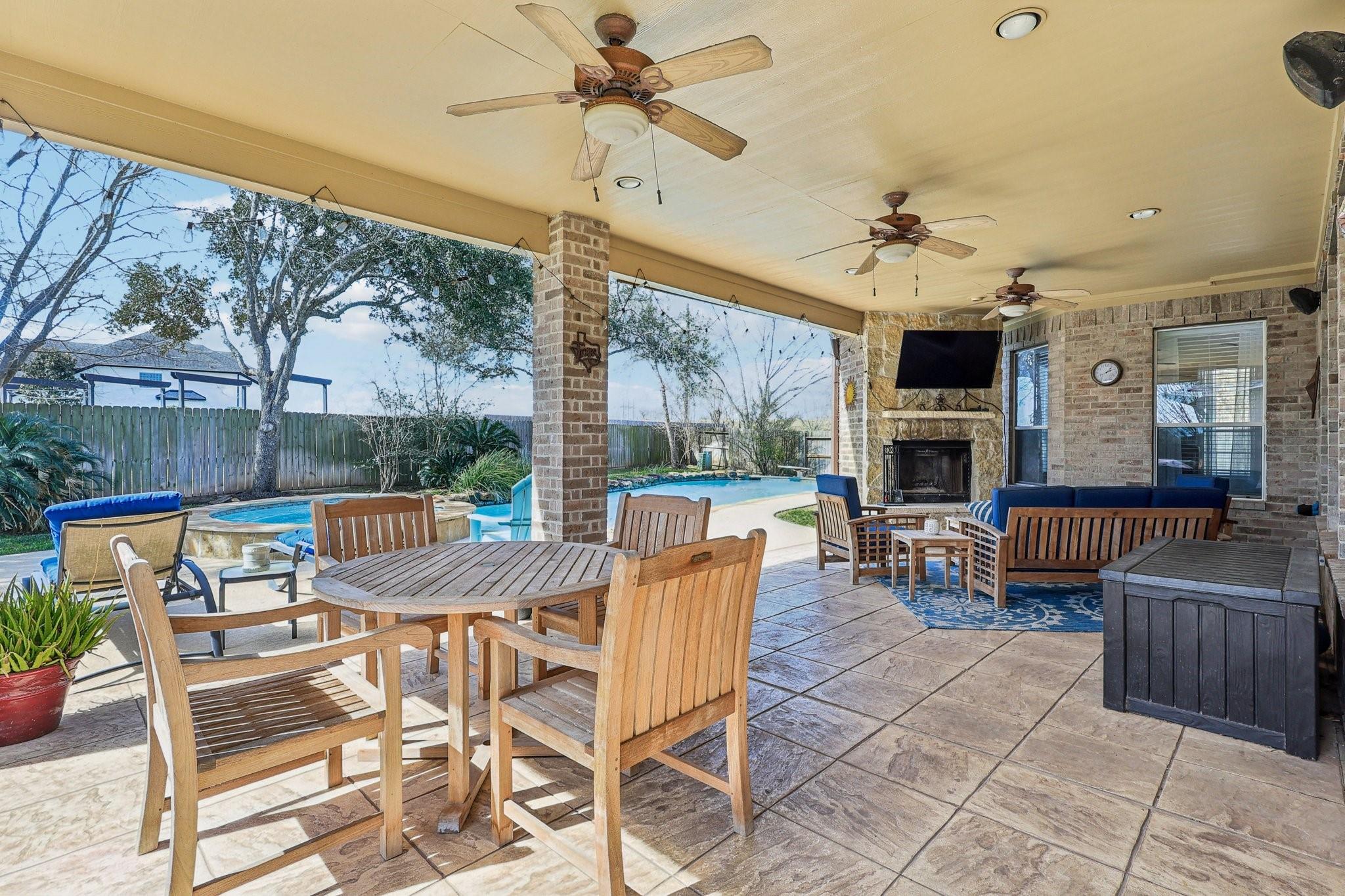 This Sienna home is turn key ready. Through the 8 foot iron door is a grand entrance with high ceiling and curved staircase with an office and formal dining on the other. Downstairs, wood-look tile floors lead you to the living room with fireplace open to the chefs kitchen. Here you have ample cabinet and counter space, and a built-in 48 inch commercial fridge that stays. Cross the living to a generous primary suite with attached seating area and a primary bath that includes oversized shower and tub along with THREE vanities and his and hers closets. 4 bedrooms upstairs, an additional desk office area, and media room. Three car garage with new doors, 500 square feet of covered patio, and a beautiful pool and spa complete with diving board are outside, all on a .39 acre lot! Recent update include HVAC, water heater, and more. Attend highly sought-after schools like Sienna Crossing and Ridge Point. Amenities include multiple parks, pools, tennis and pickle ball courts, and a golf course!